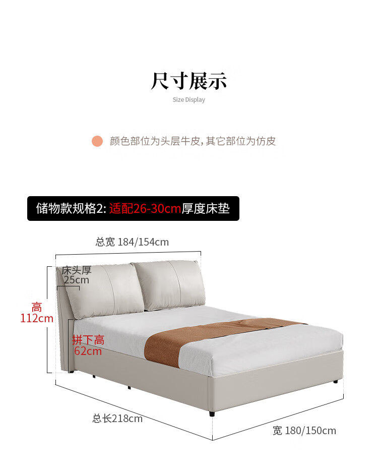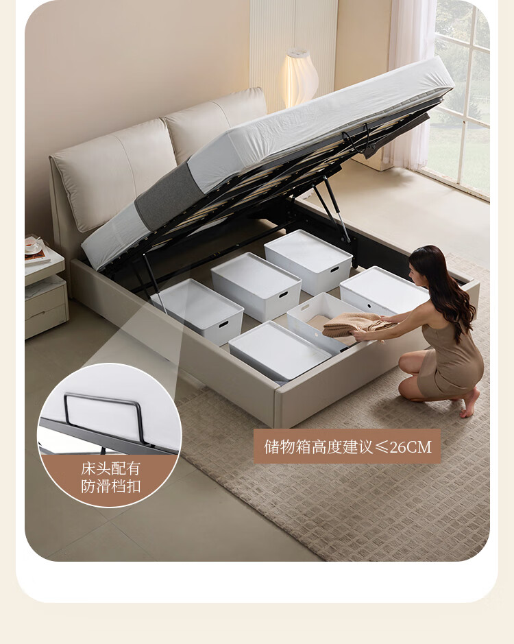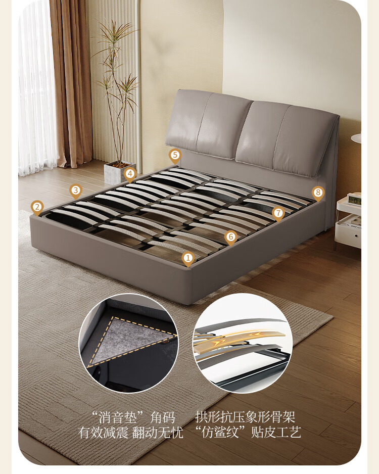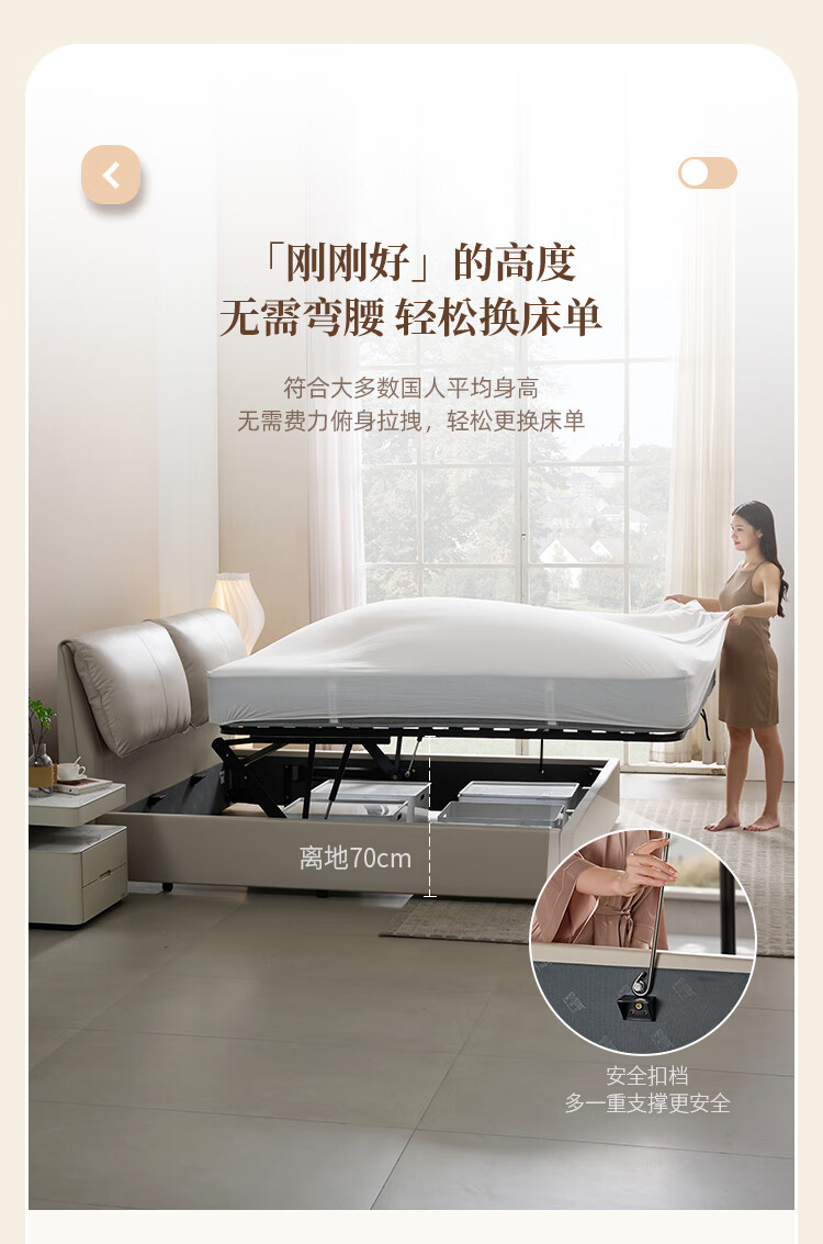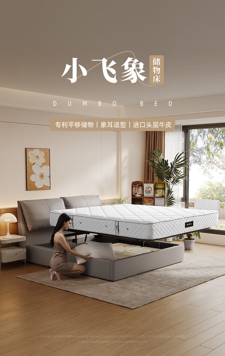 芝华仕(CHEERS)五星皮床现代奶油风双人床主卧室大象耳朵软包带床垫C275G白1.8m