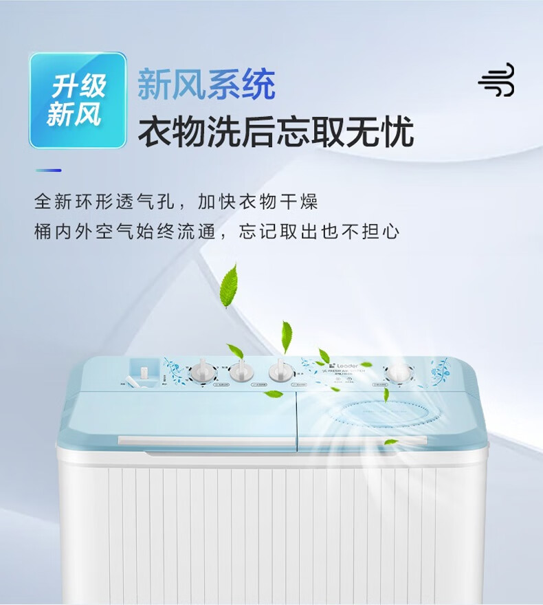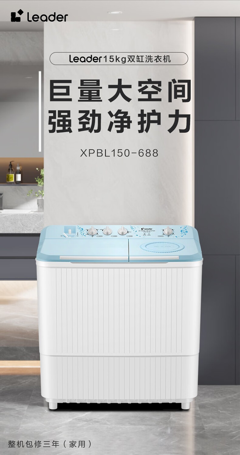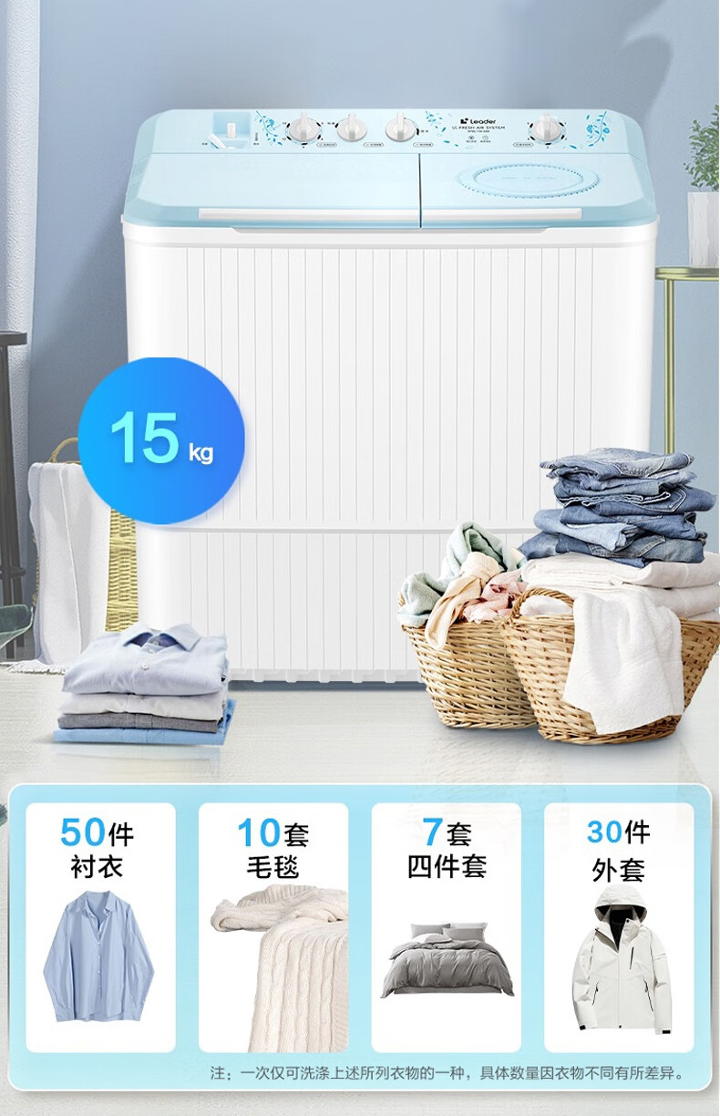 海尔智家出品半自动双缸洗衣机15公斤大容量双桶家用租房宿舍洗脱分离双电机飓风水流老式操作简单 15公斤喷淋漂洗+强力去污+新风系统