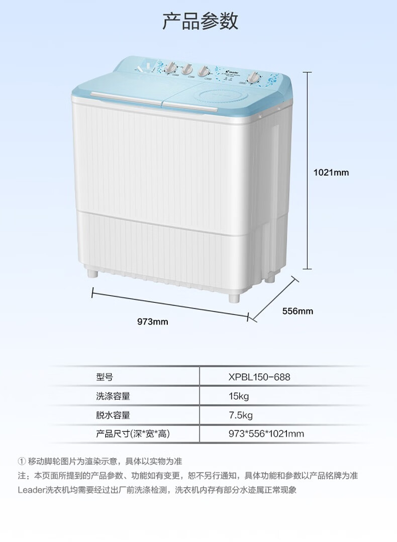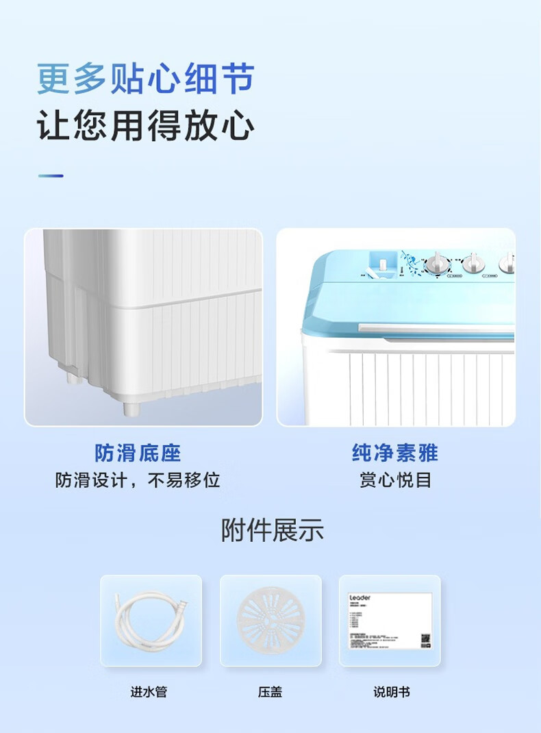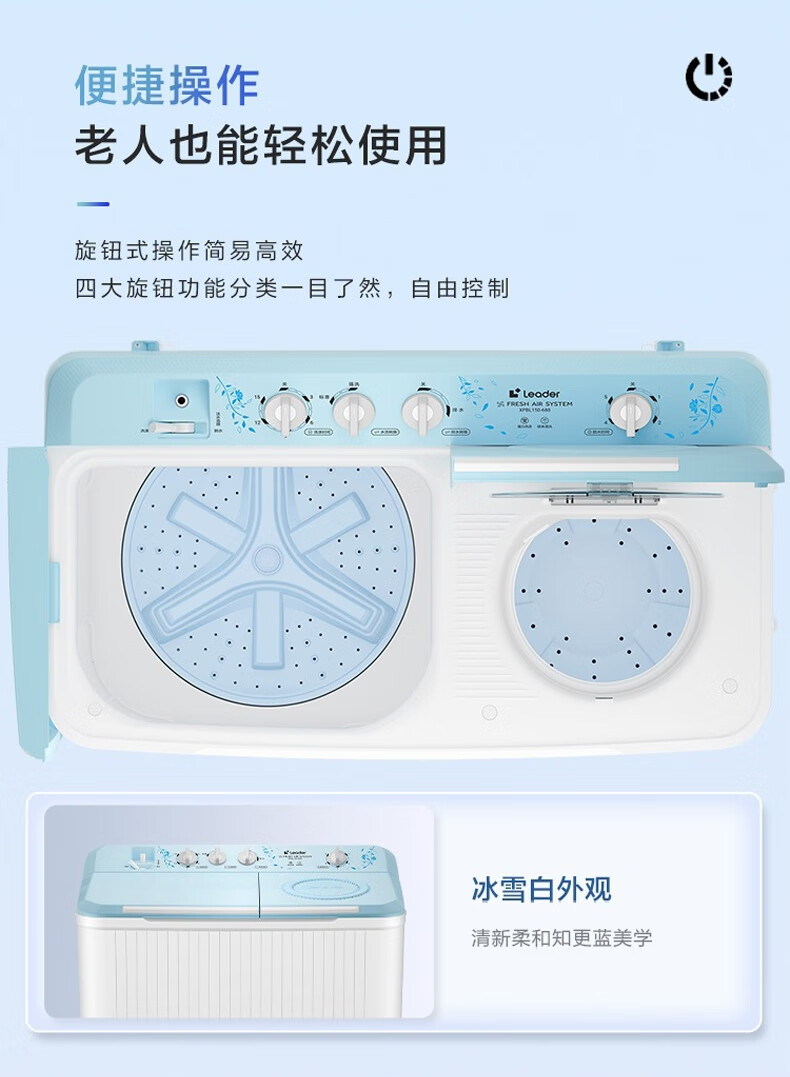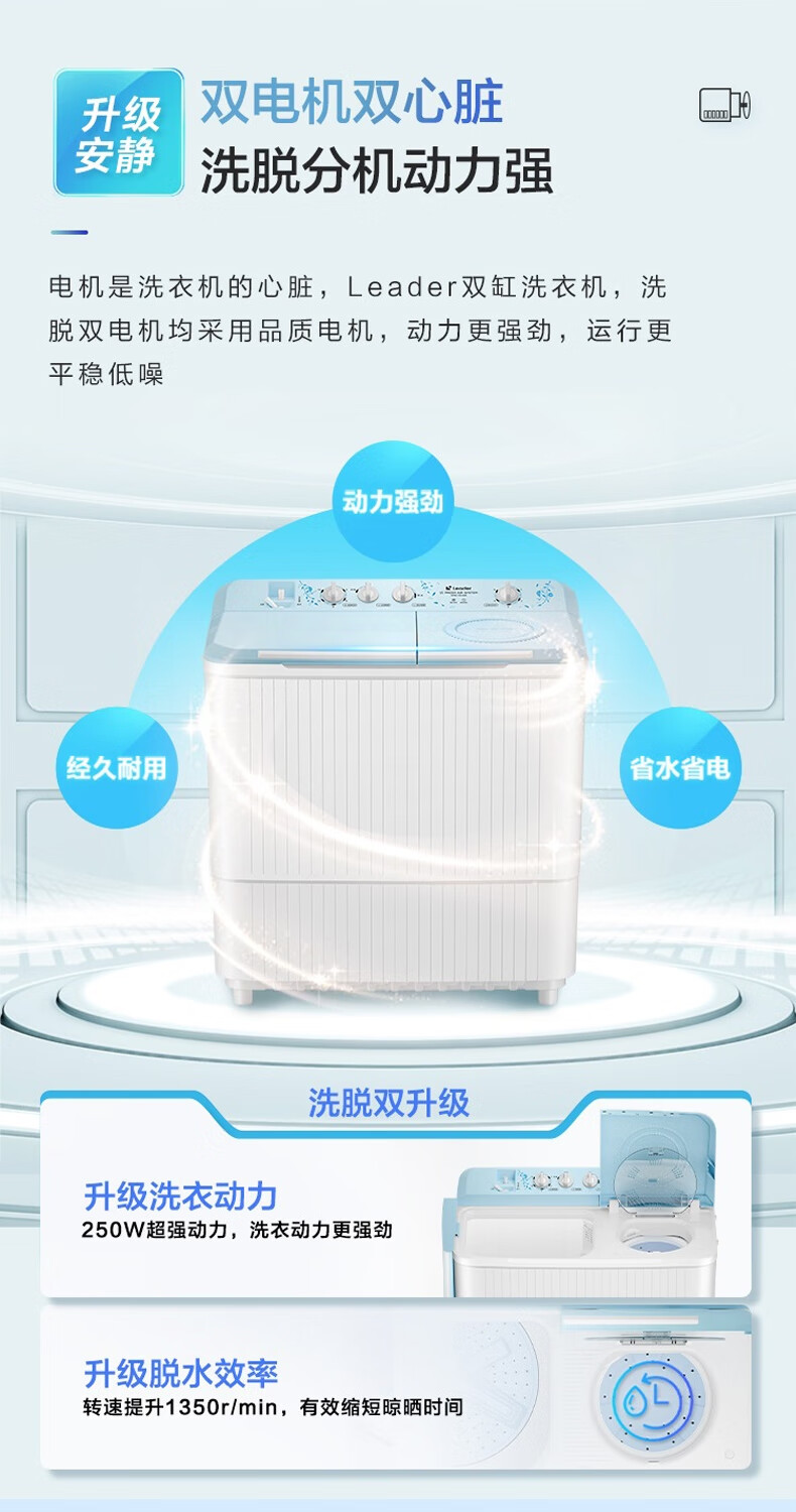 海尔智家出品半自动双缸洗衣机15公斤大容量双桶家用租房宿舍洗脱分离双电机飓风水流老式操作简单 15公斤喷淋漂洗+强力去污+新风系统