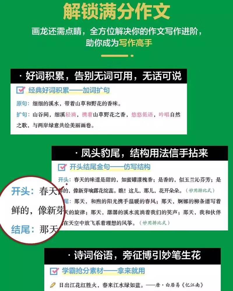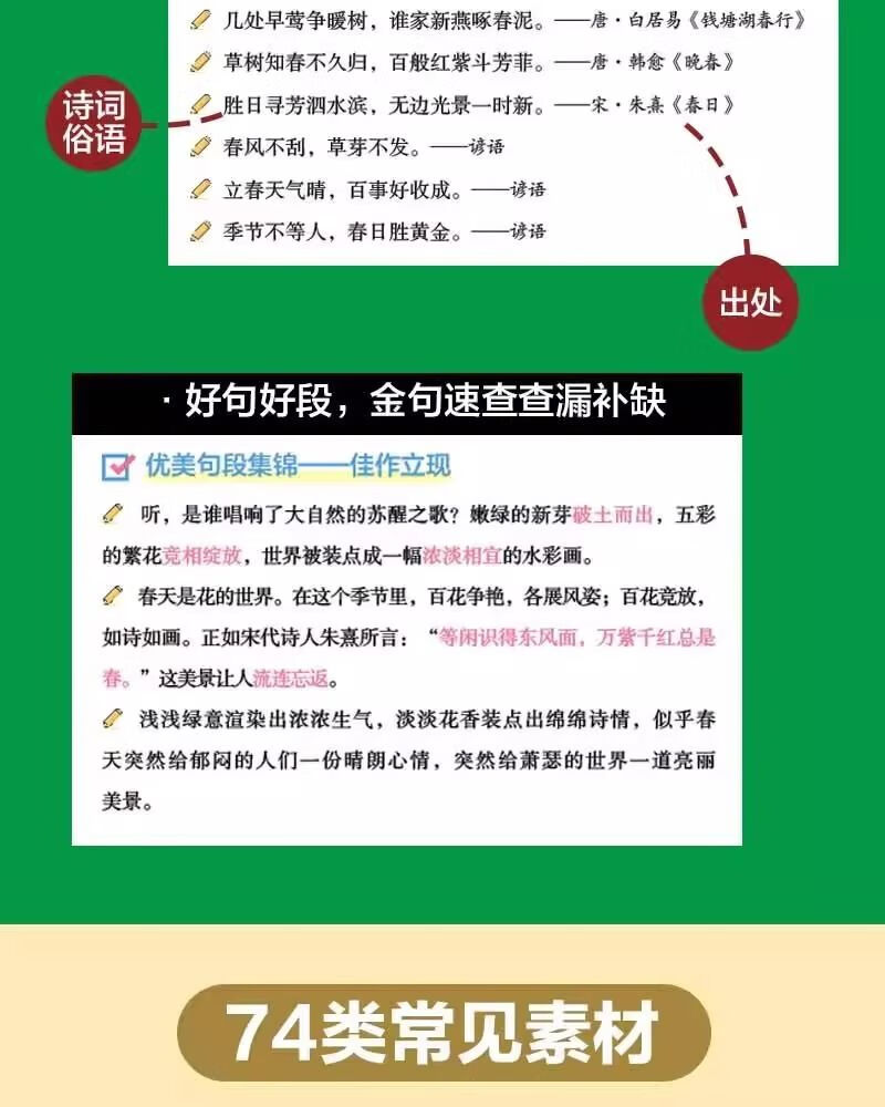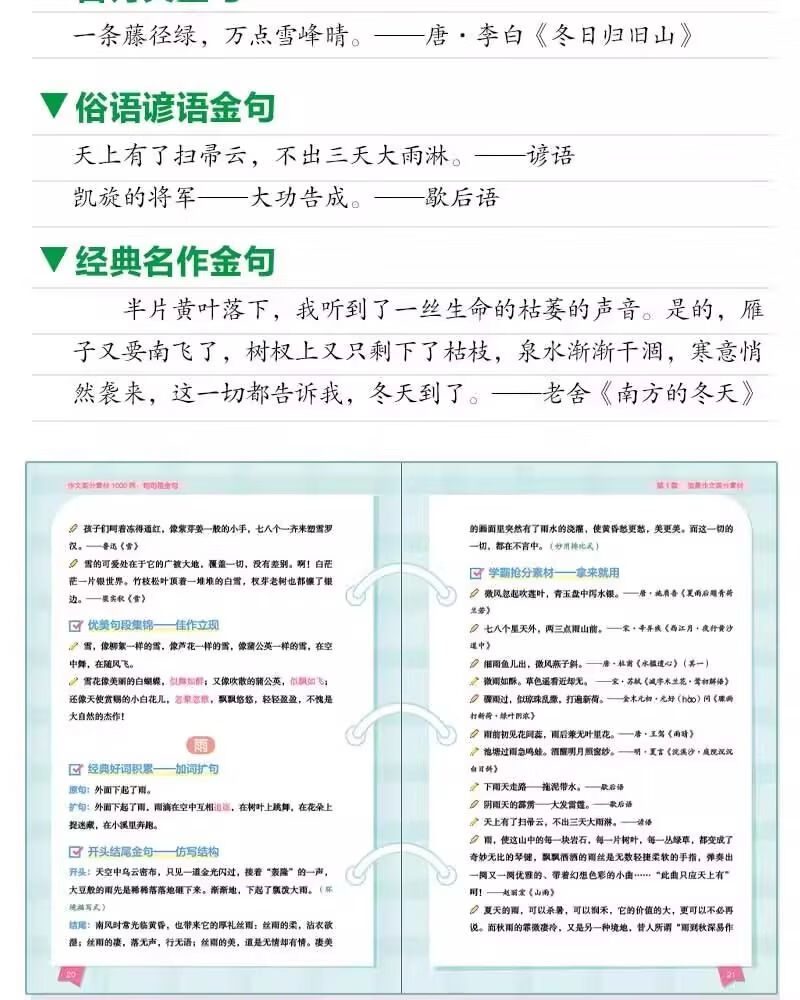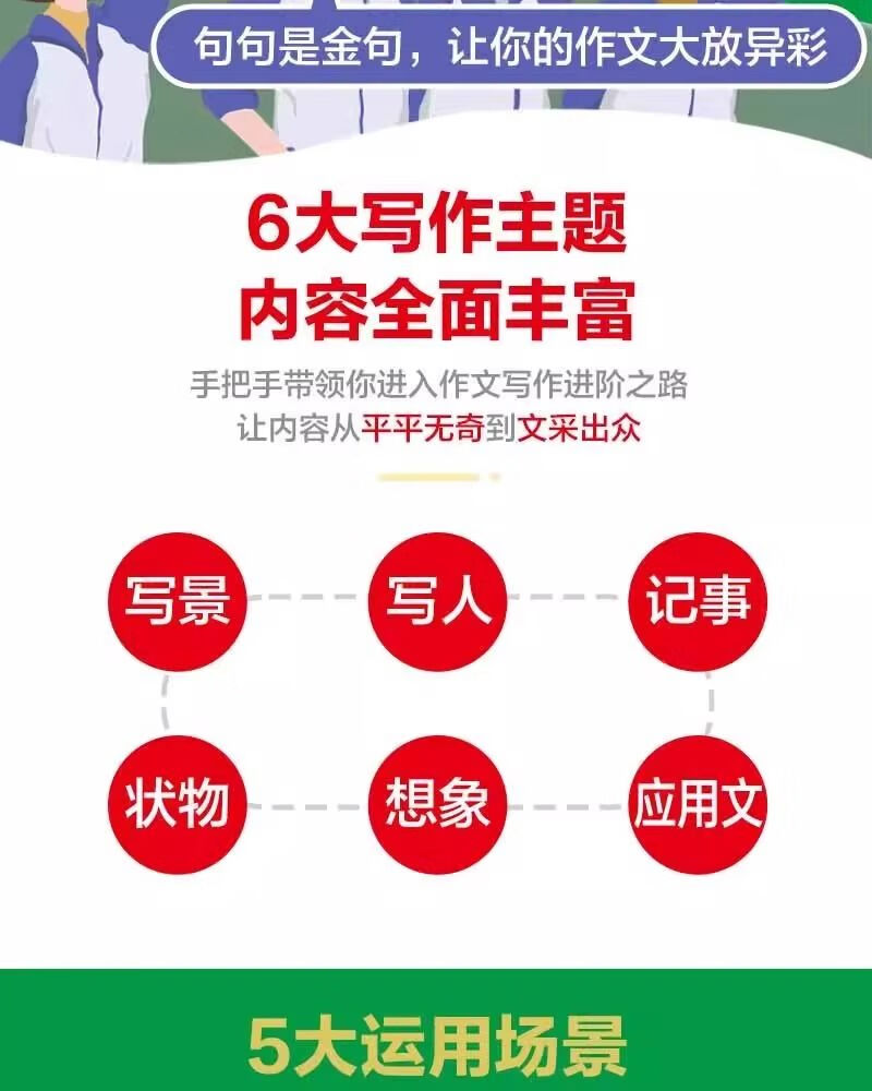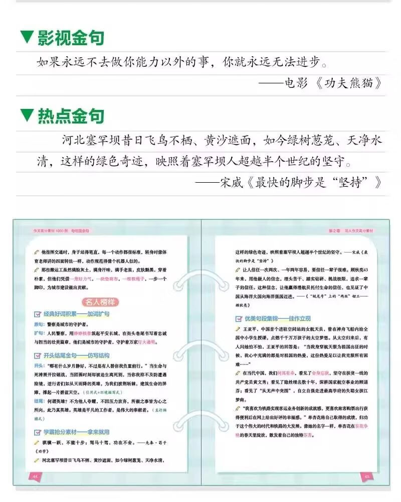 两册 作文高分素材1000例句句是金句+ 小学生万能作文模板 小学作文指导