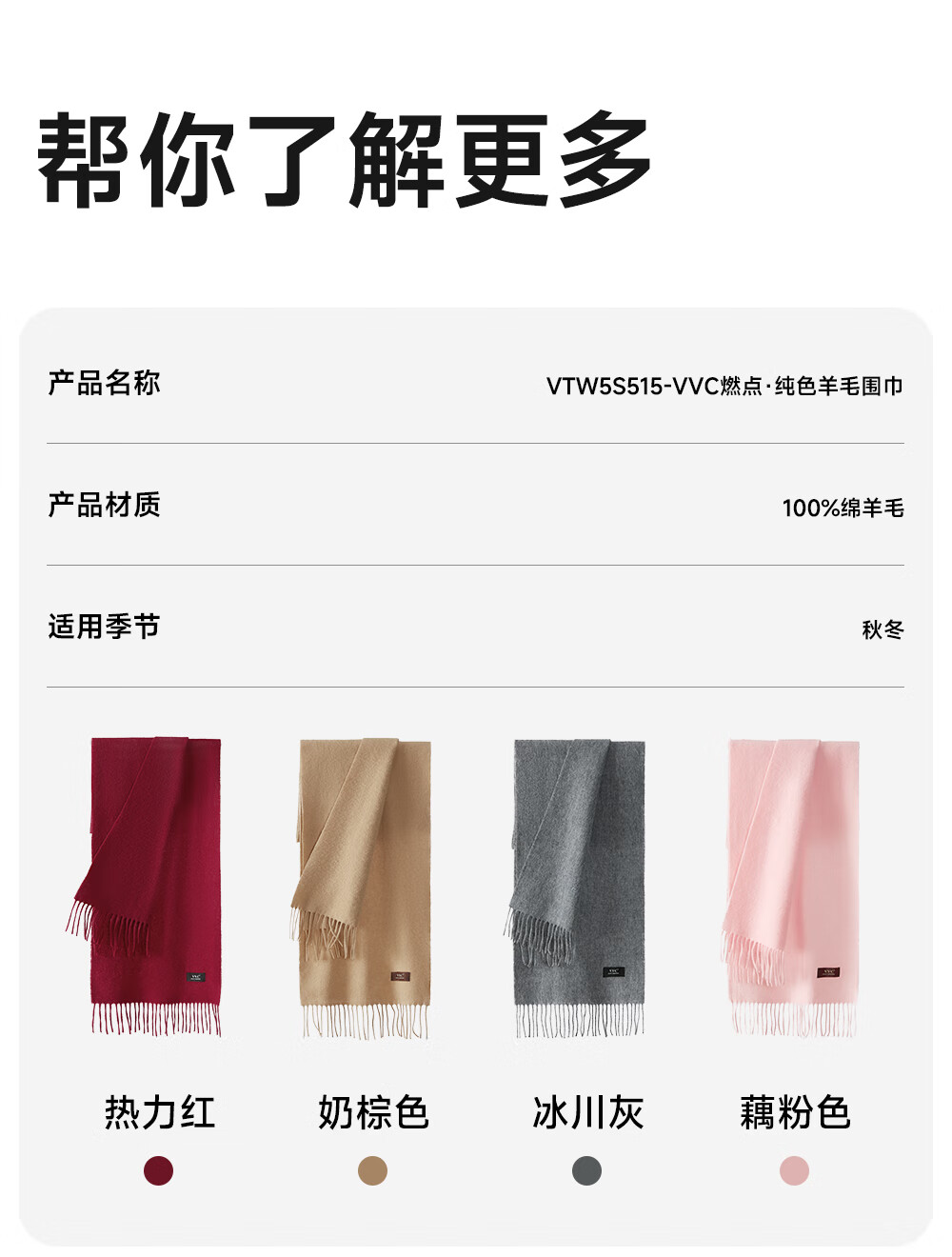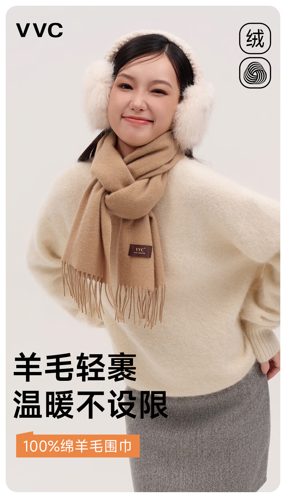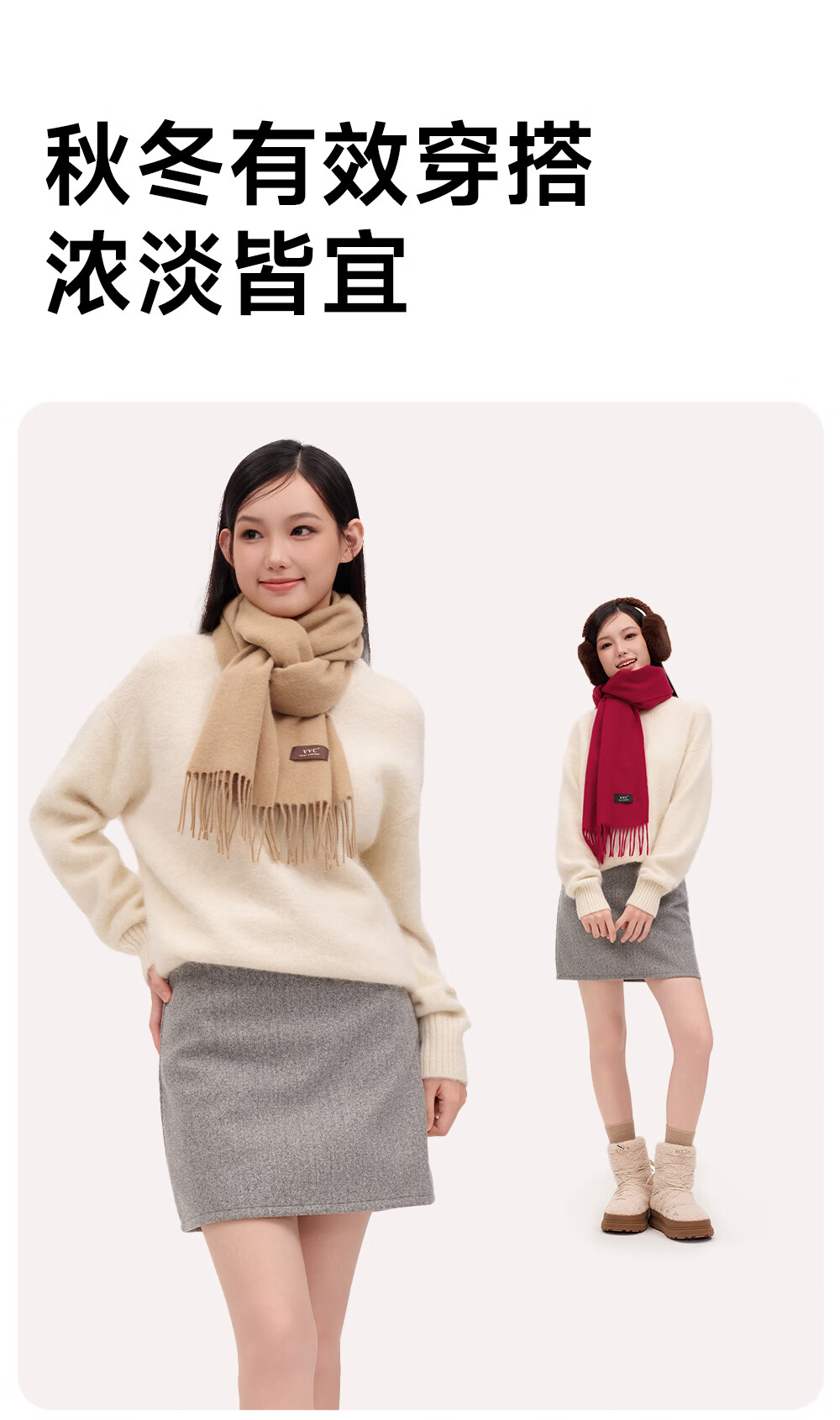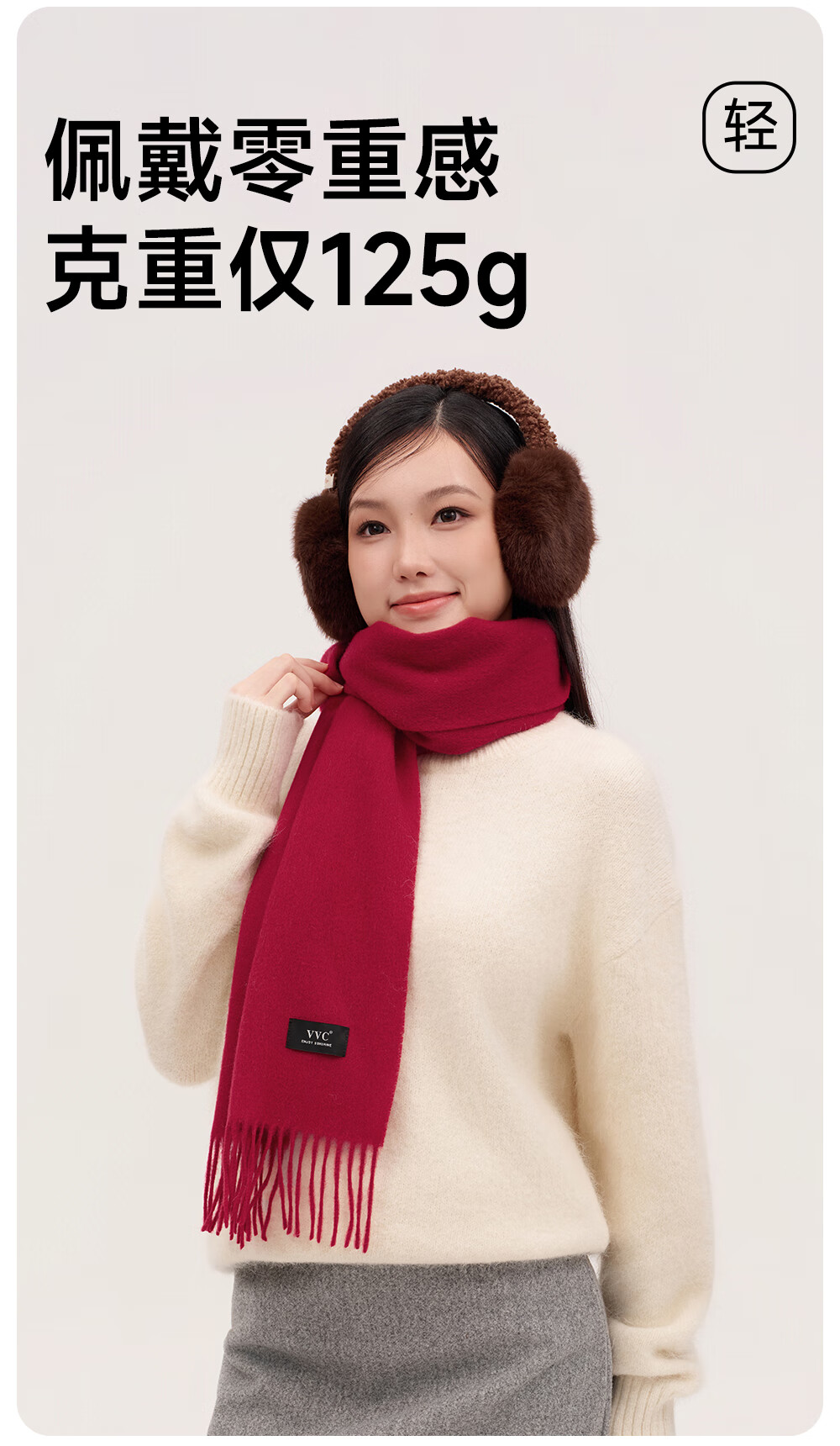 VVC纯羊毛围巾女秋冬季百搭纯色保暖防风护耳围脖送女友礼物 热力红