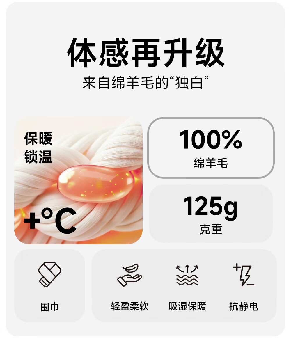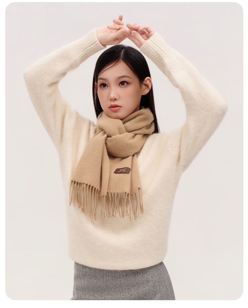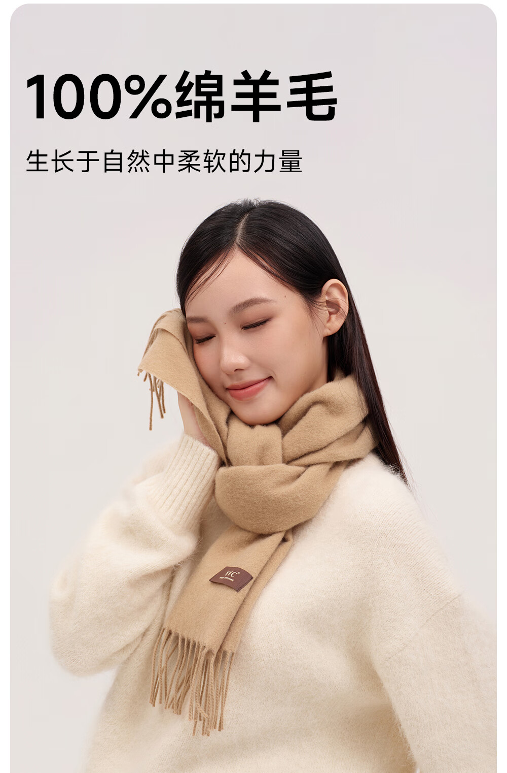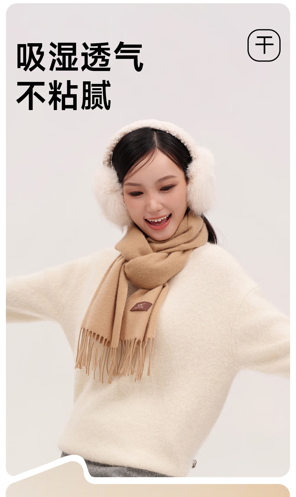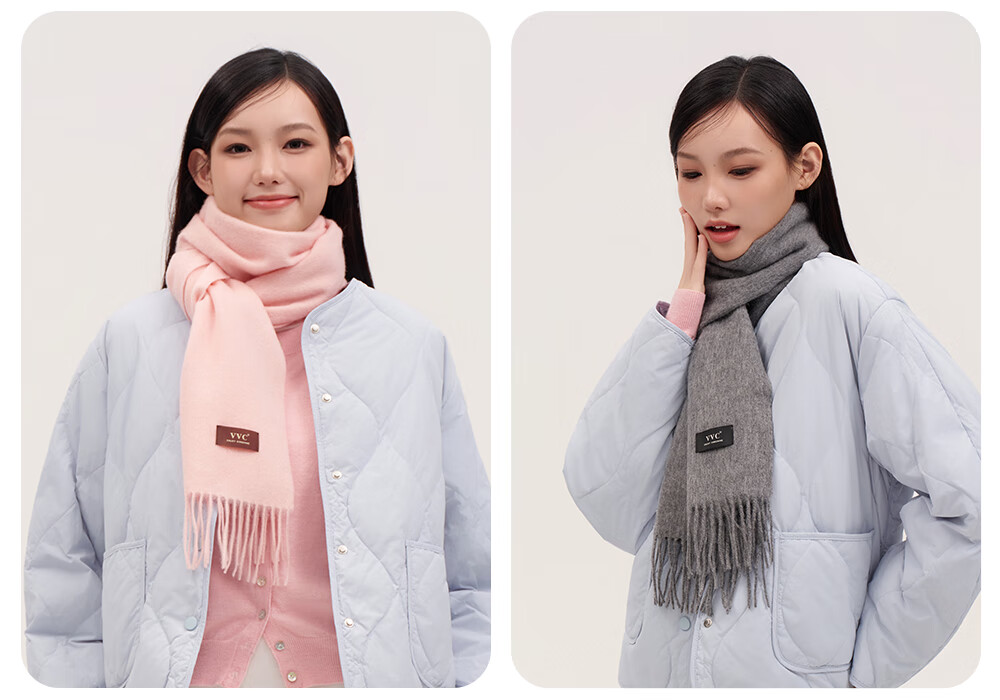 VVC纯羊毛围巾女秋冬季百搭纯色保暖防风护耳围脖送女友礼物 热力红