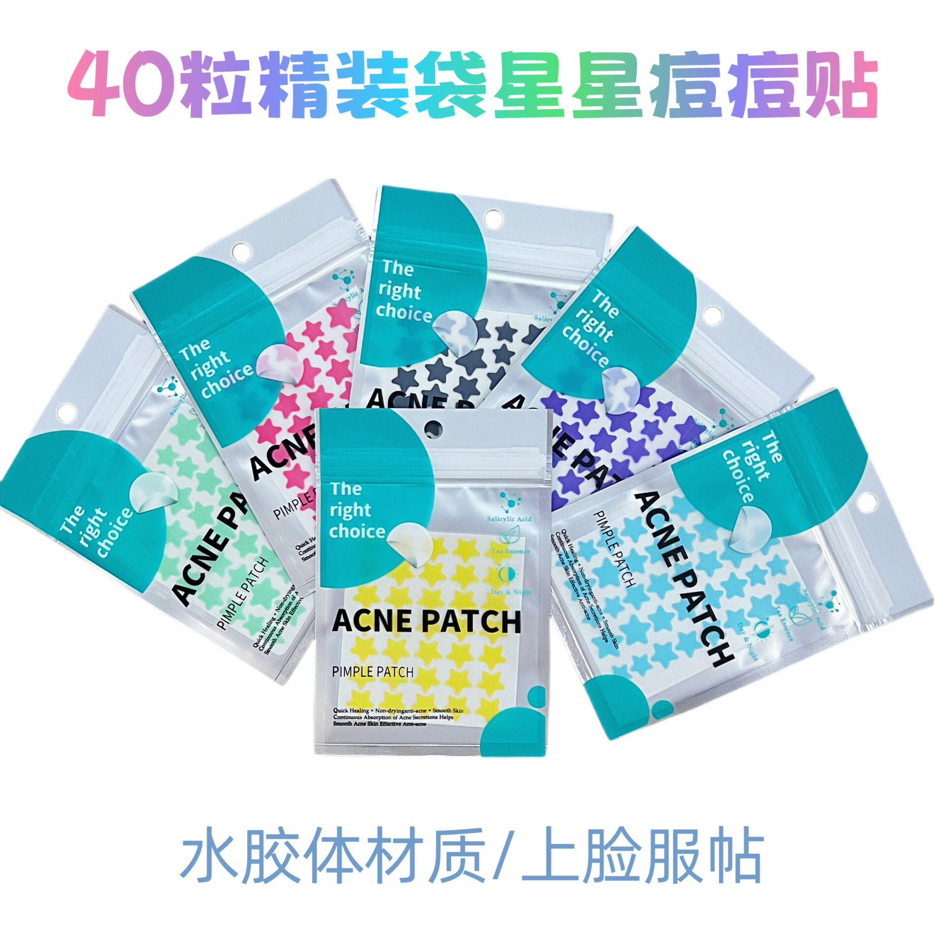美颜秘笈彩色星形痘痘贴祛痘专用水胶体粉刺便携蓝色精装袋痘痘贴 紫色五角星40粒(蓝色精装袋)