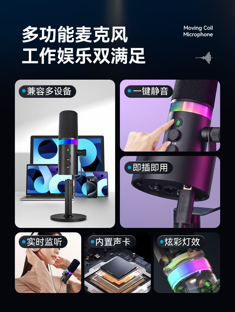 权盟 【直播推荐】话筒音响一体自带声卡麦克风 全民k歌麦克风家庭ktv 户外唱歌主播直播录歌卡拉ok Q9升级版【品牌爆款】56W超大音量