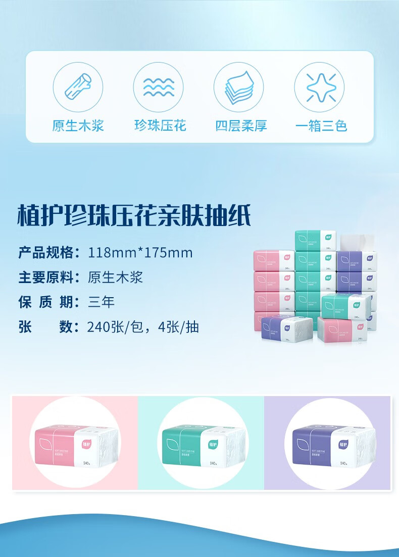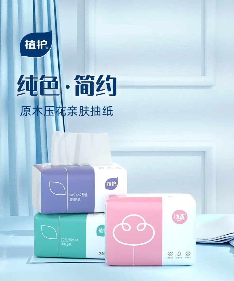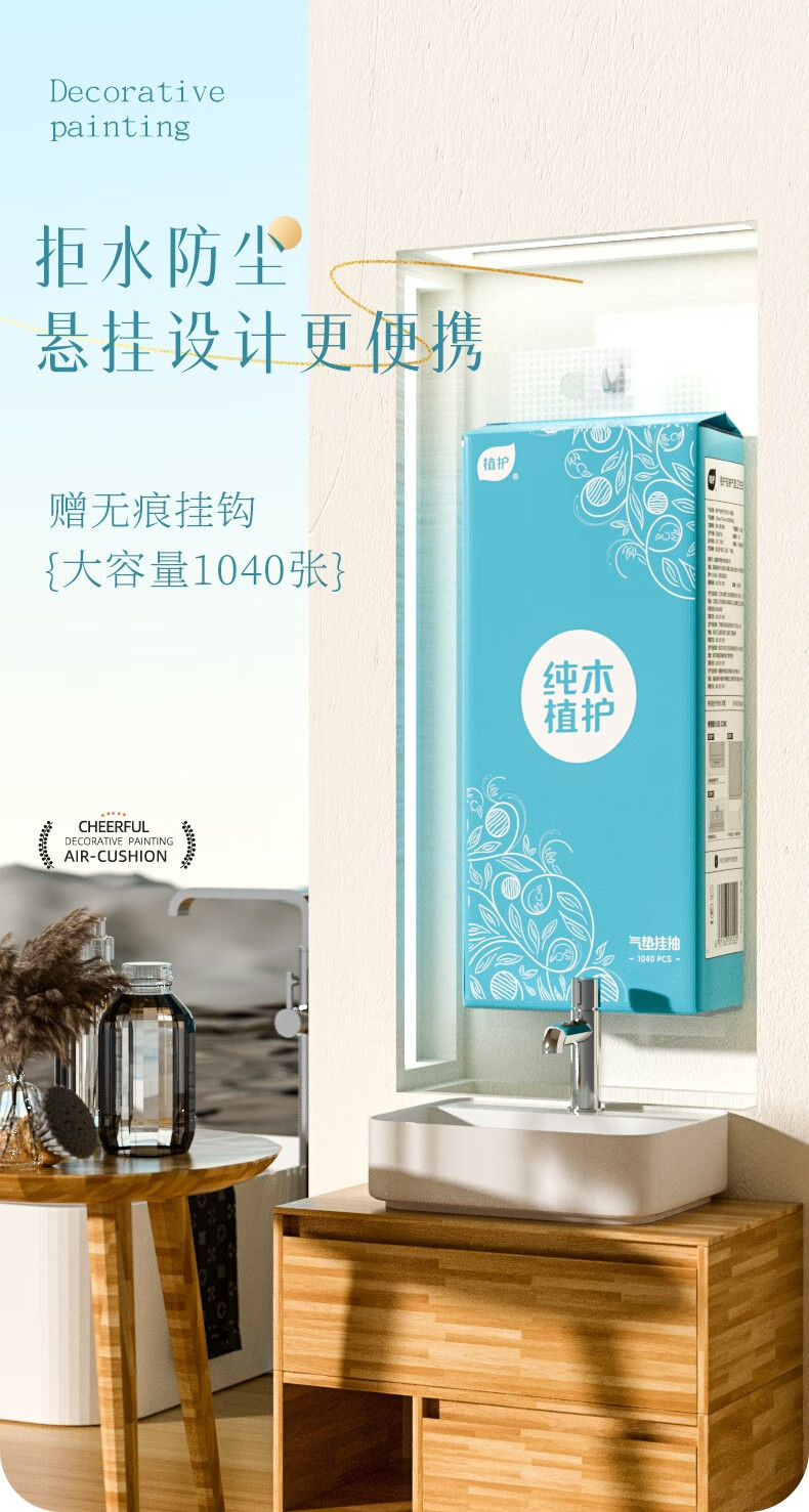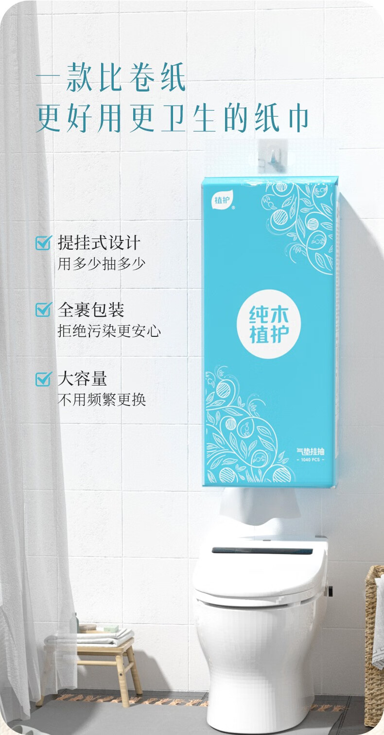 植护原木纸巾挂式抽纸 加厚卫生纸家用餐巾纸 经典蓝 4层 1040张*3提 (1挂钩)