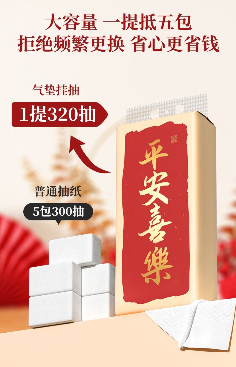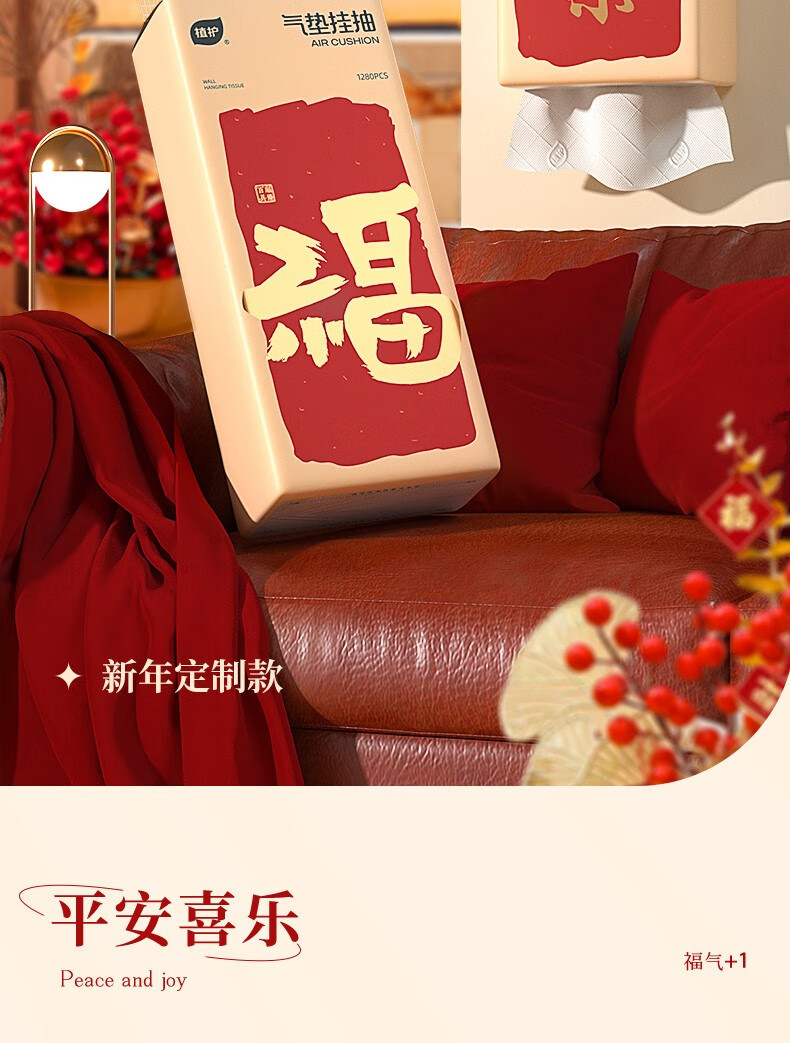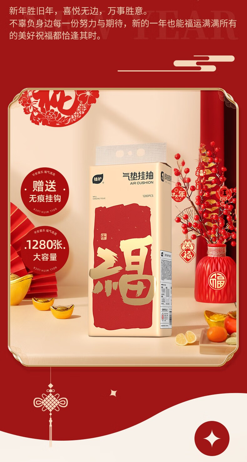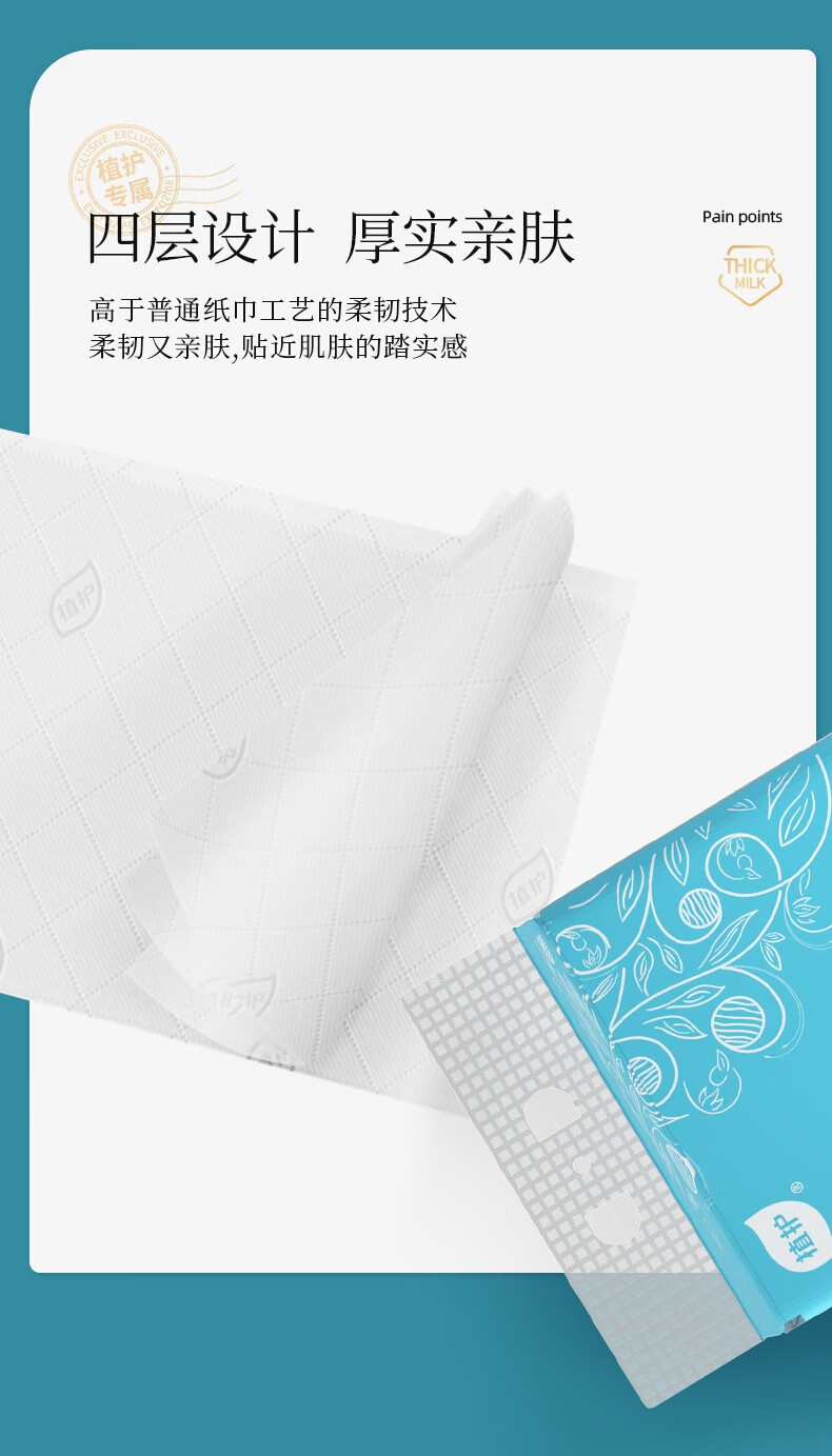 植护原木纸巾挂式抽纸 加厚卫生纸家用餐巾纸 经典蓝 4层 1040张*3提 (1挂钩)