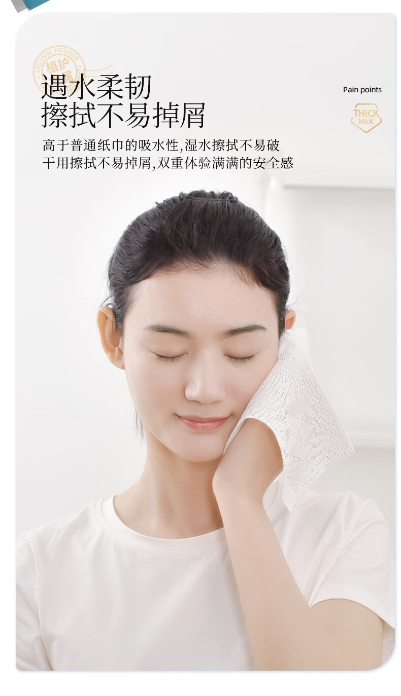 橘子柚子一次性洗脸巾绵柔巾洁面巾抽取式干湿两用珍珠纹擦脸巾 100抽2袋 丨壁挂式