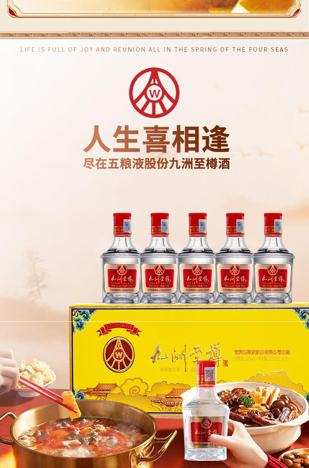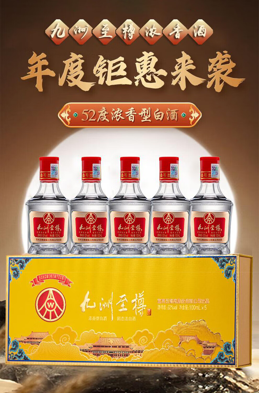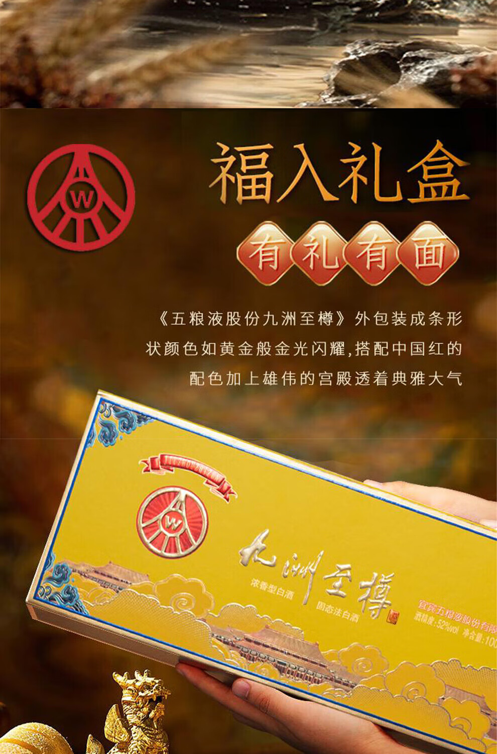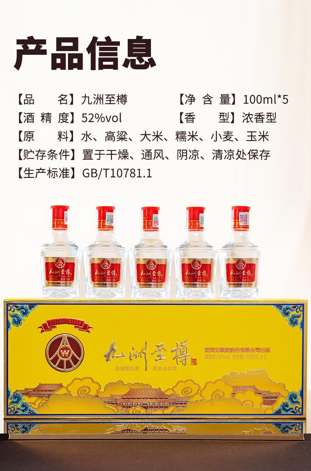 五粮液股份出品 九州至樽 醉美山河系列 浓香型白酒 礼盒装 52%vol 100mL 5瓶 珍藏品鉴装