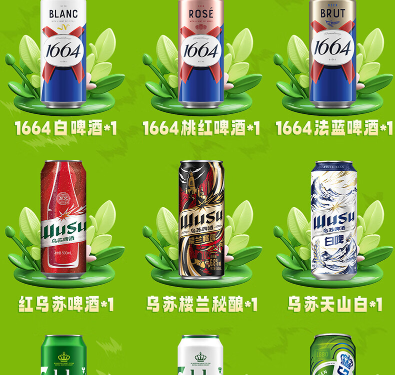 kronenbourg 1664精酿啤酒纷享装混合装500ml*12罐精酿小麦风味啤酒喜酒京东自营
