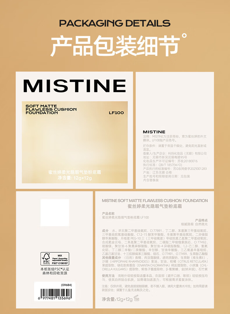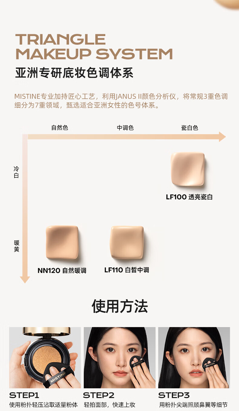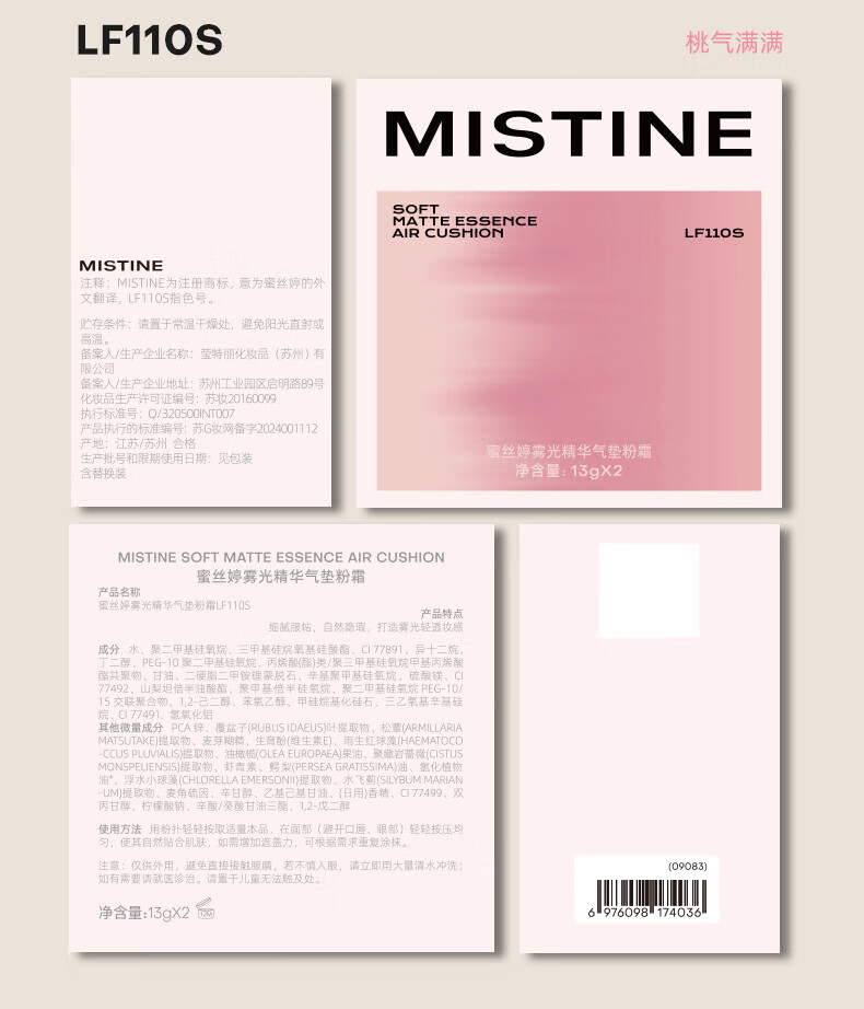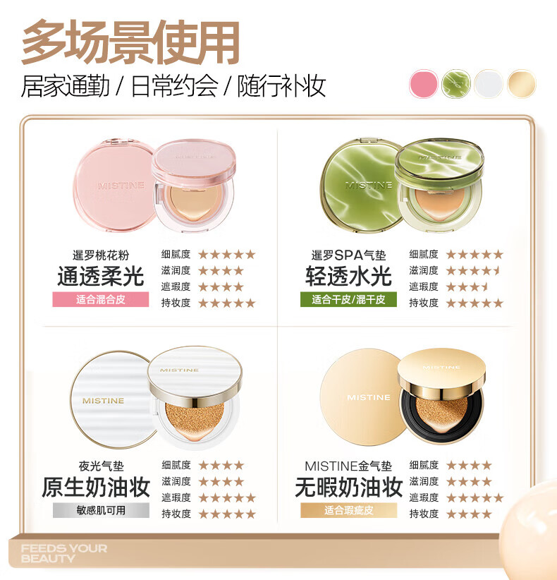 蜜丝婷(Mistine)蜜丝婷暹罗气垫 控油遮瑕持久轻薄不闷肤生日礼物送女友官方旗舰 【混皮款】桃花粉LF110S-自然偏白