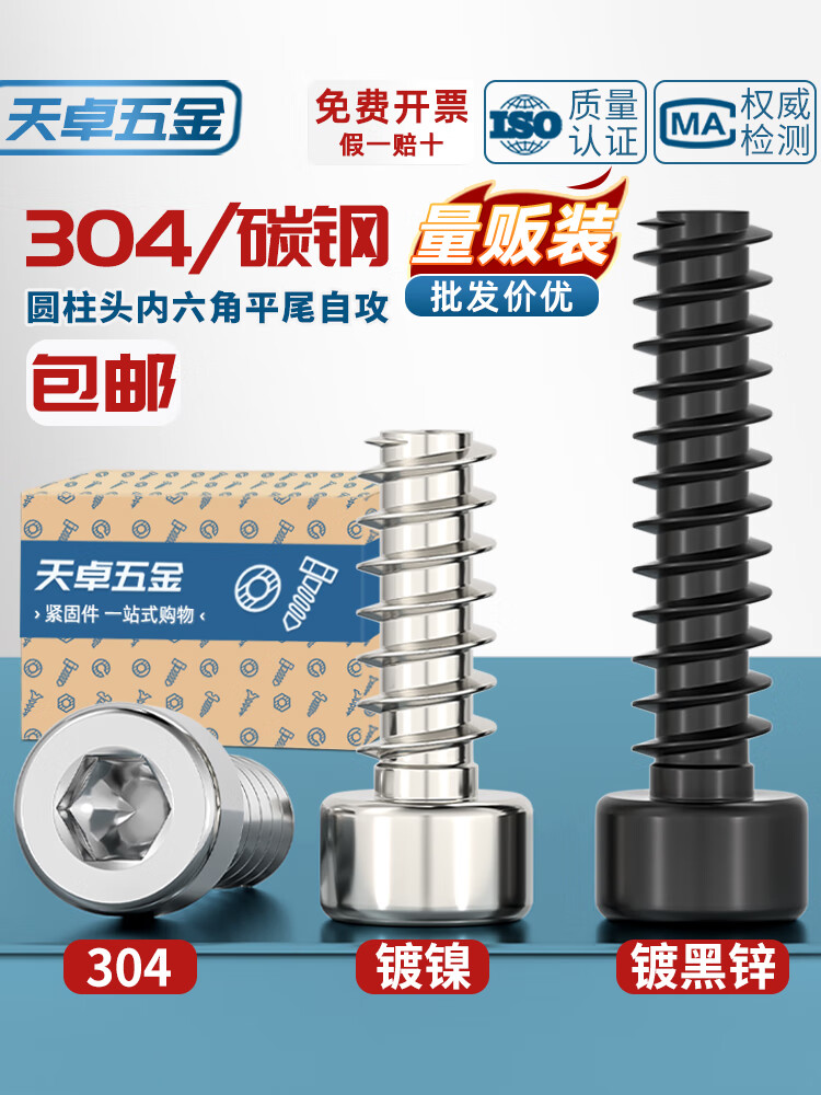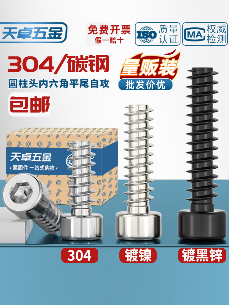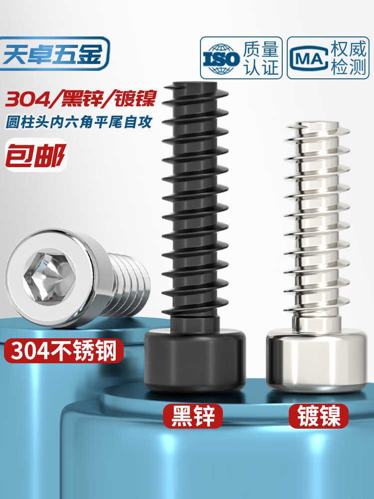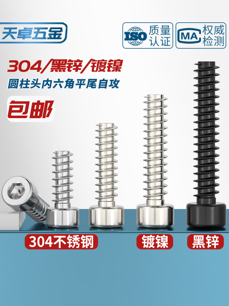 天卓五金304不锈钢/镀镍/黑锌色圆柱头内六角平尾自攻螺丝钉M2M2.6M3M4M5 ---以下为【304材质】系列---