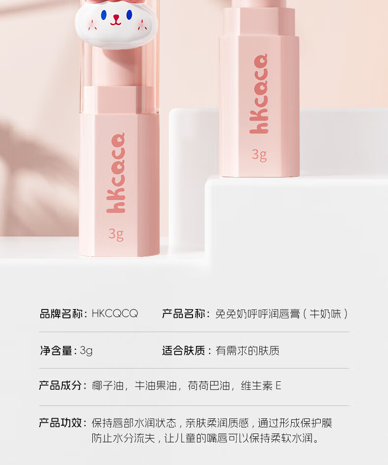 HKCQCQ兔兔儿润唇膏保湿淡纹宝宝儿童专用 兔兔唇膏(男女宝通用) 3g