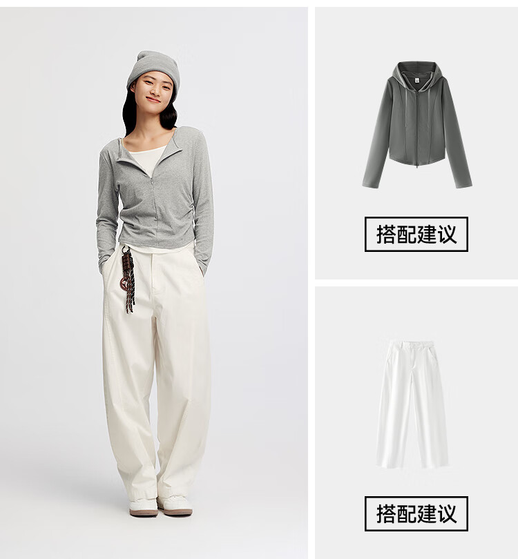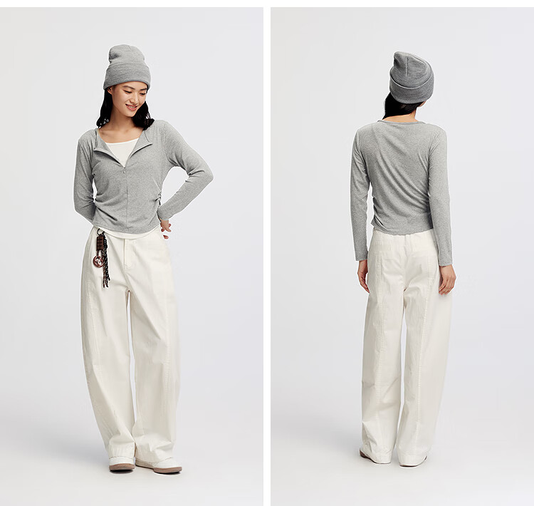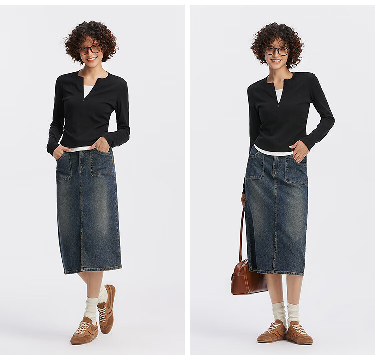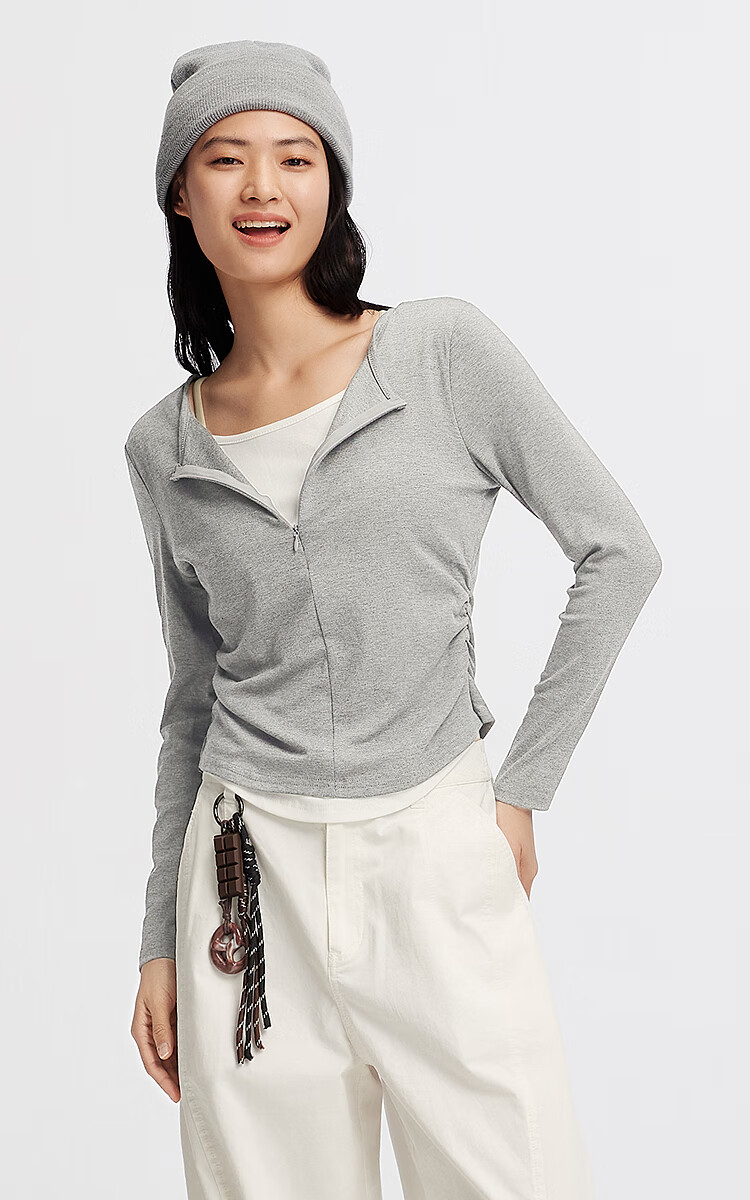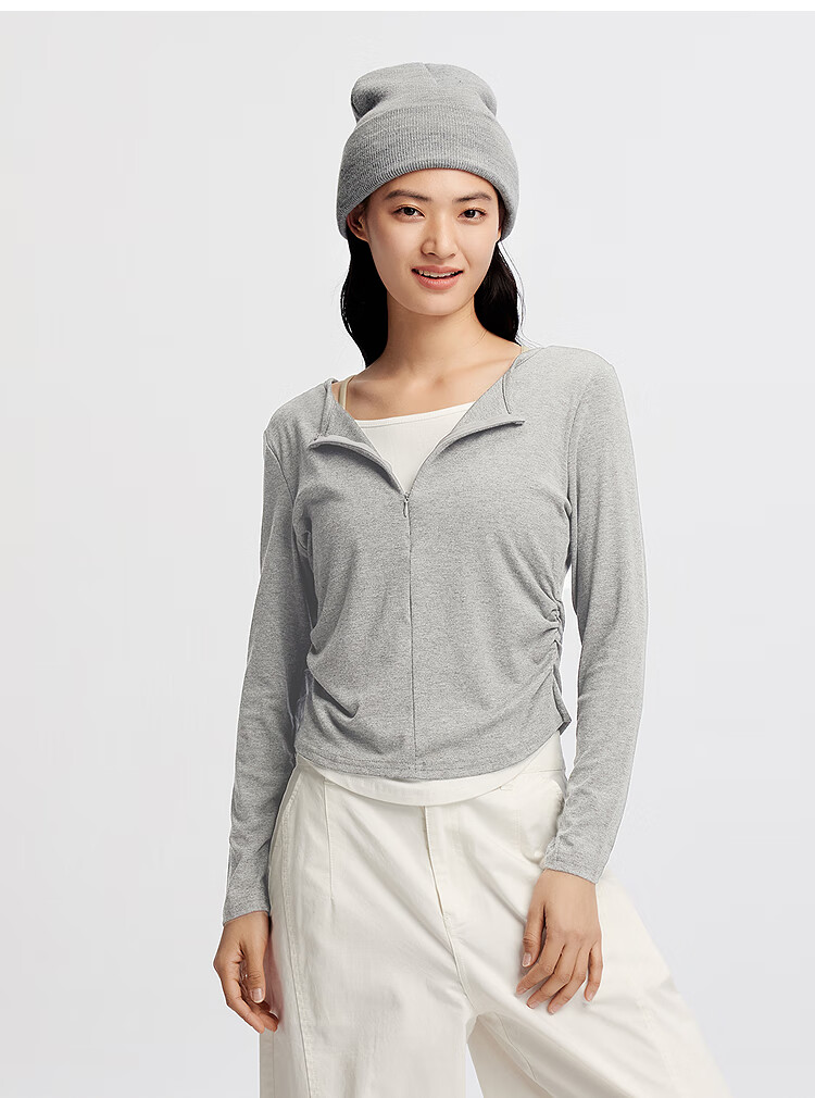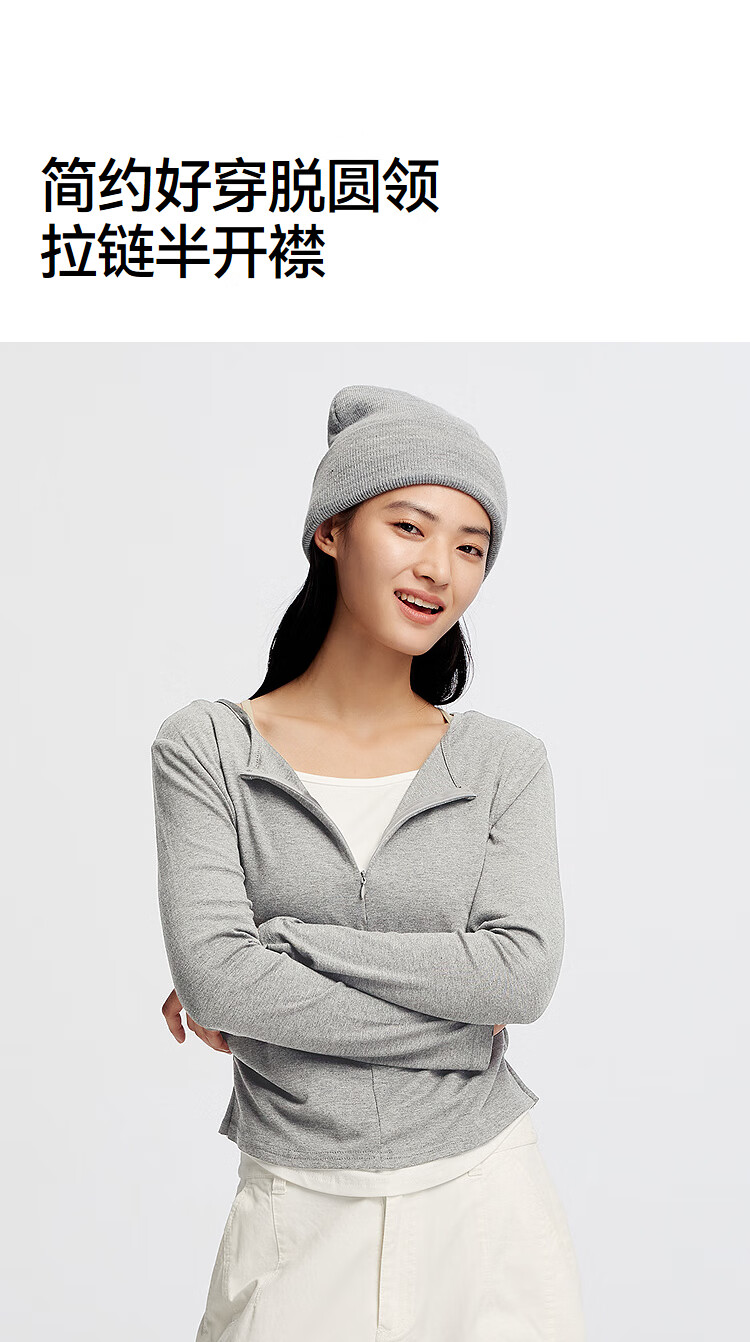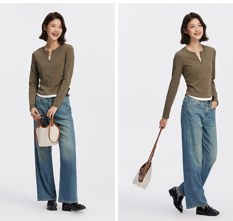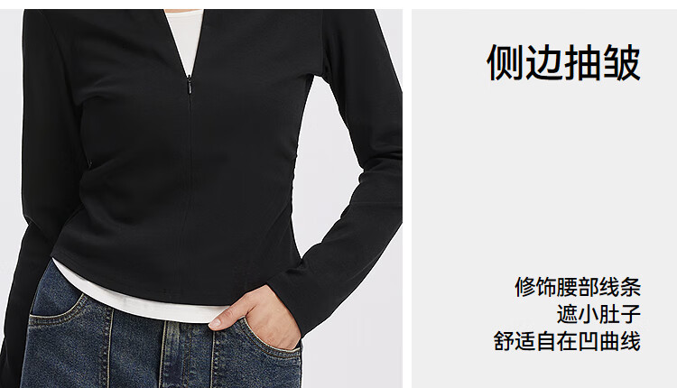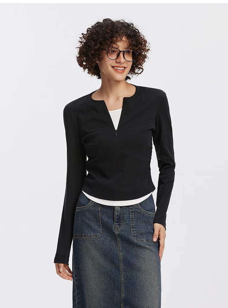森马[商场同款]长袖T恤女短款显瘦设计感2025新款修身假两件秋装 深咖啡50976 M