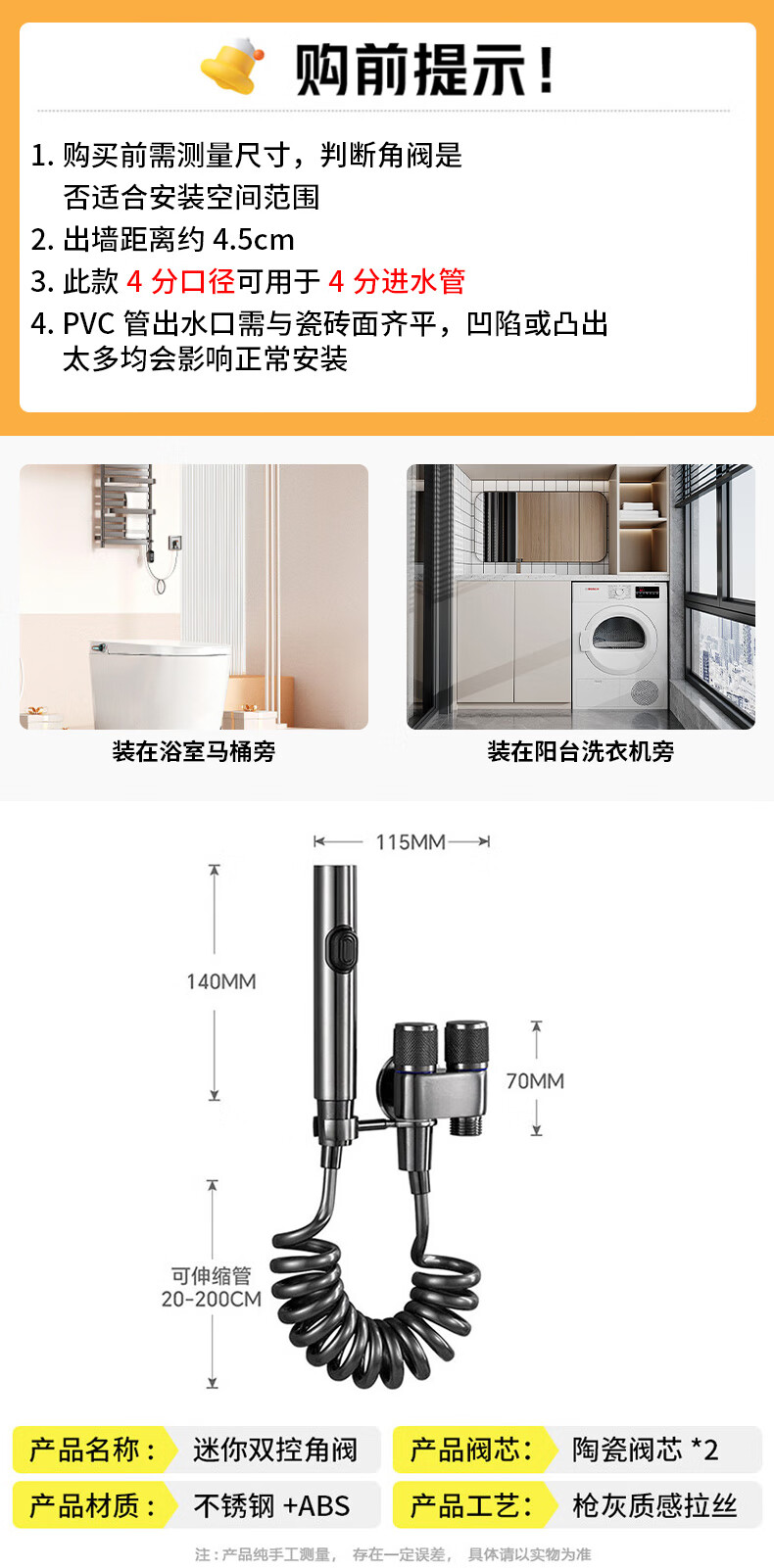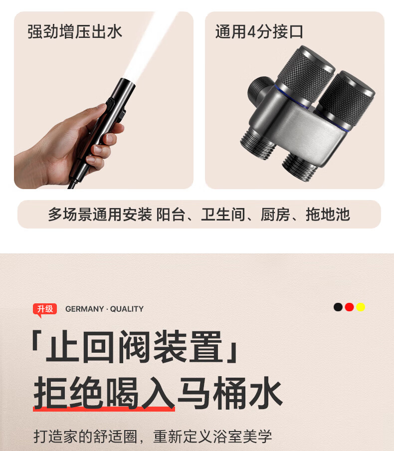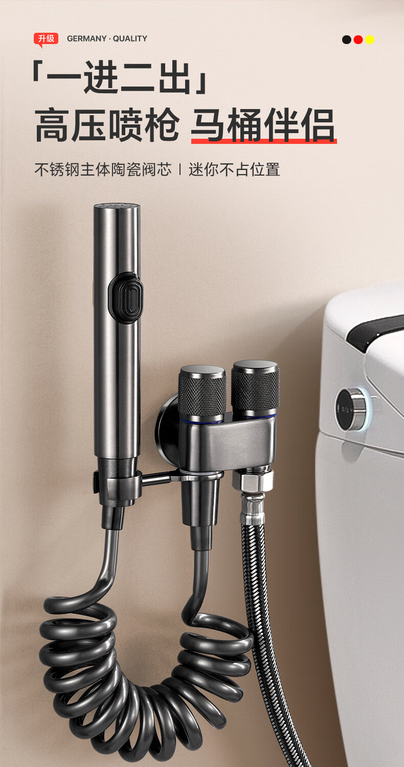 JROR【德国】马桶高压水喷枪一进二出角阀马桶伴侣套装卫生间冲洗器
