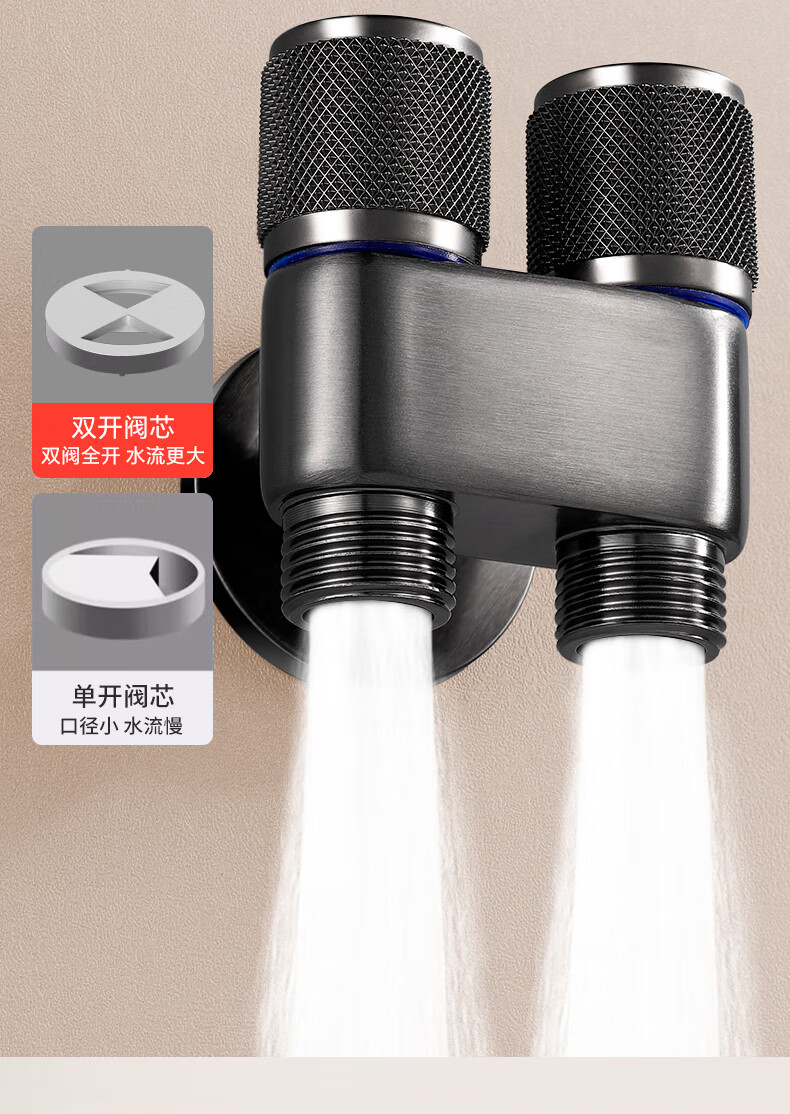 GuGuGo【德国】全铜主体水龙头洗脸盆冷热水器二合一卫生间洗手盆防溅水 【全铜主体】万向水龙头-枪灰 两档出水丨配80cm冷热进水管*2