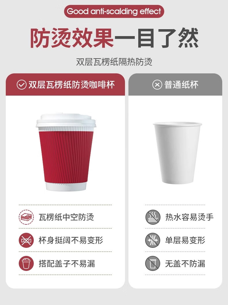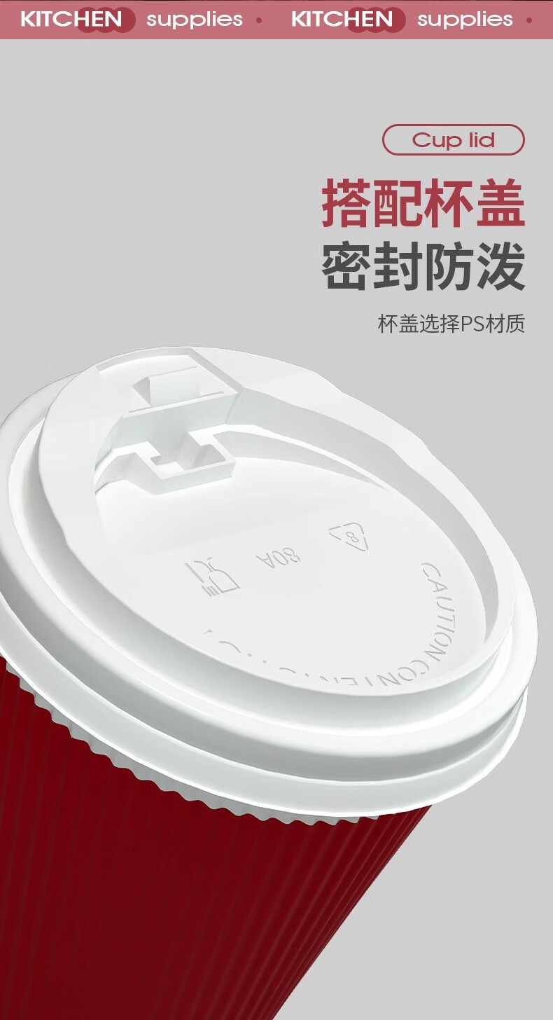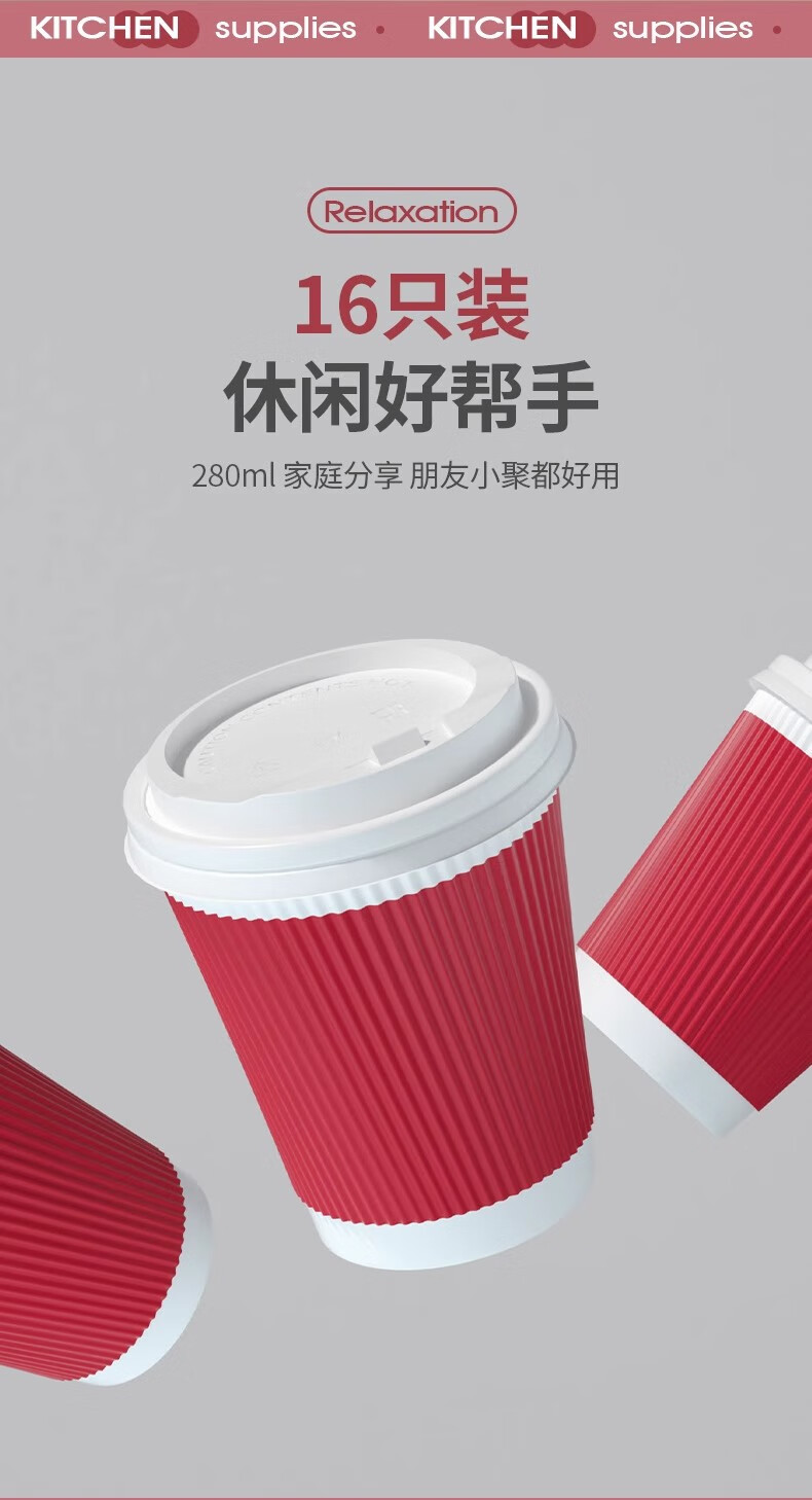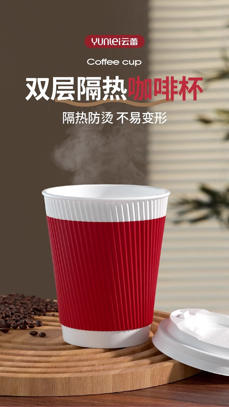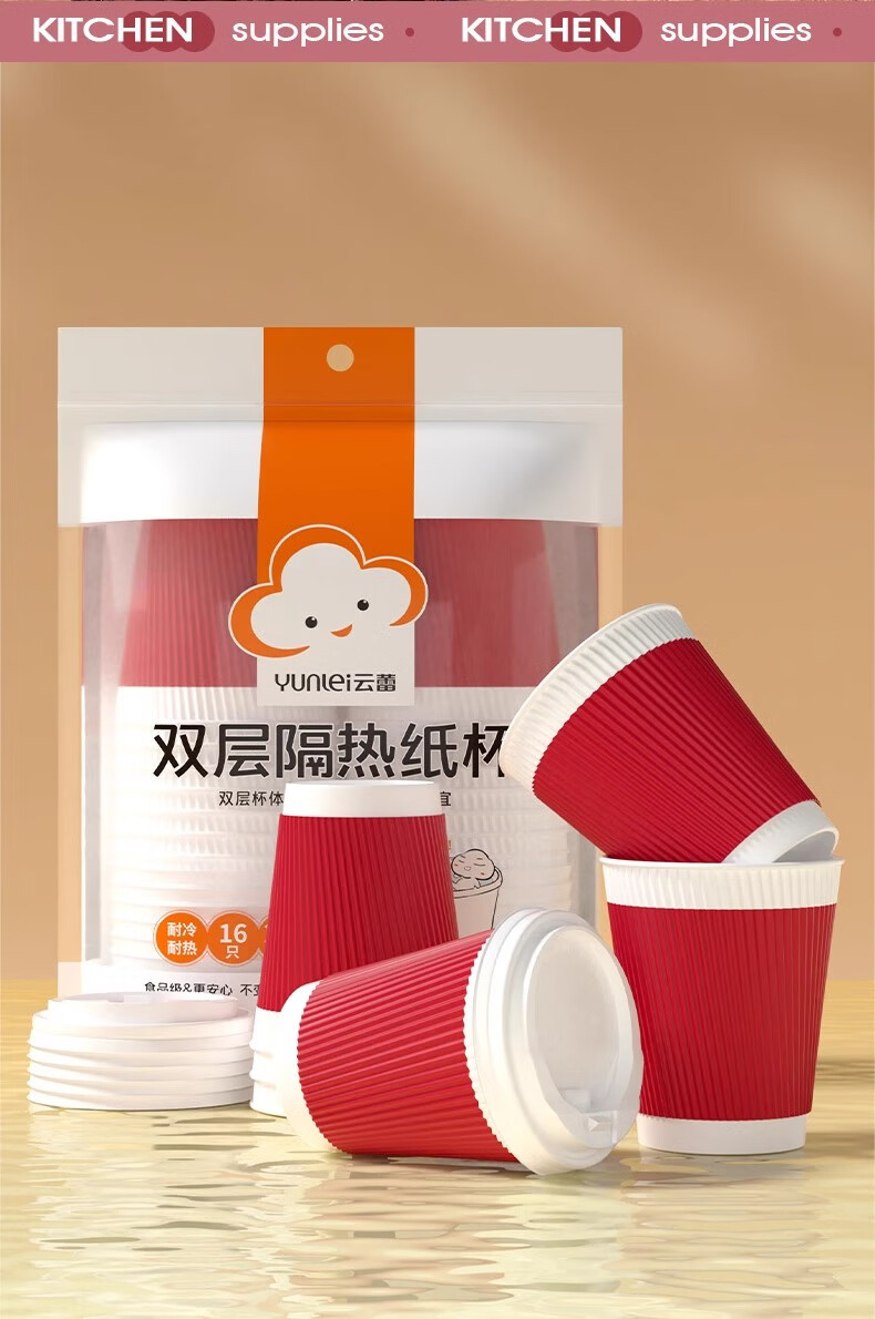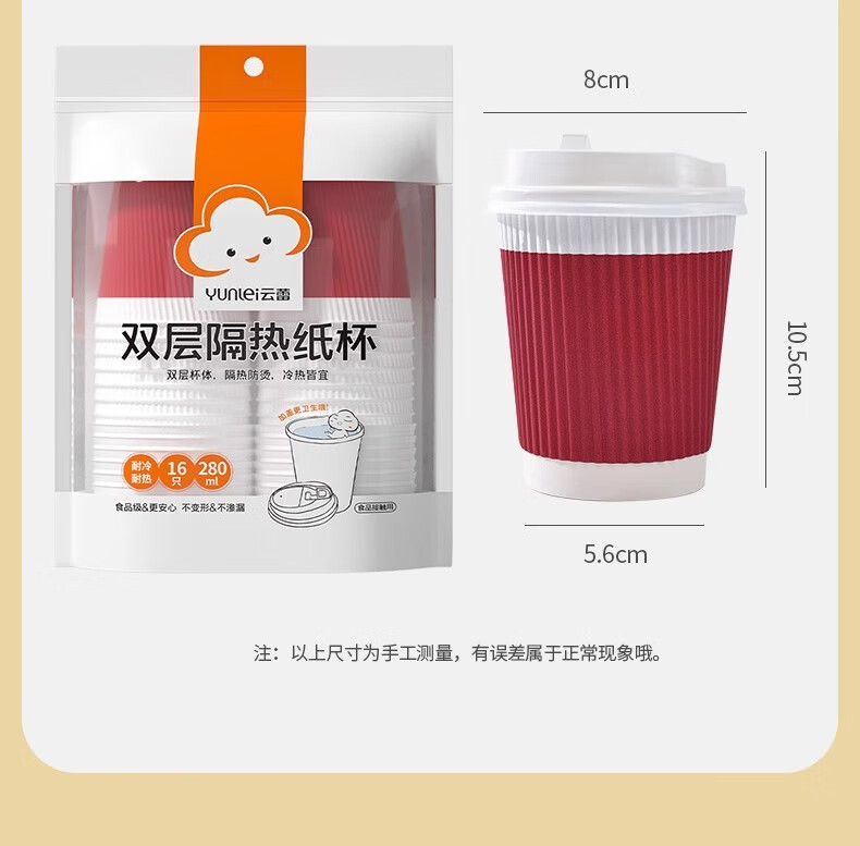 云蕾一次性咖啡杯纸杯加厚奶茶杯外卖打包带盖家商用防烫杯280ML*16套