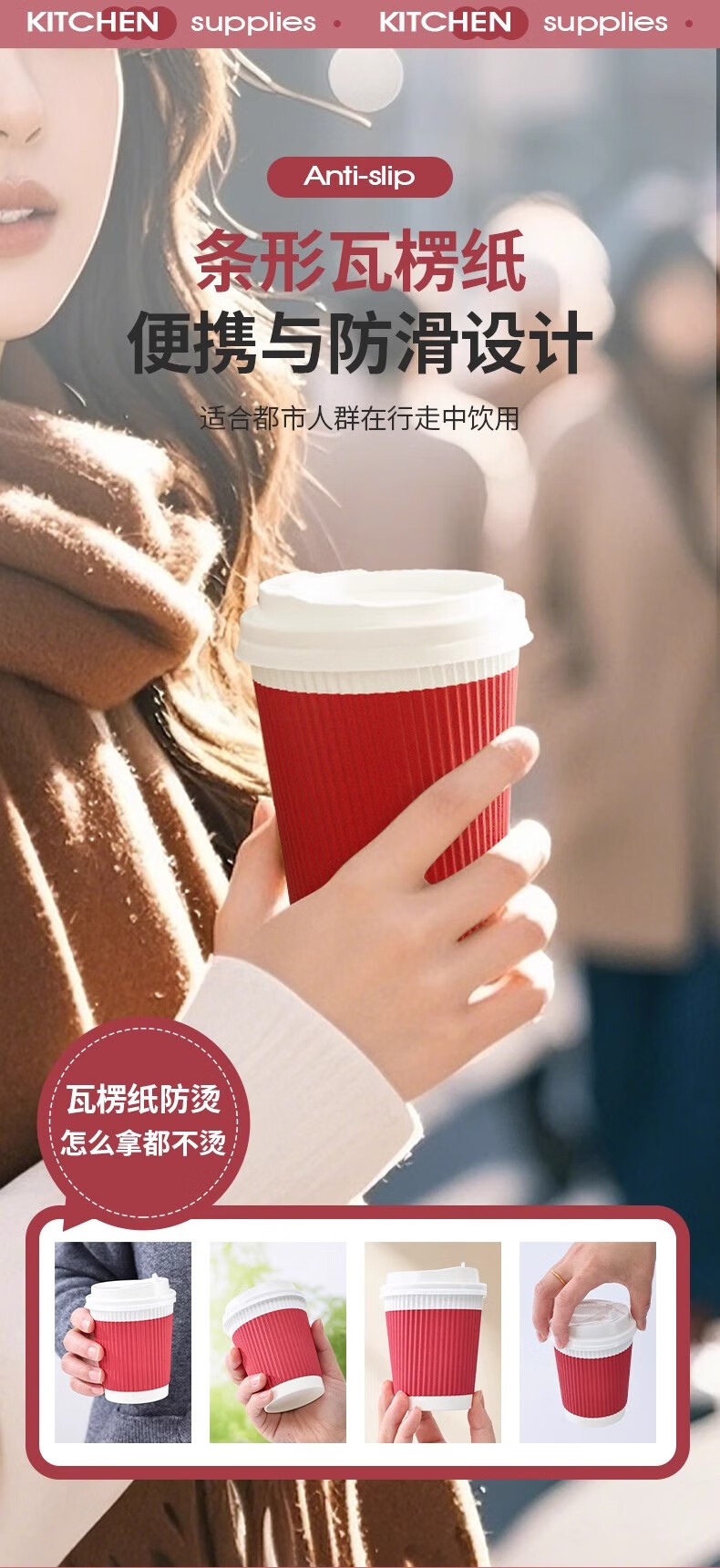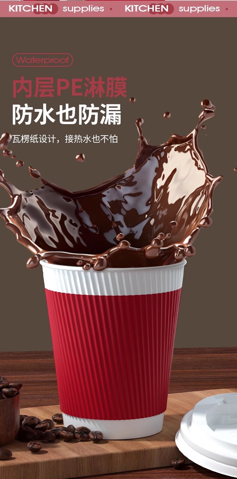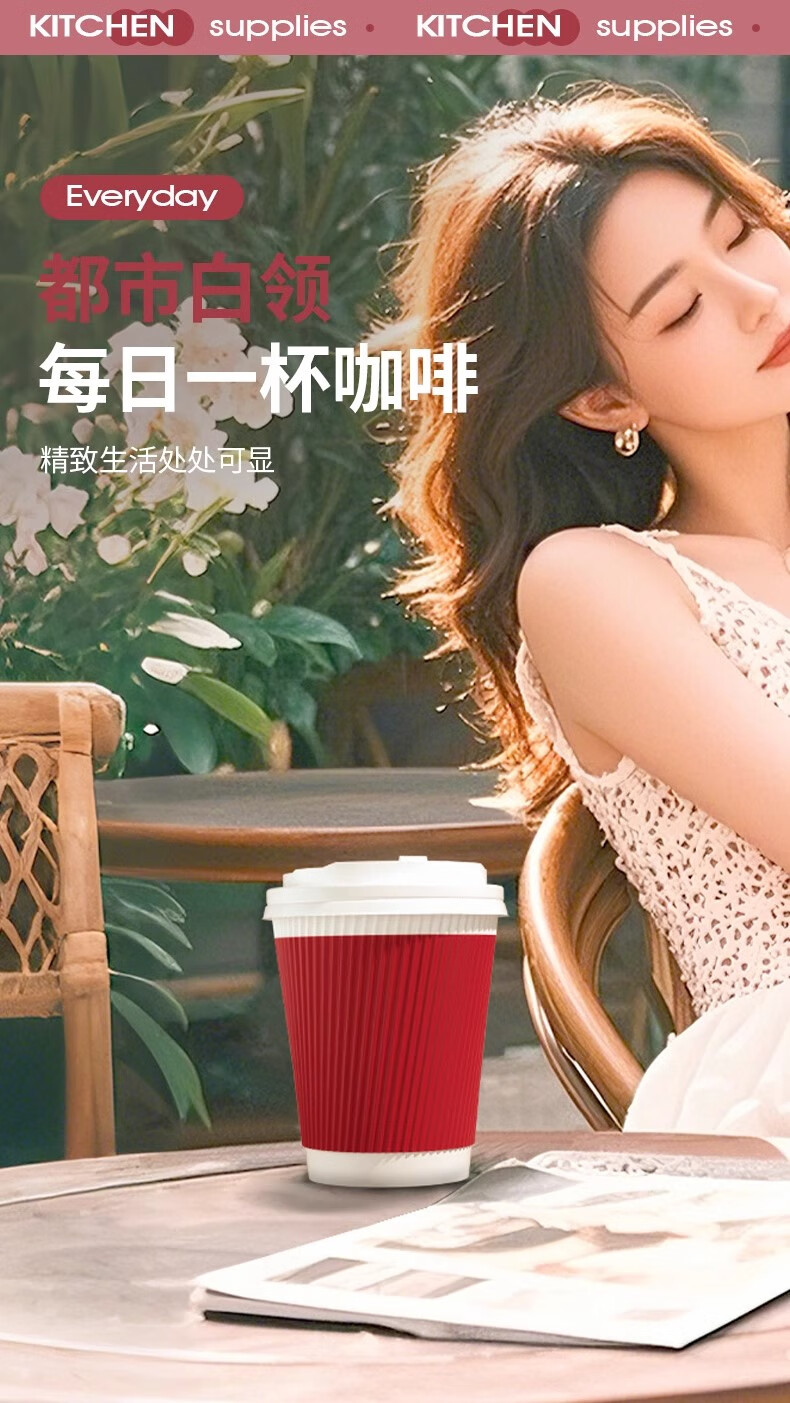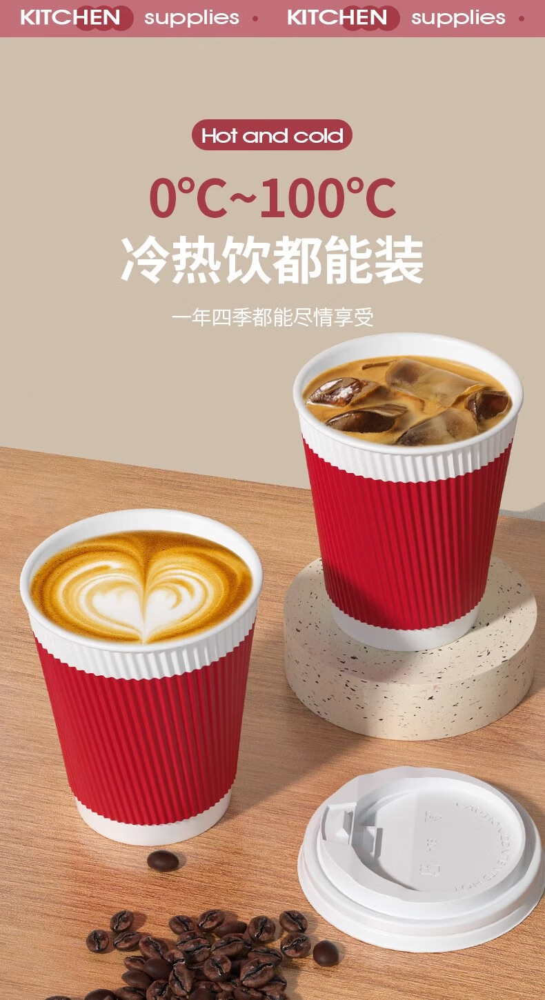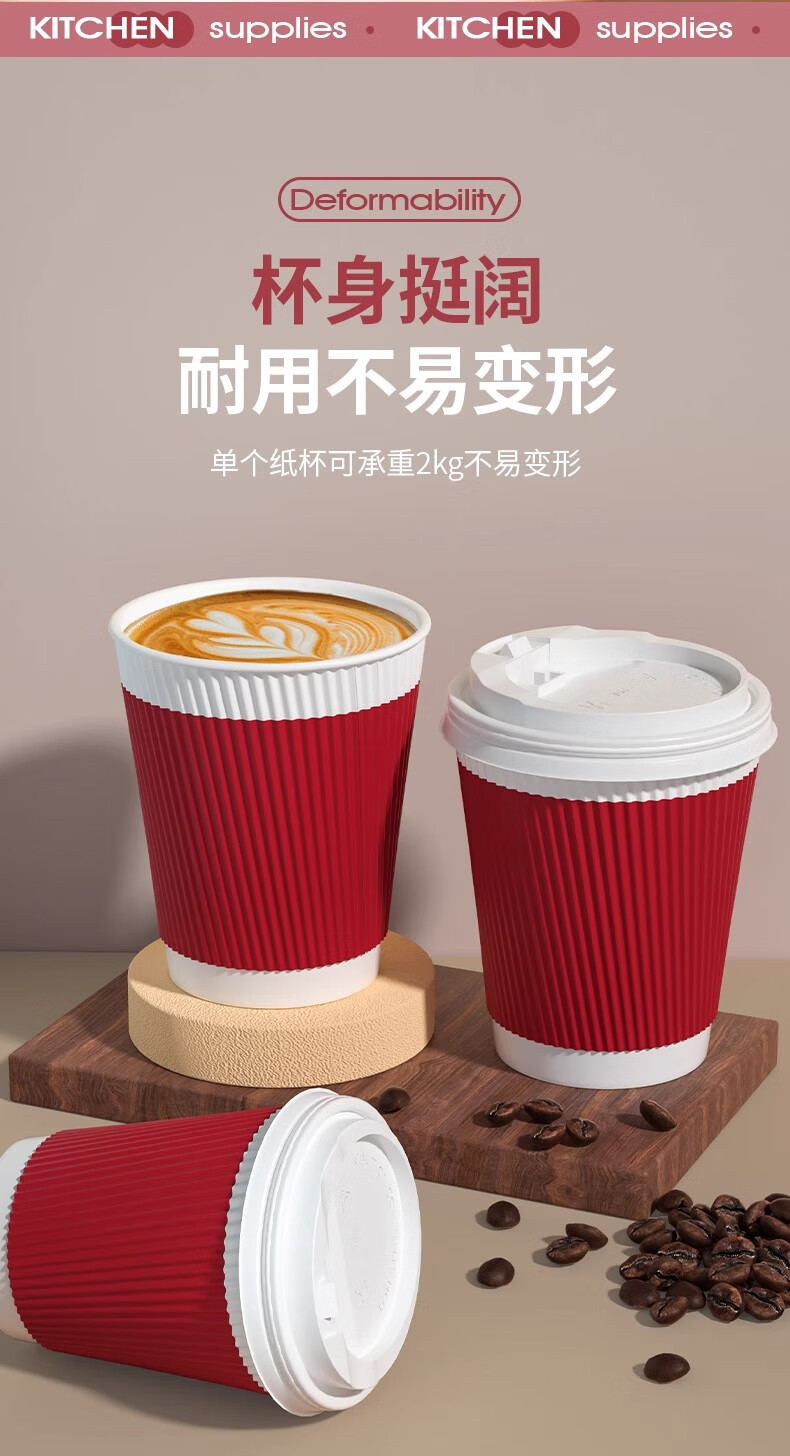 云蕾一次性咖啡杯纸杯加厚奶茶杯外卖打包带盖家商用防烫杯280ML*16套