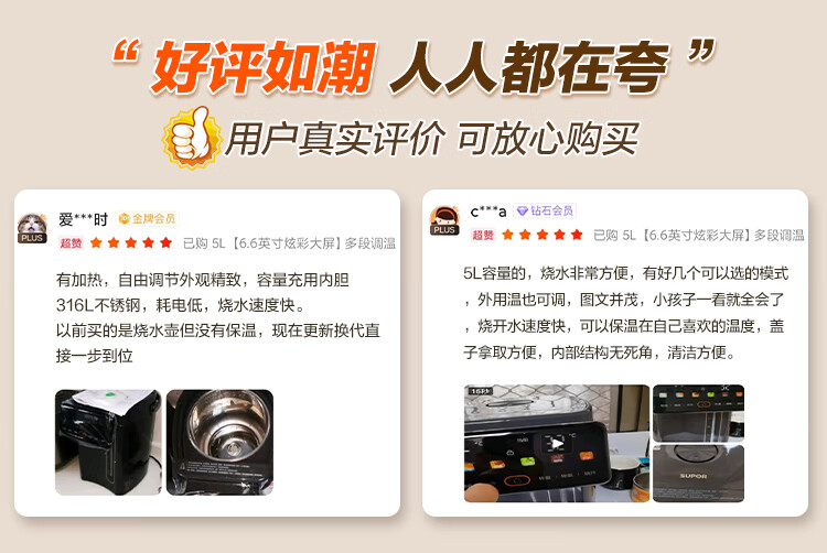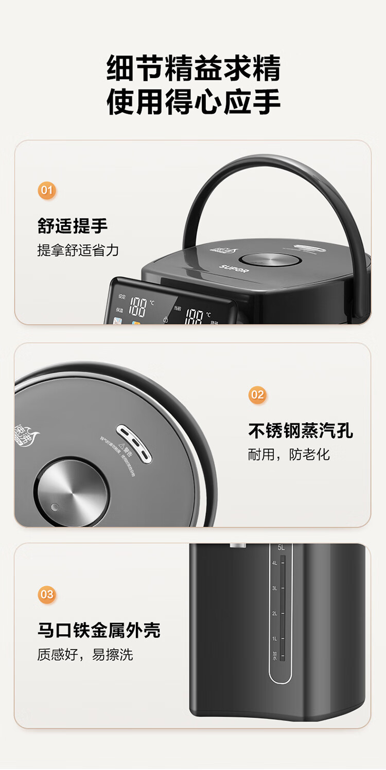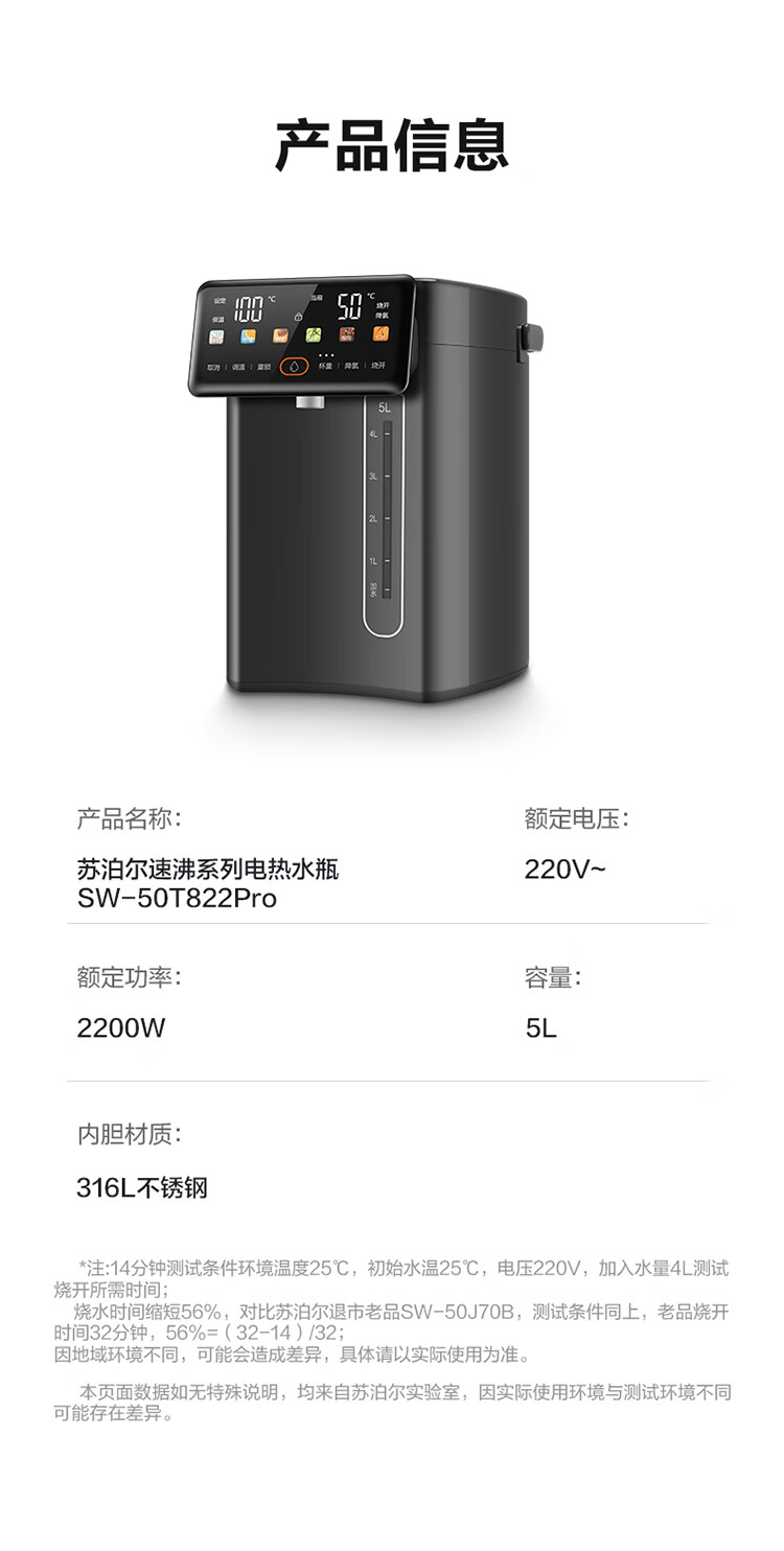 苏泊尔(SUPOR)5L大容量 电热水壶烧水壶开水壶电水壶 饮水机电热水瓶 家用智能保温恒温 316L不锈钢SW-50T822PRO