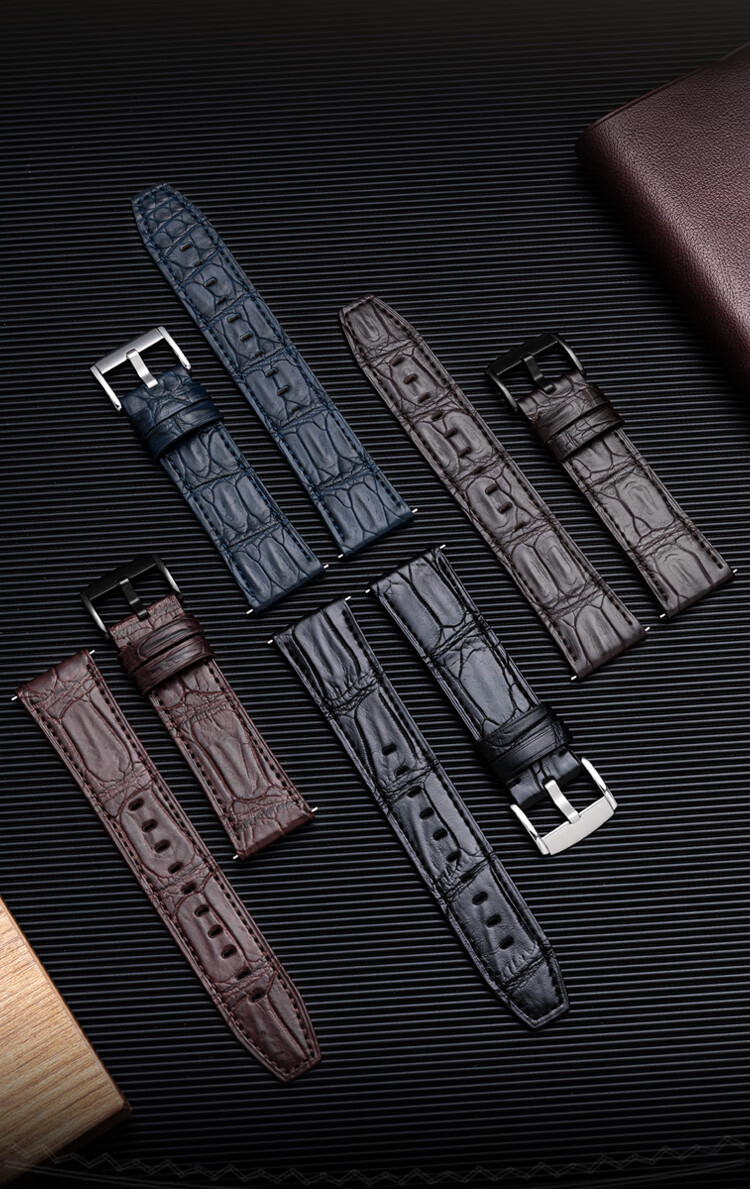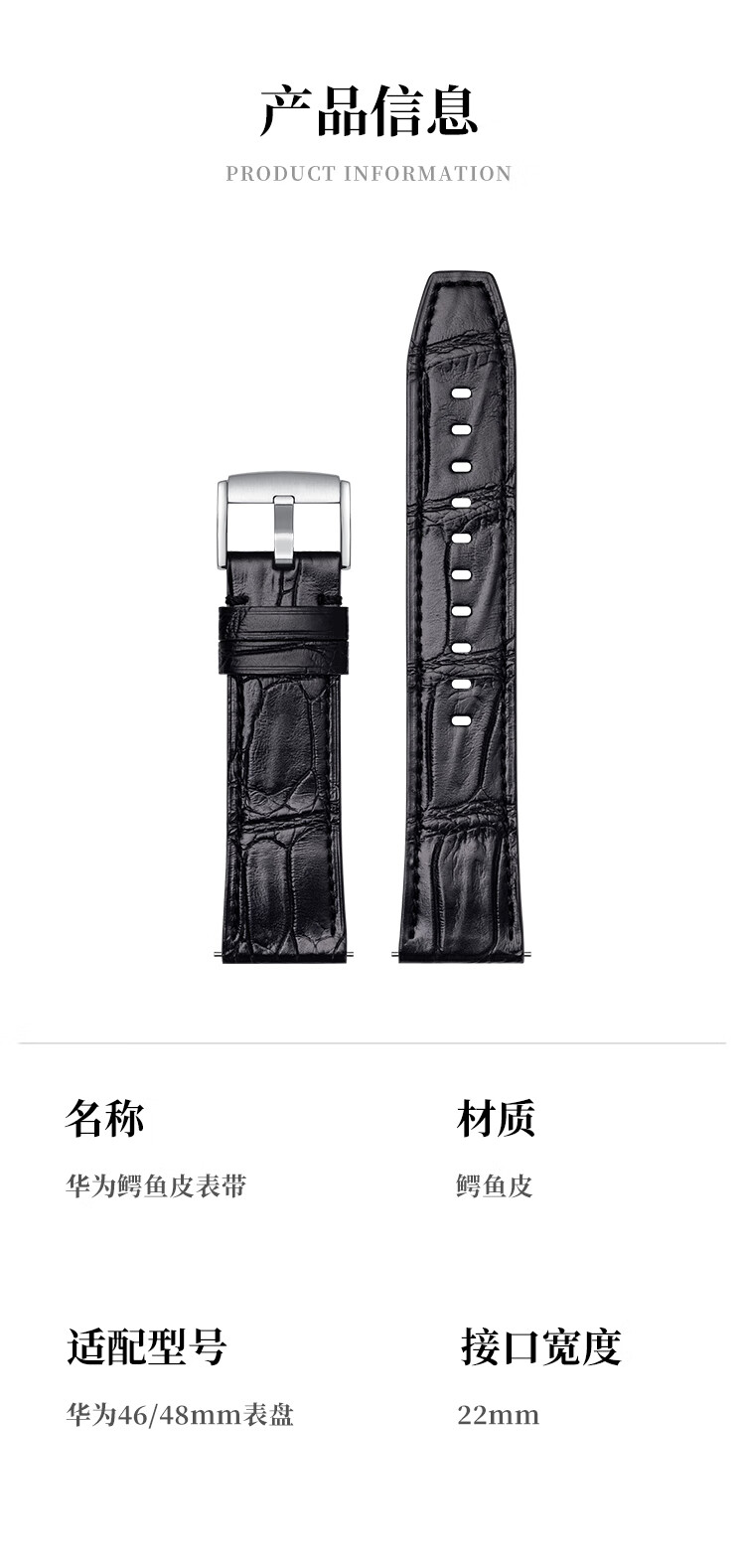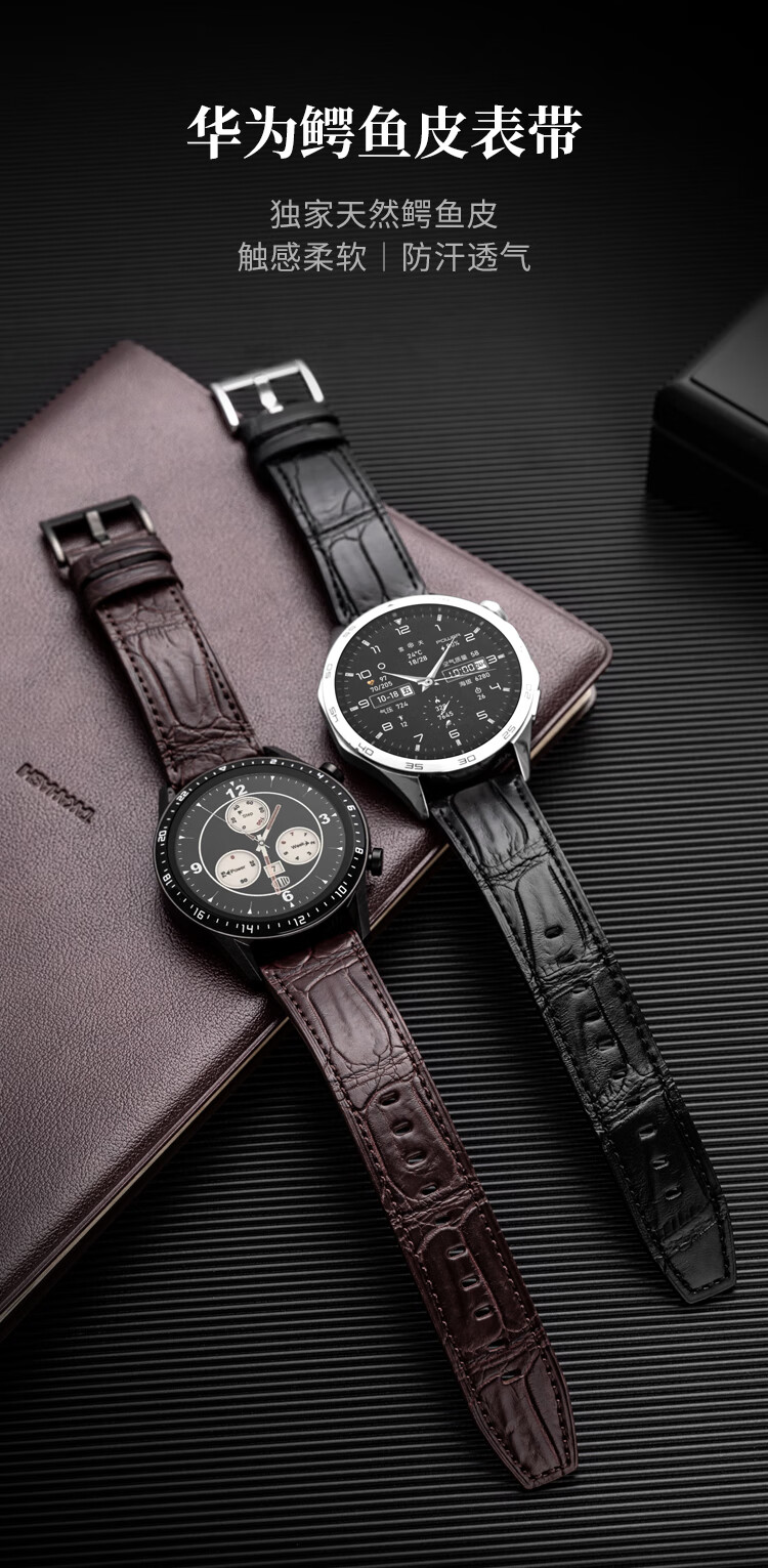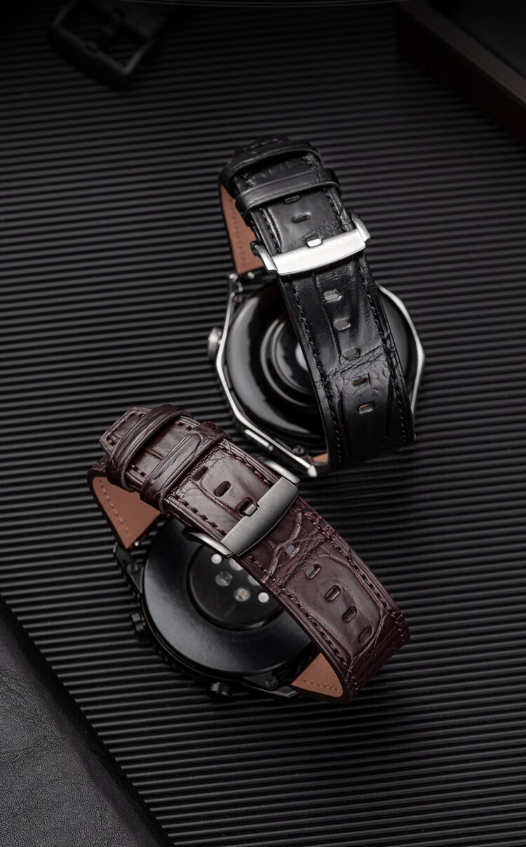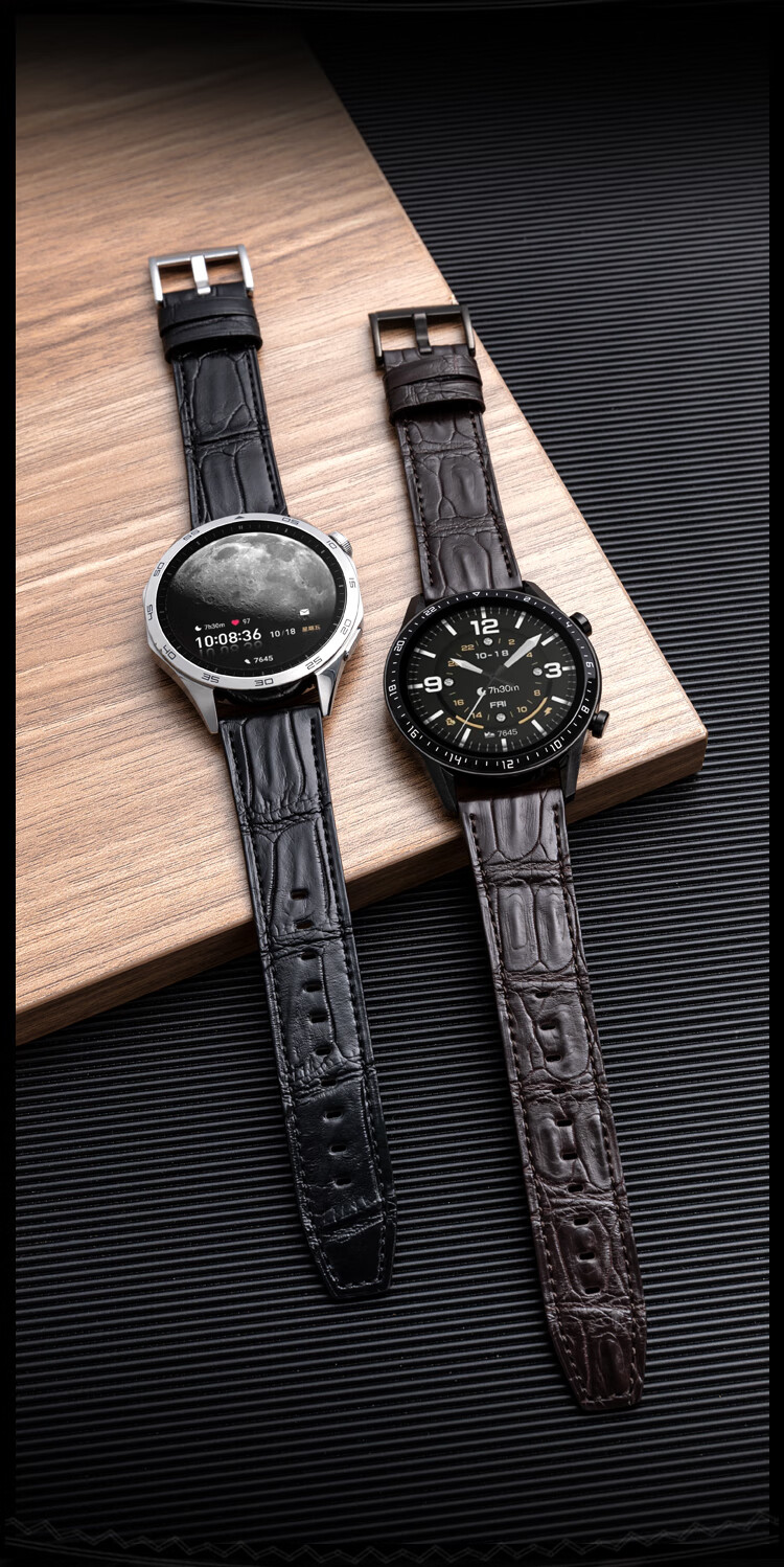 istrap华为手表表带GT5/gt4/3鳄鱼皮腕带非凡大师保时捷版Watch5/4/3Pro手表带 黑色配针扣 22mm