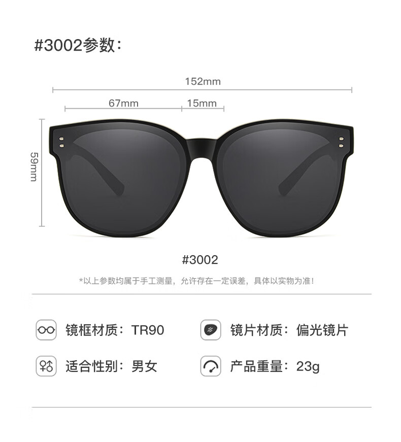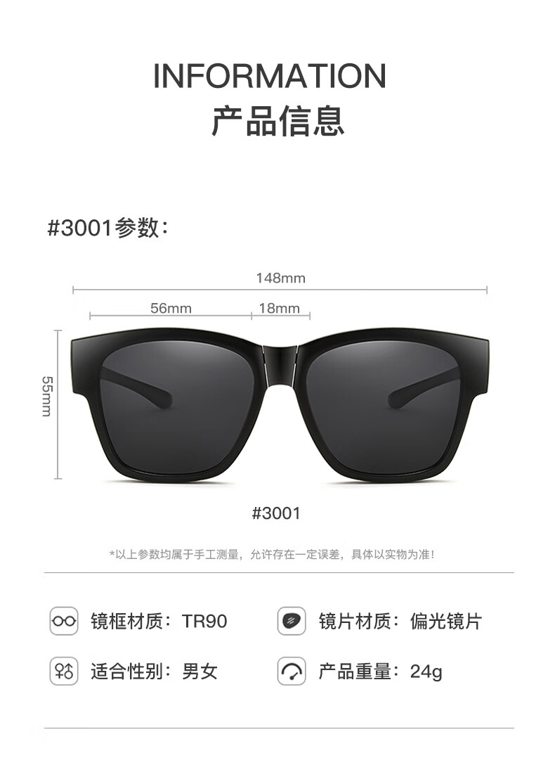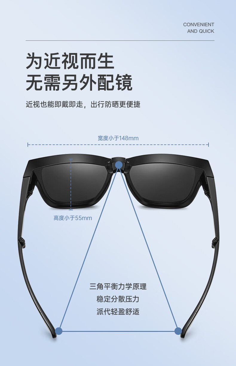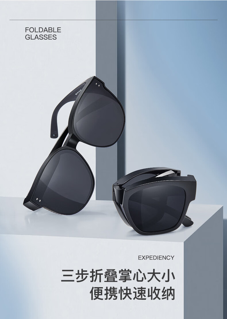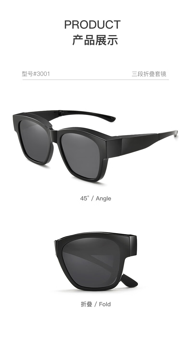 mikibobo太阳镜 墨镜男女 口袋折叠 近视专用套镜 开车防紫外线UV400 折叠云镜黑