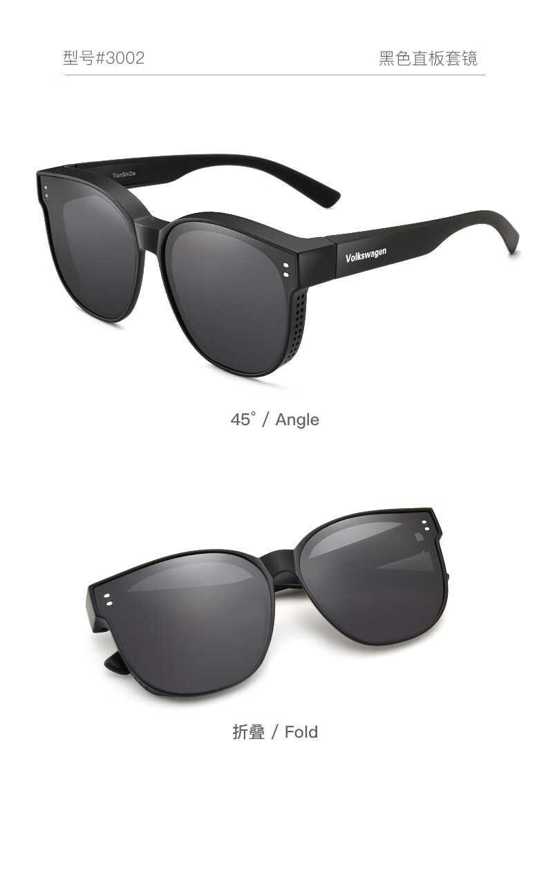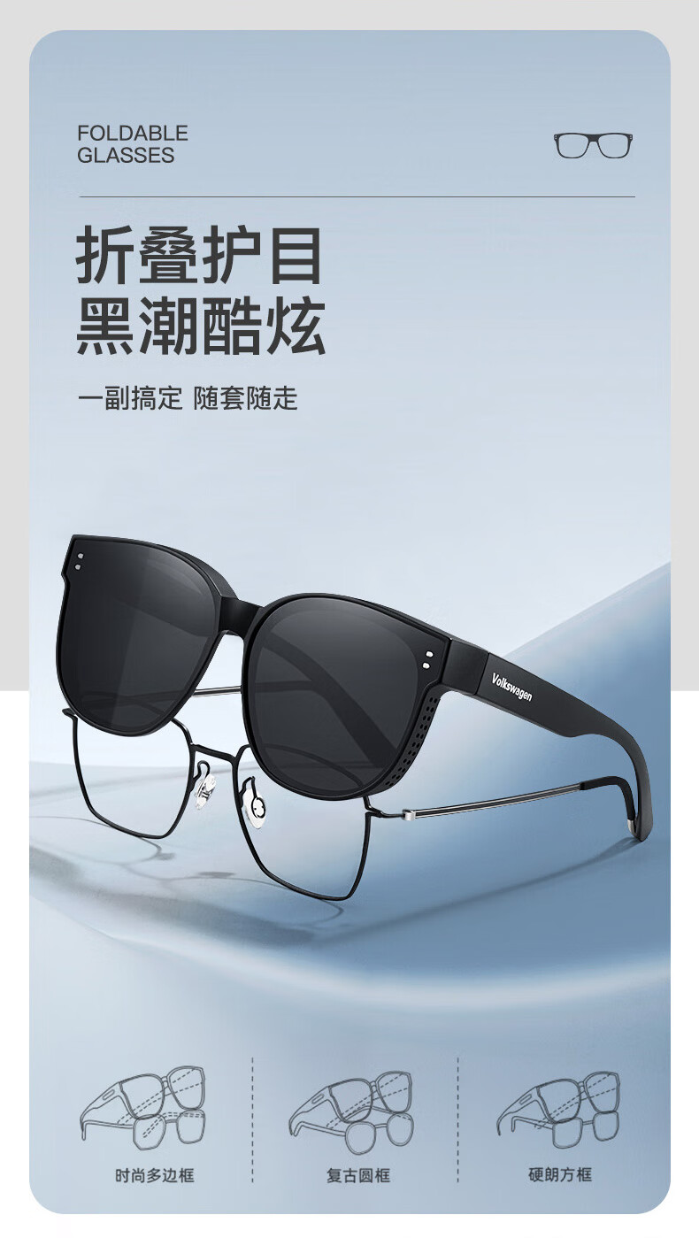 VOLKSWAGEN近视可戴偏光眼镜太阳镜男士近视墨镜男开车折叠套镜V3001