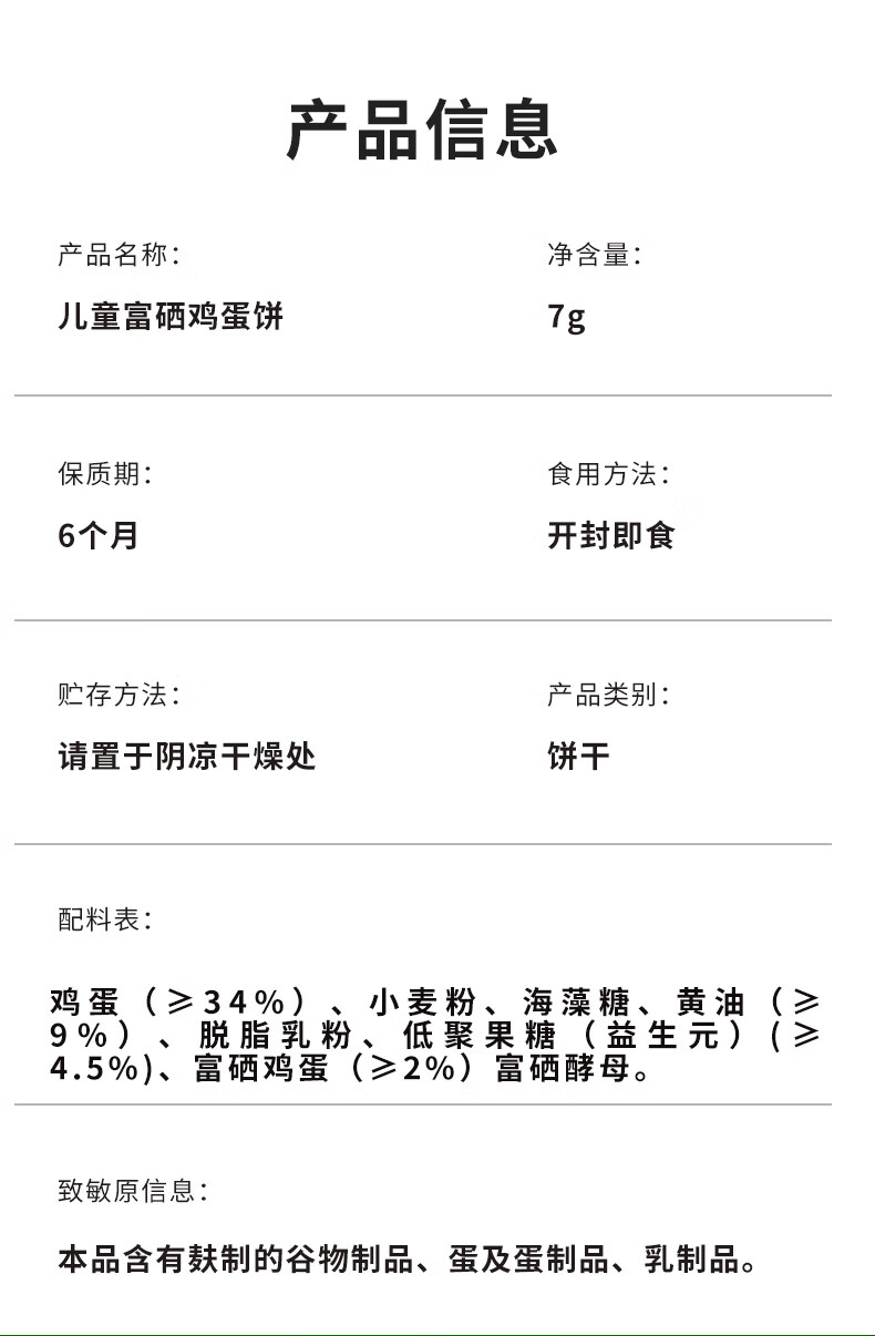 比逗仕儿童富硒鸡蛋饼儿童标准添加益生元独立小包装饼干儿童零食 【礼袋装】7g*20包