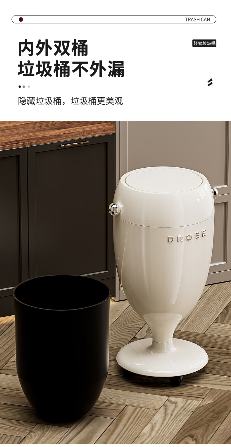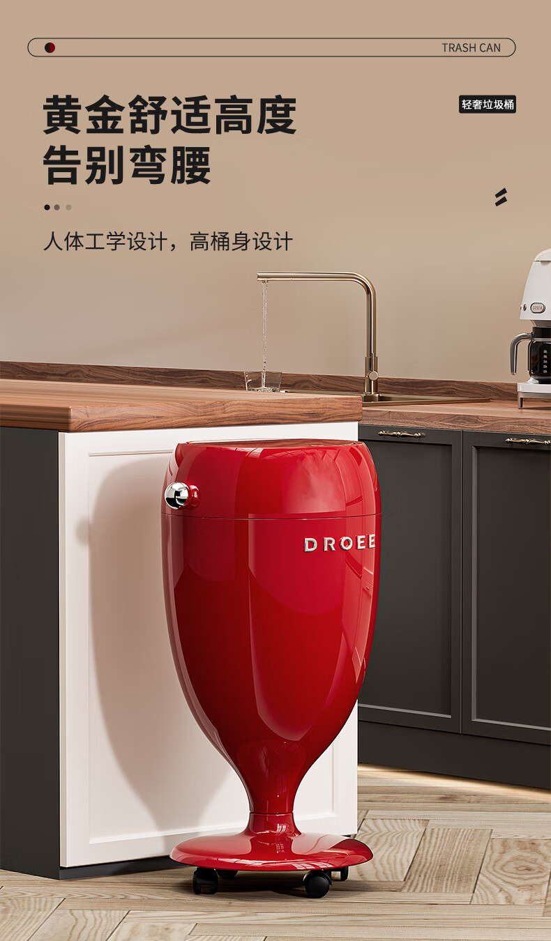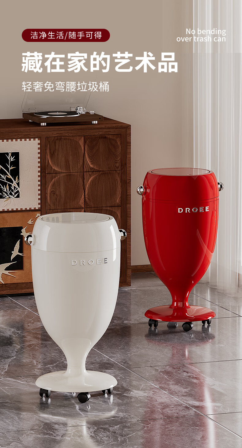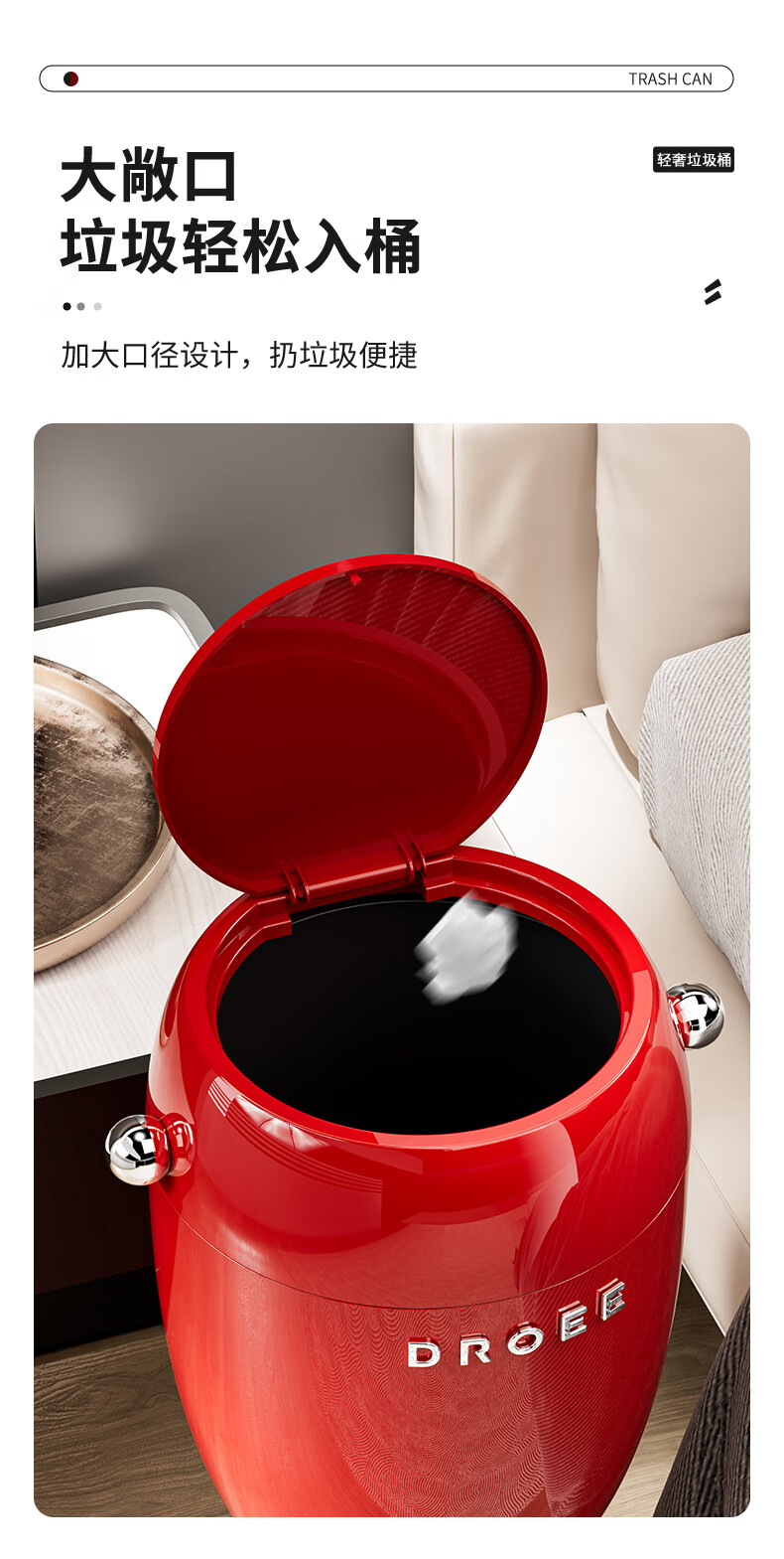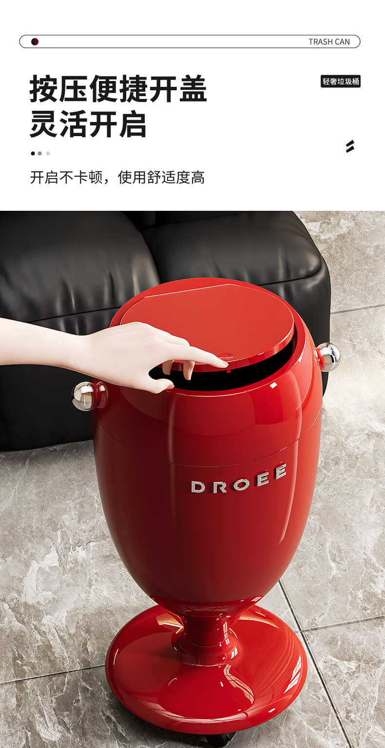星优垃圾桶家用客厅2025新款卧室大容量轻奢高档高颜值带轮带翻盖纸篓 安格拉红【含滑轮*4+按压开盖】