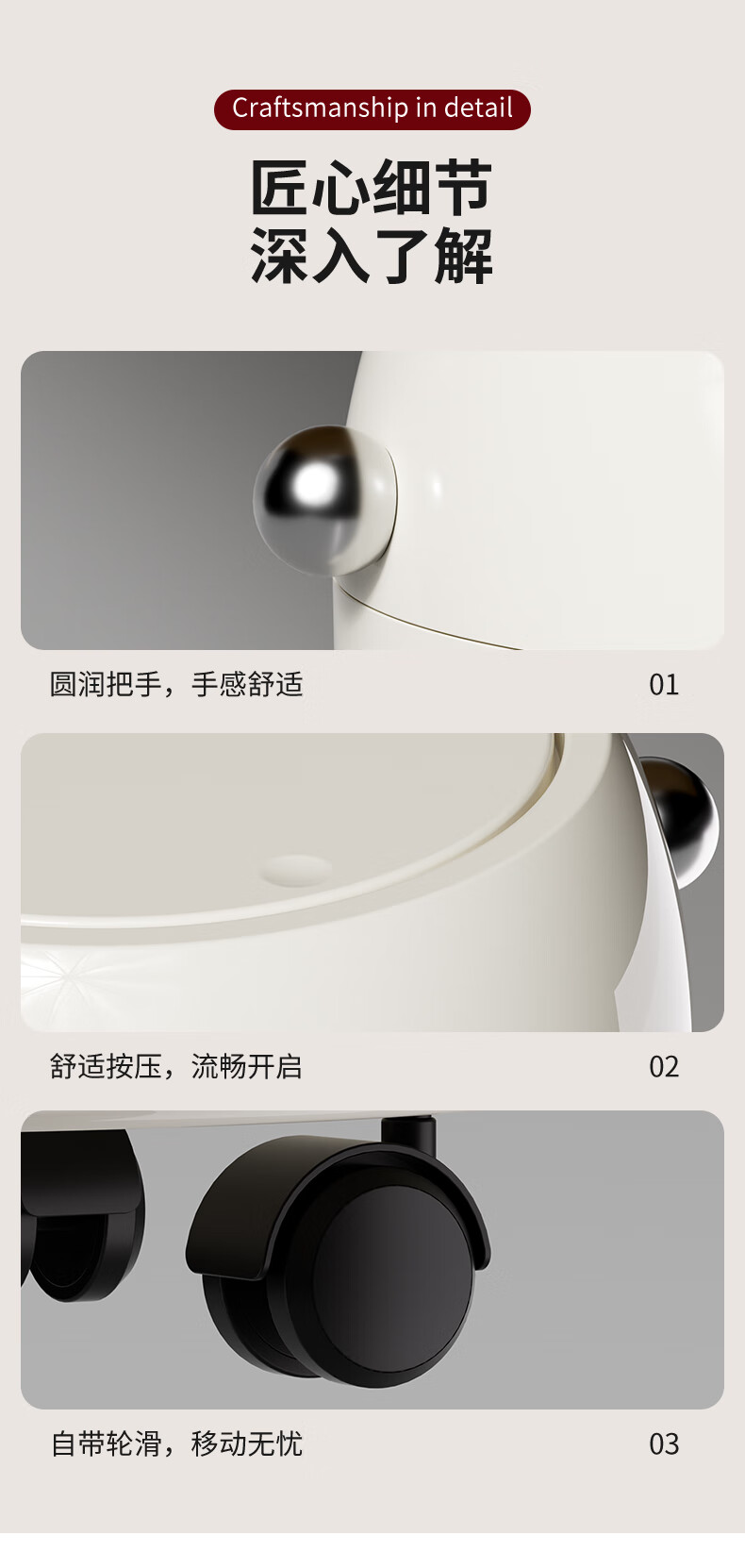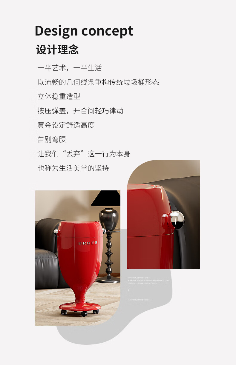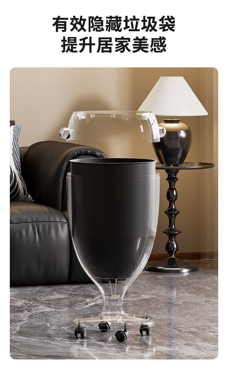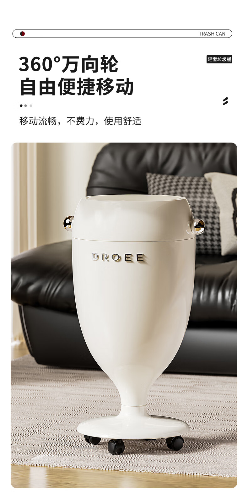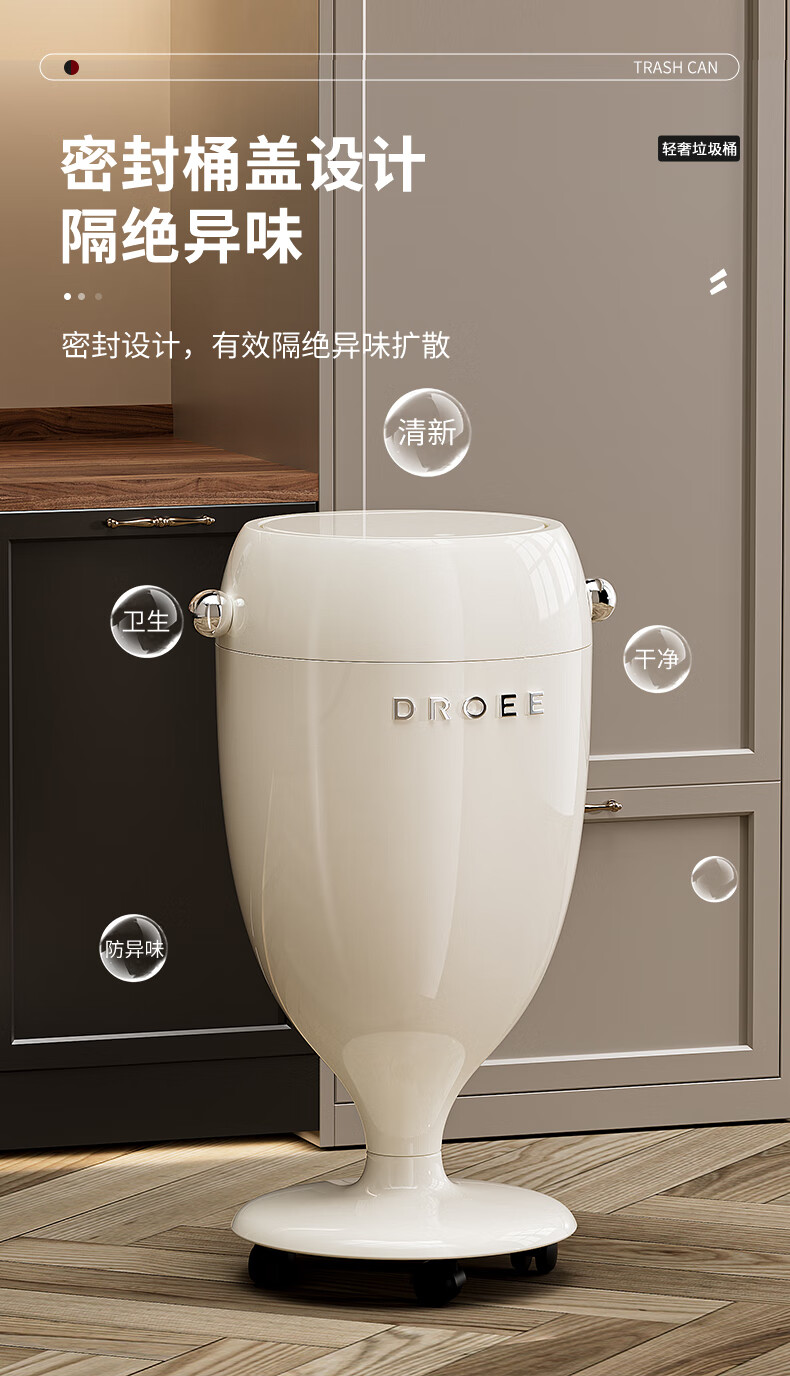 星优垃圾桶家用客厅2025新款卧室大容量轻奢高档高颜值带轮带翻盖纸篓 安格拉红【含滑轮*4+按压开盖】