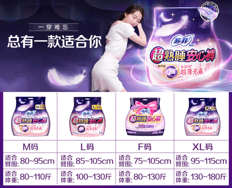 AILUKI苏菲安心裤夜用安睡裤组合M/L码裤型卫生巾姨妈裤生理裤批发正品 苏菲安心裤M码35片囤货