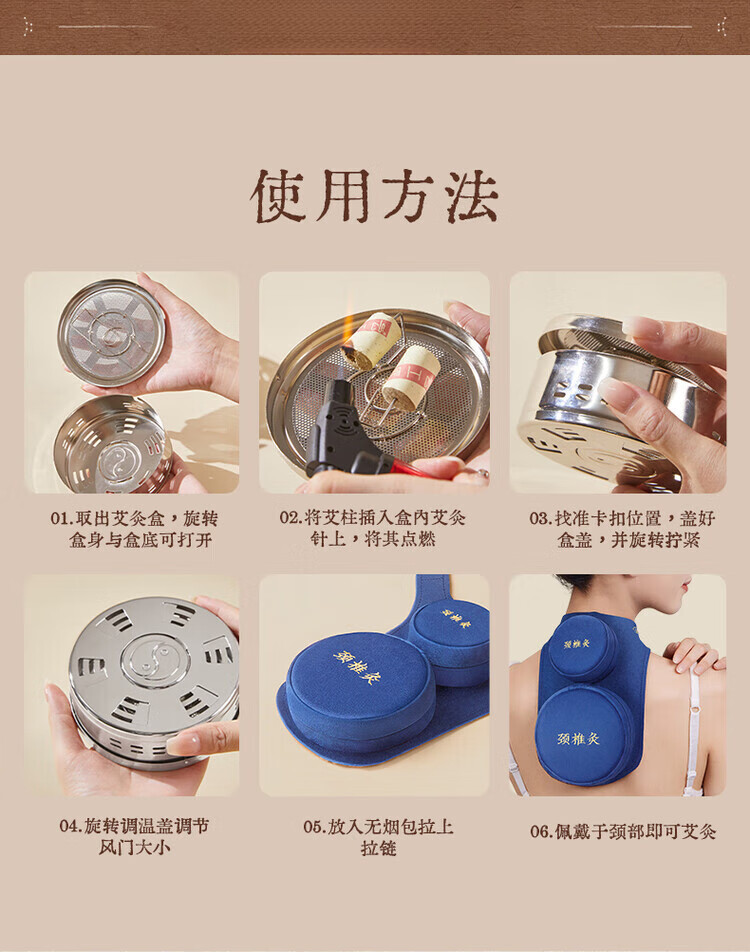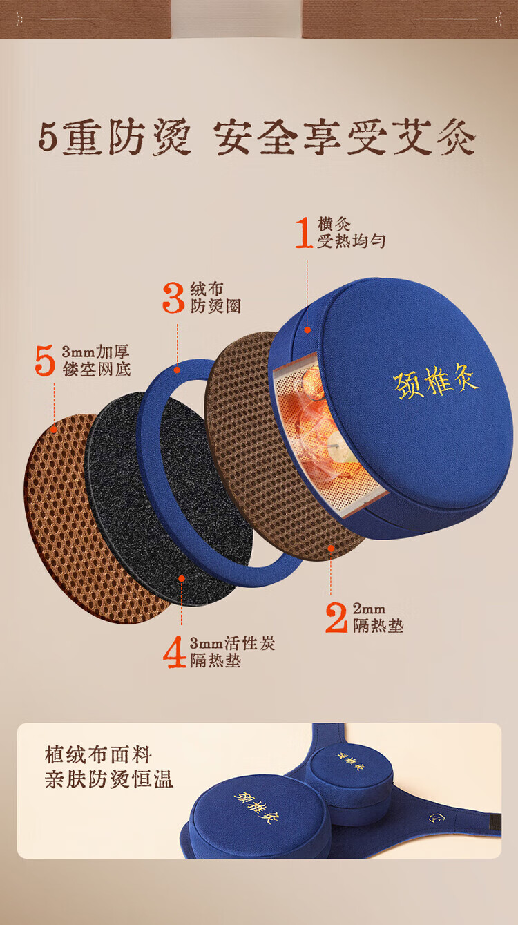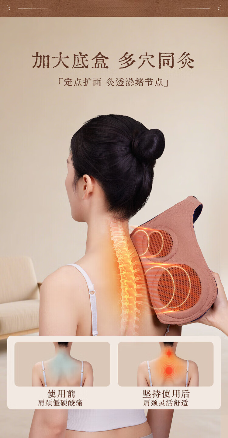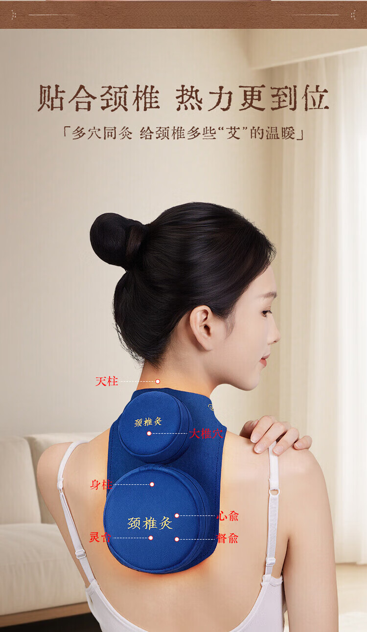 户璃德国肩颈部揉捏按摩仪颈椎专用艾灸盒随身灸家用大椎穴颈椎艾灸神器具肩颈部脖子 五穴同灸【火力温和·日常养生】+24粒三年陈石磨艾柱