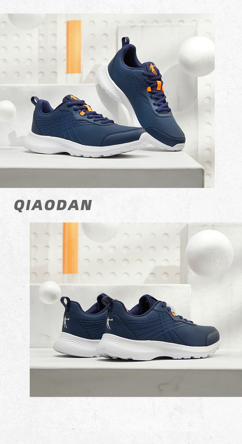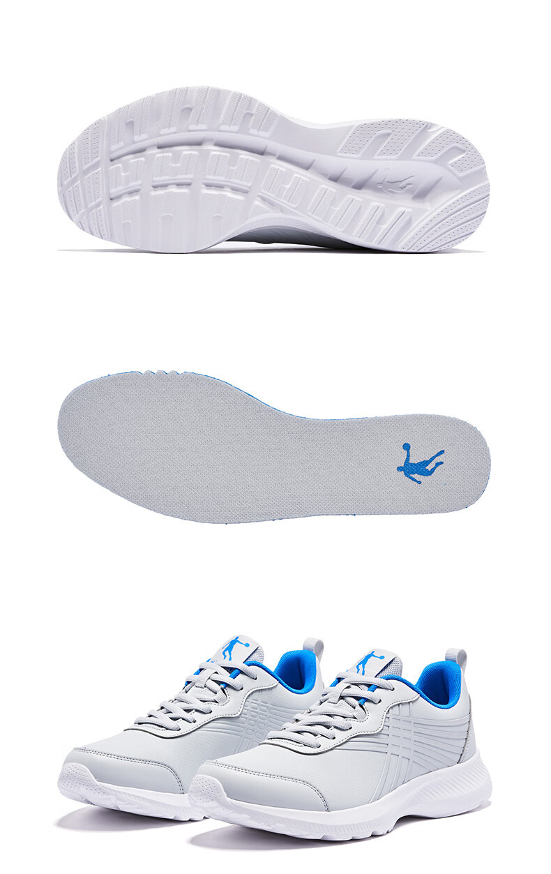 乔丹QIAODAN运动鞋男鞋冬季减震跑鞋轻便皮面革面跑步鞋 灰银色相片蓝 40