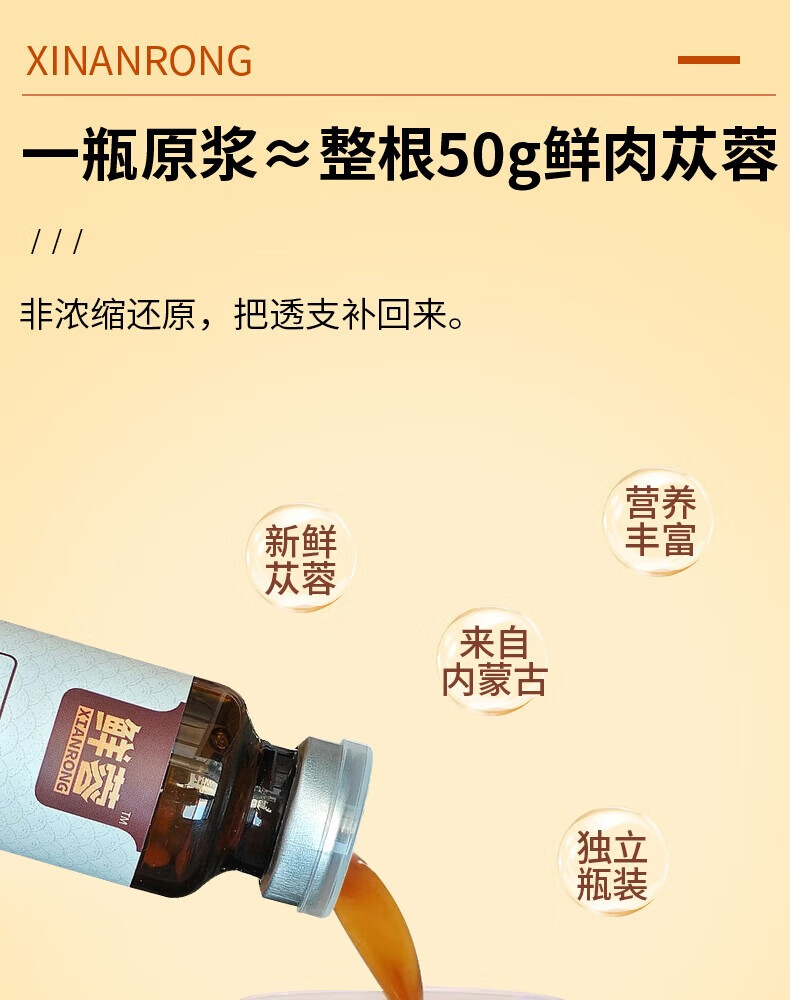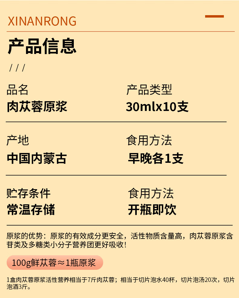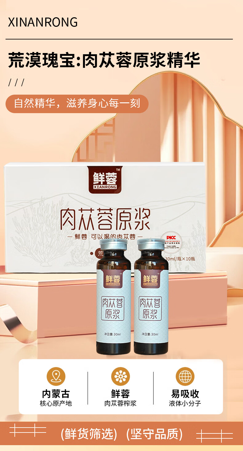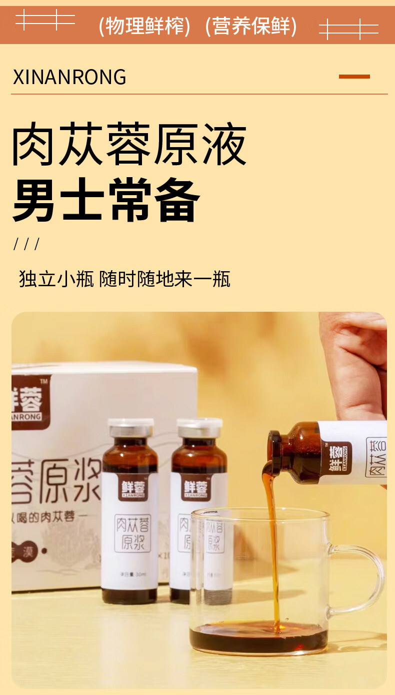 鲜蓉肉苁蓉原浆阿拉善原产地肉苁蓉鲜榨肉苁蓉口服液30ml*10瓶/盒男女皆可 单盒装 荒漠肉苁蓉