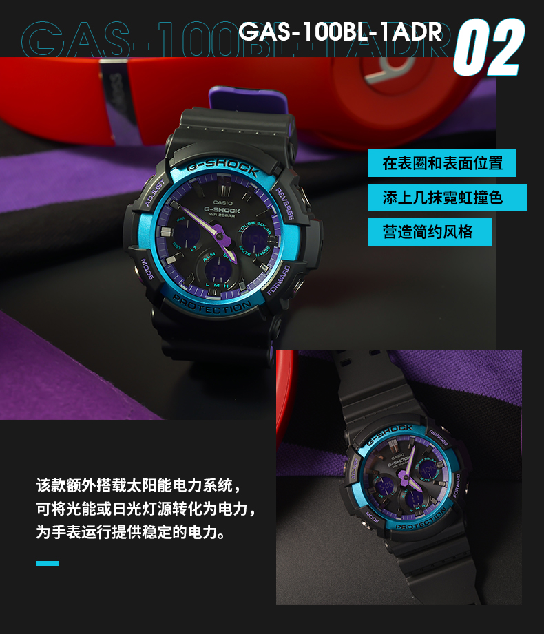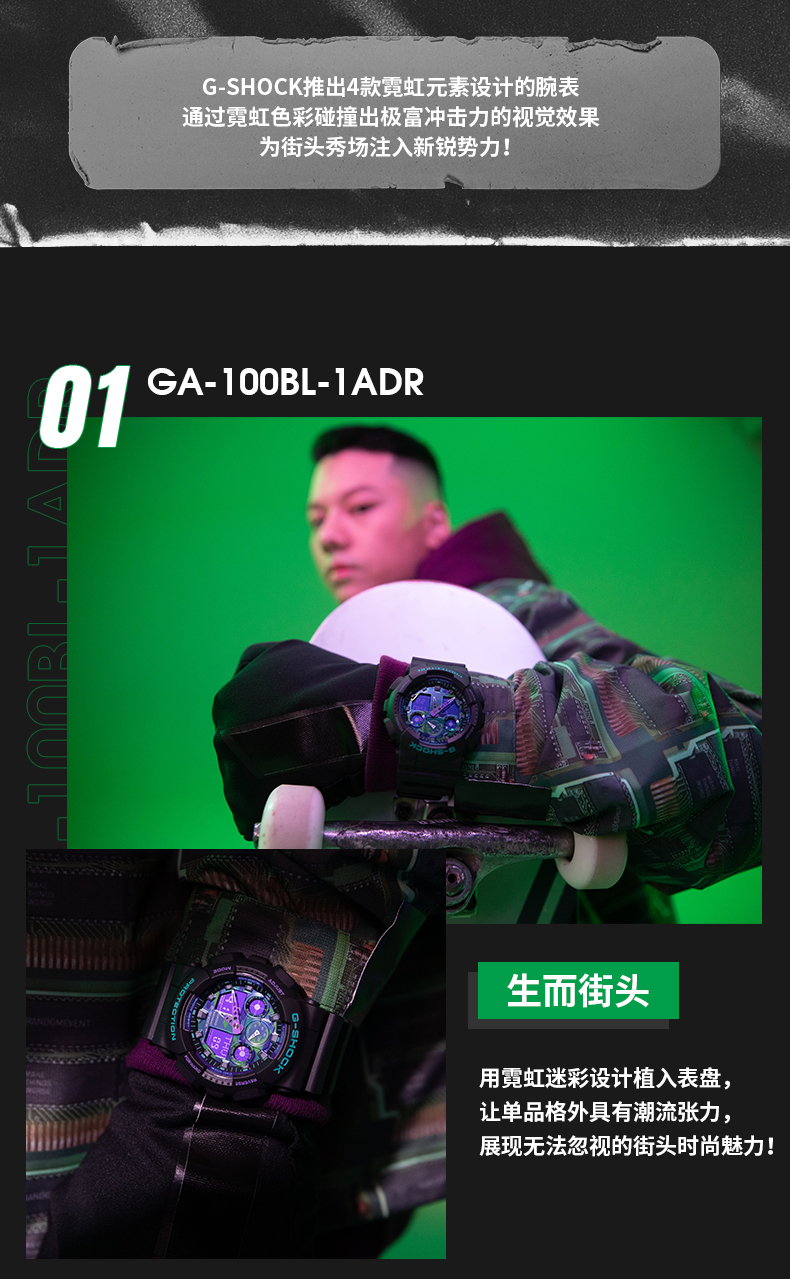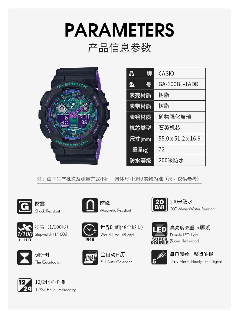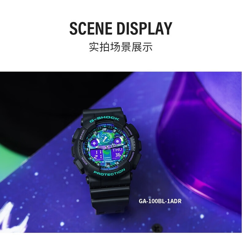 卡西欧(CASIO)G-SHOCK 海洋之心潮流炫色运动双显男表 霓彩武士 GA-100BL-1ADR