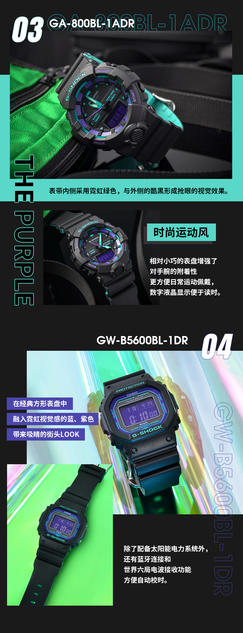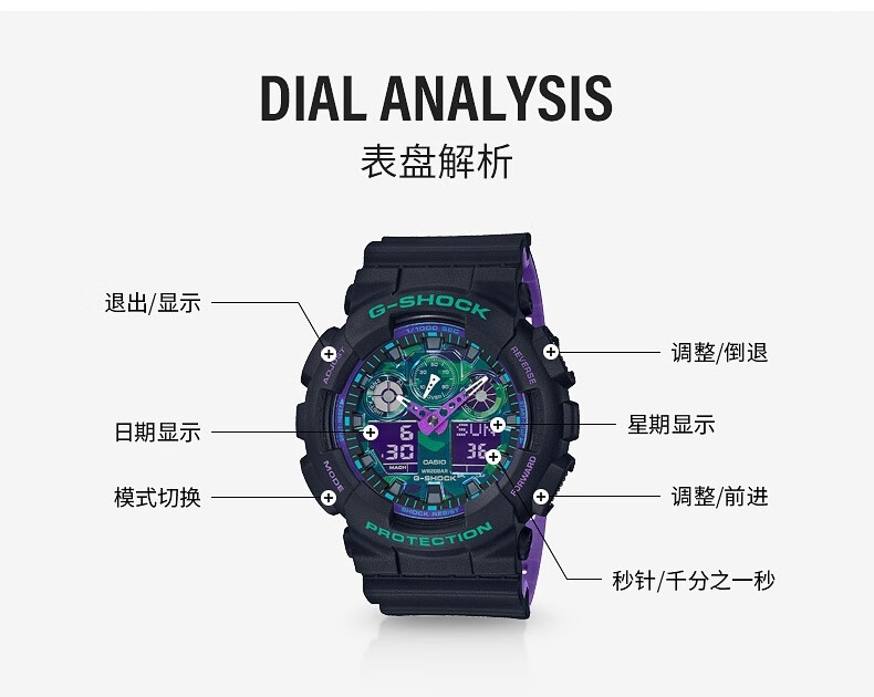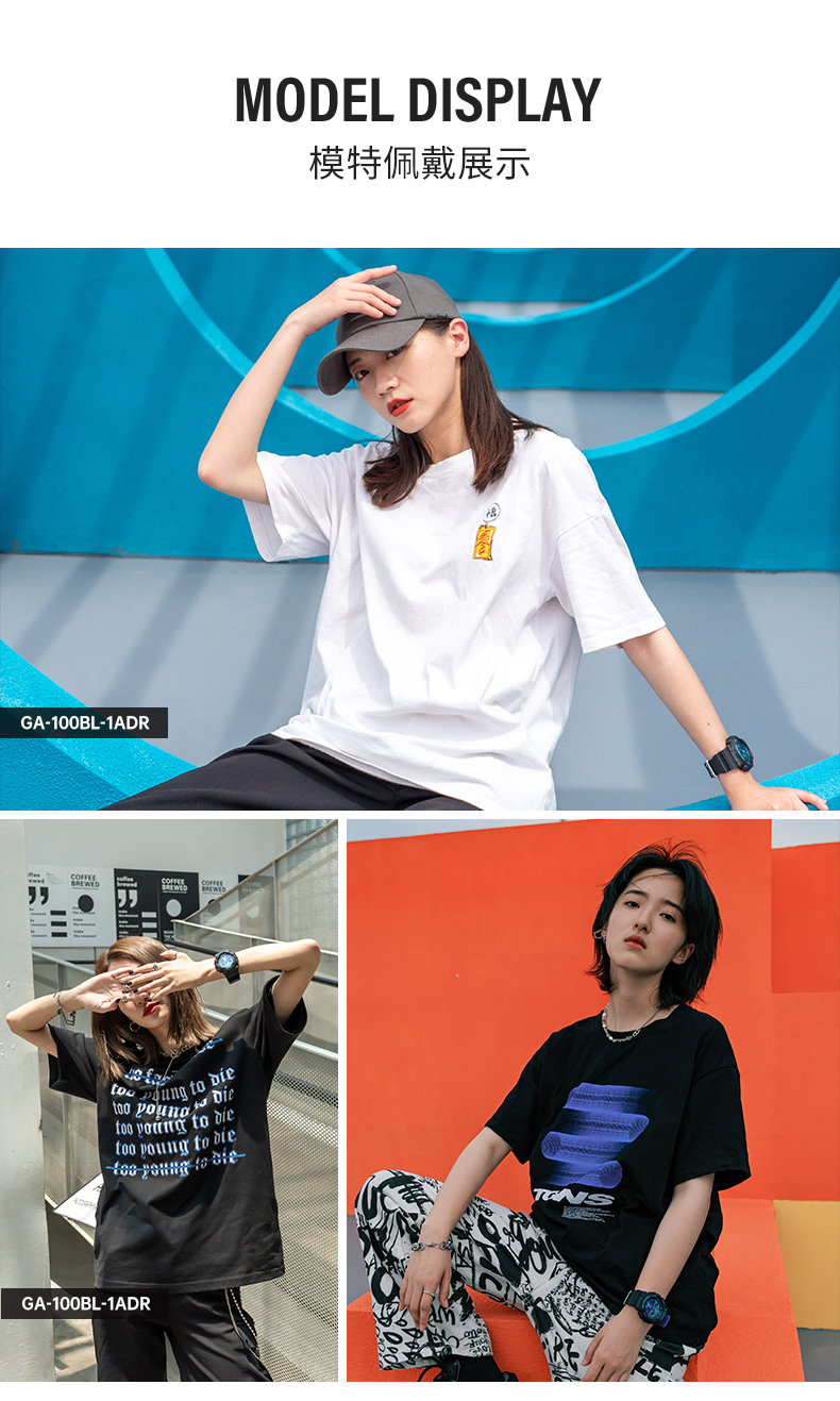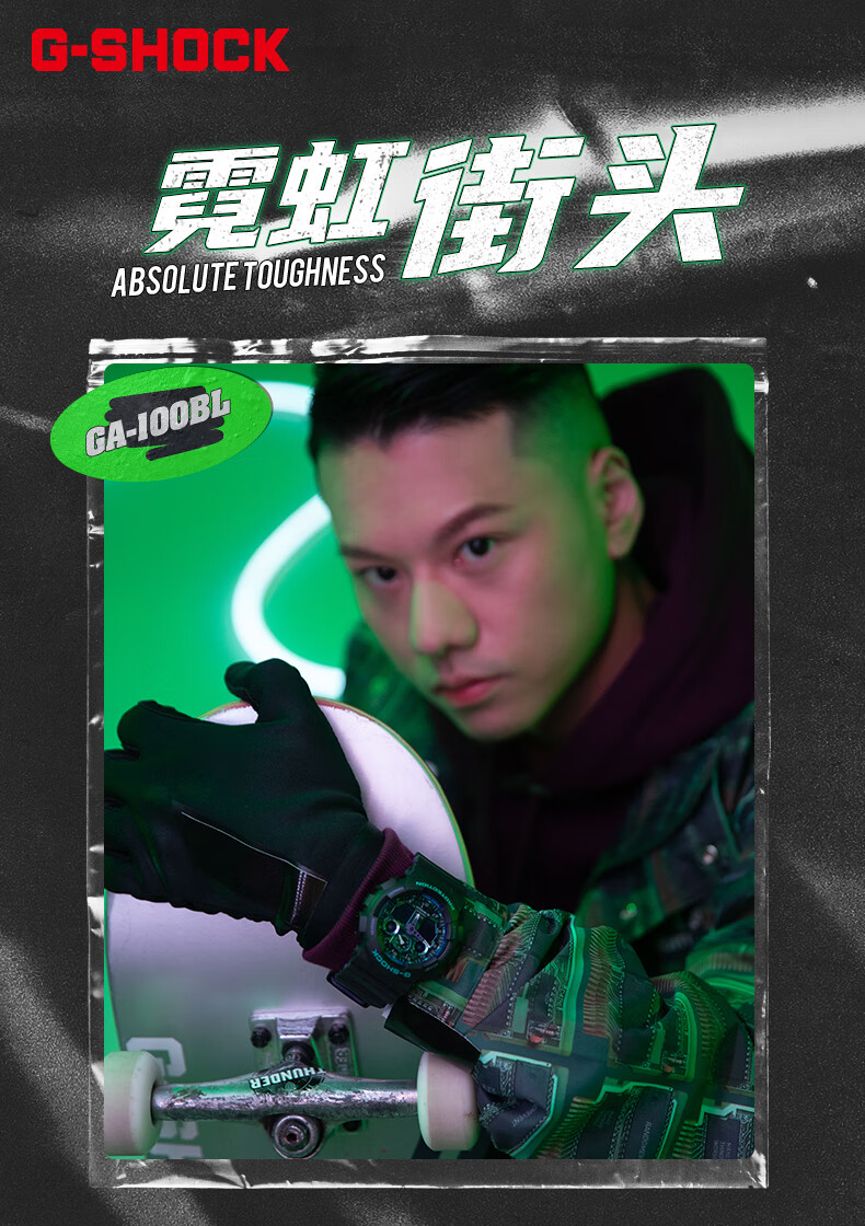 卡西欧(CASIO)G-SHOCK 海洋之心潮流炫色运动双显男表 霓彩武士 GA-100BL-1ADR