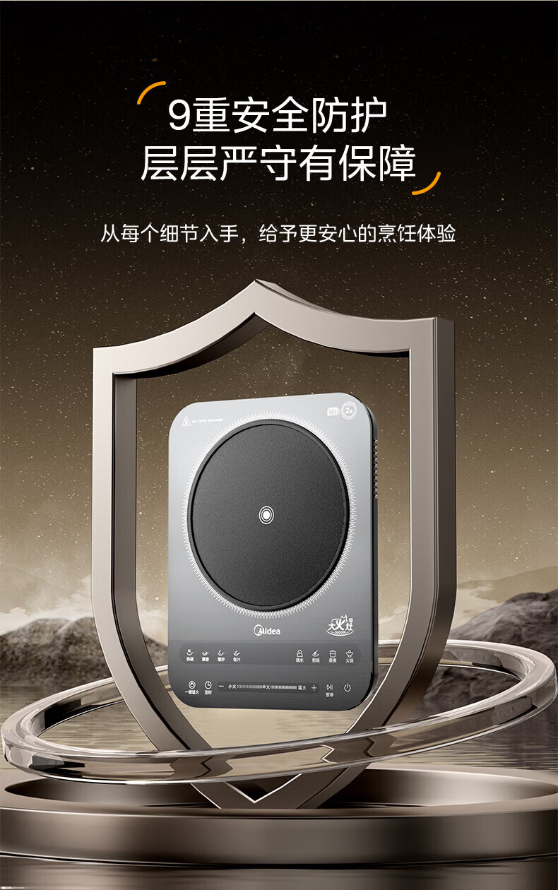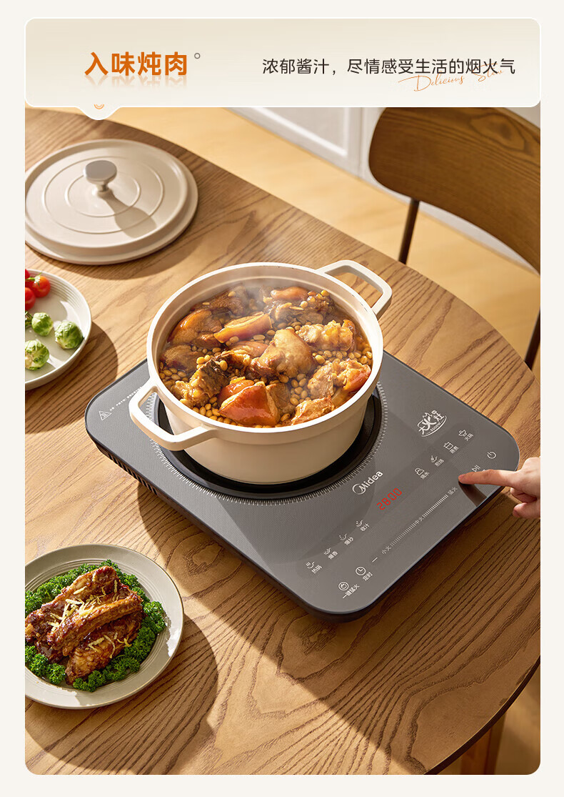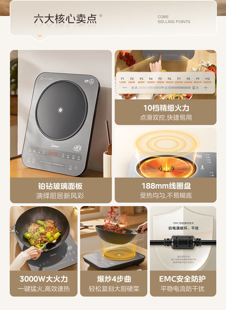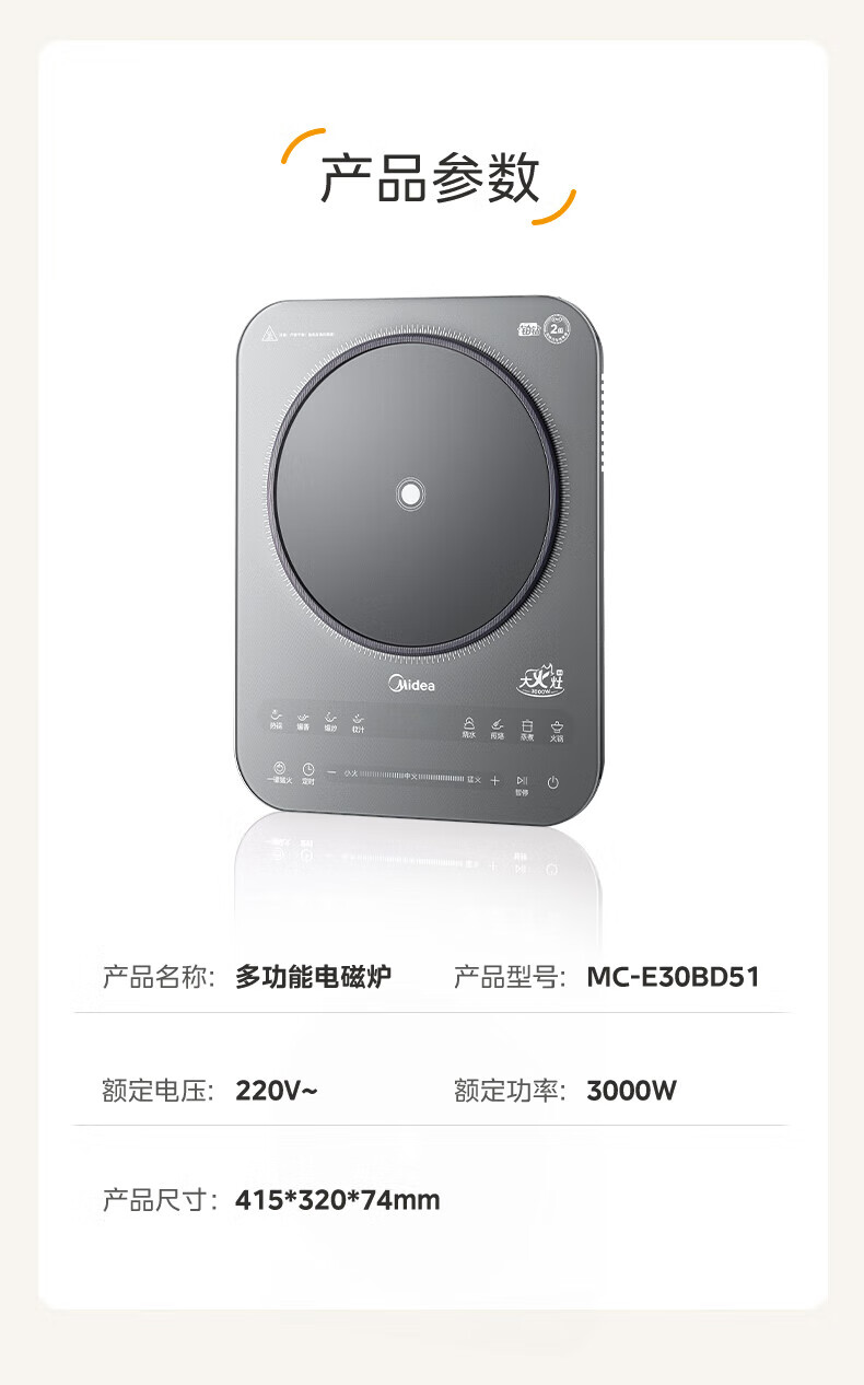 美的(Midea)电磁炉3000W大功率家用铂钻系列电陶炉猛火爆炒电磁灶火锅炉定时一件猛火电池炉防水面板 【单灶】3000W防刮易洁