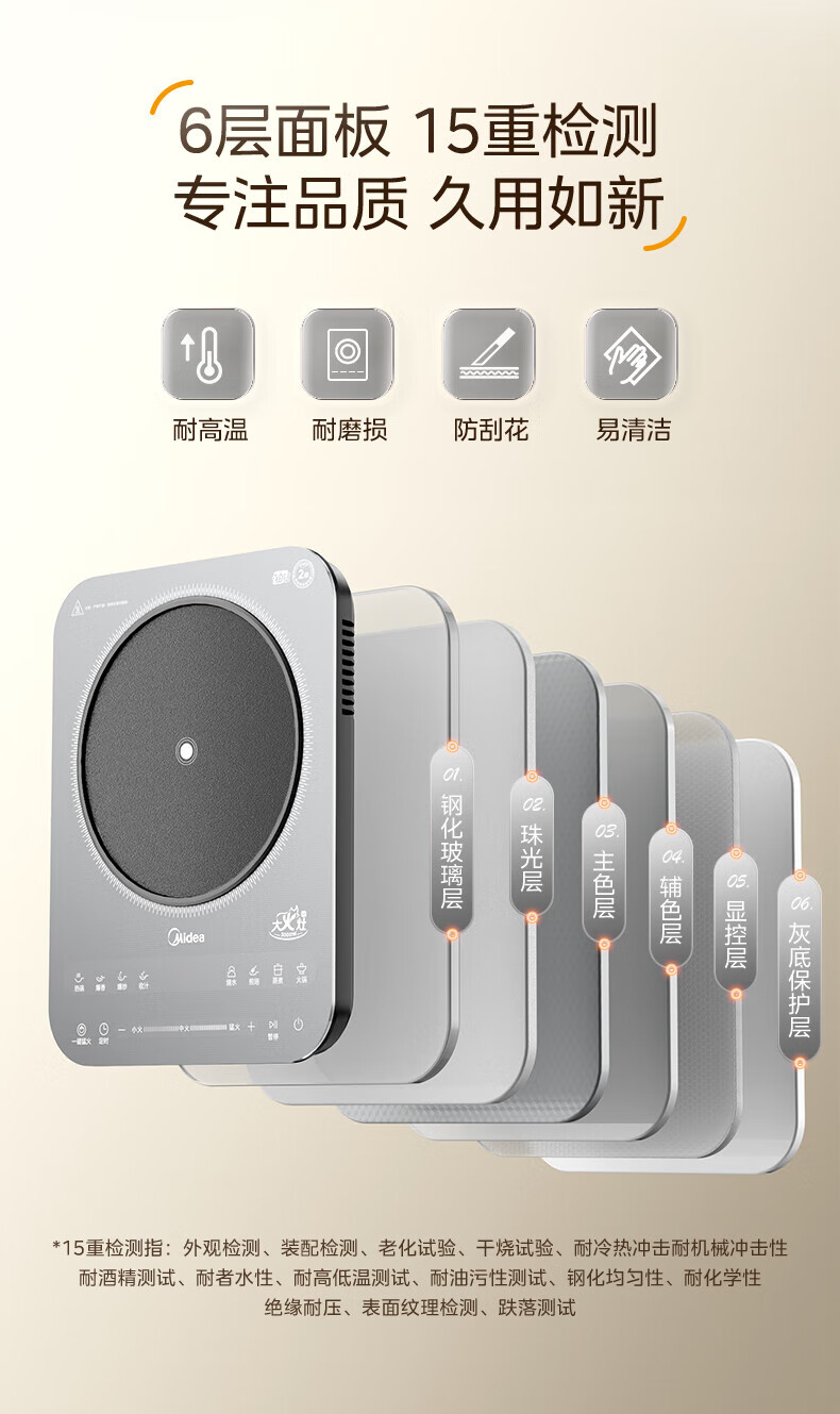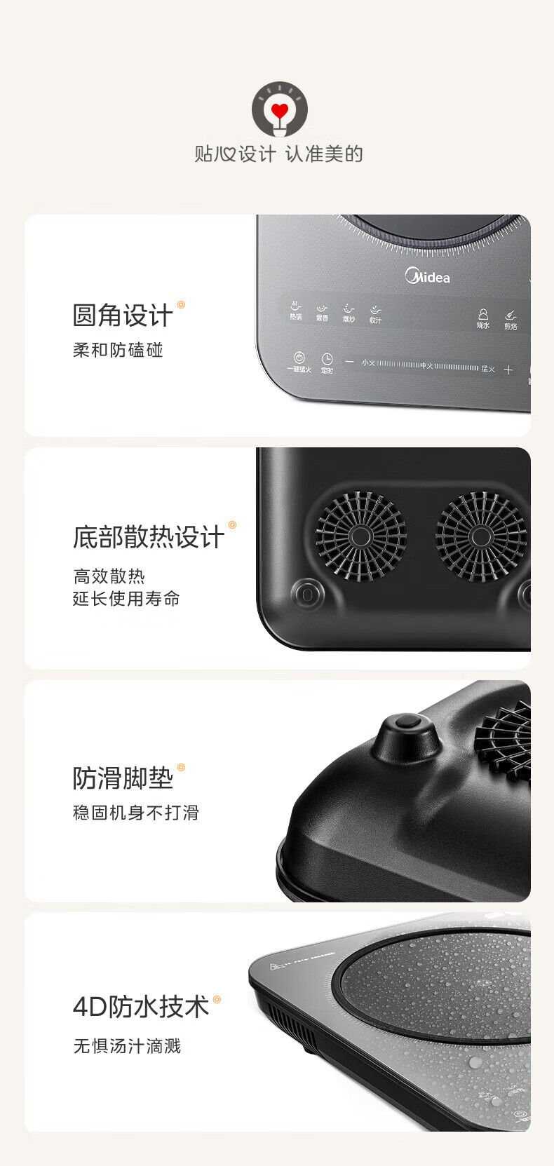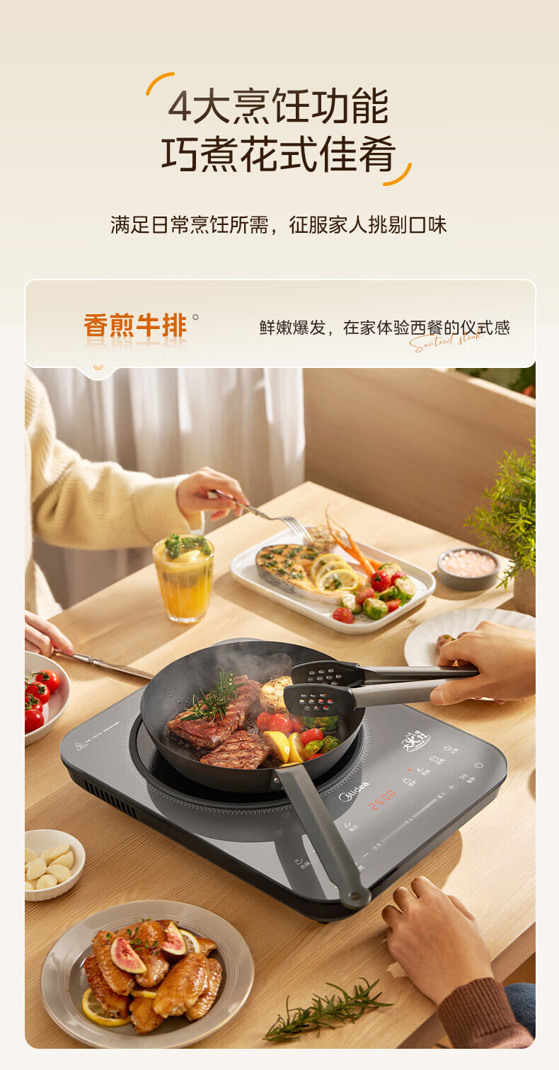 美的(Midea)电磁炉3000W大功率家用铂钻系列电陶炉猛火爆炒电磁灶火锅炉定时一件猛火电池炉防水面板 【单灶】3000W防刮易洁