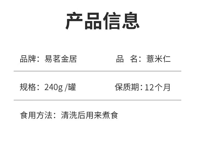 易茗金居薏仁米 杂粮贵州薏仁米薏米东北杂粮小粒薏苡仁薏仁米 2罐*240g