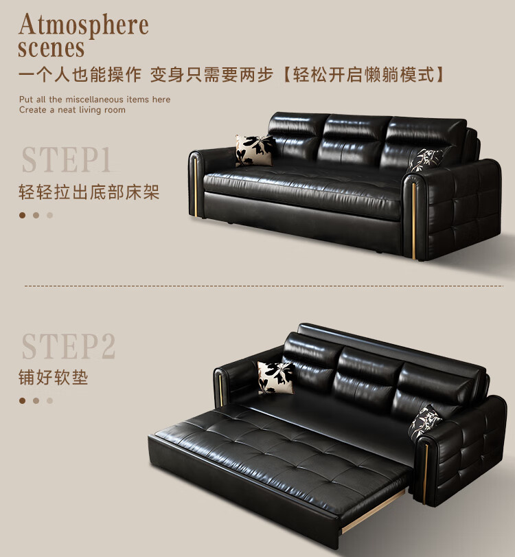 莘联可伸缩折叠沙发床两用一体小户型客厅家用广东佛山高端油蜡皮沙发 外径:1.4m(无储物)S+级油蜡皮 高弹海绵款(软硬适中)