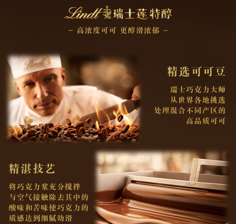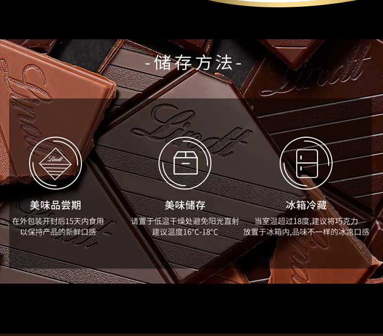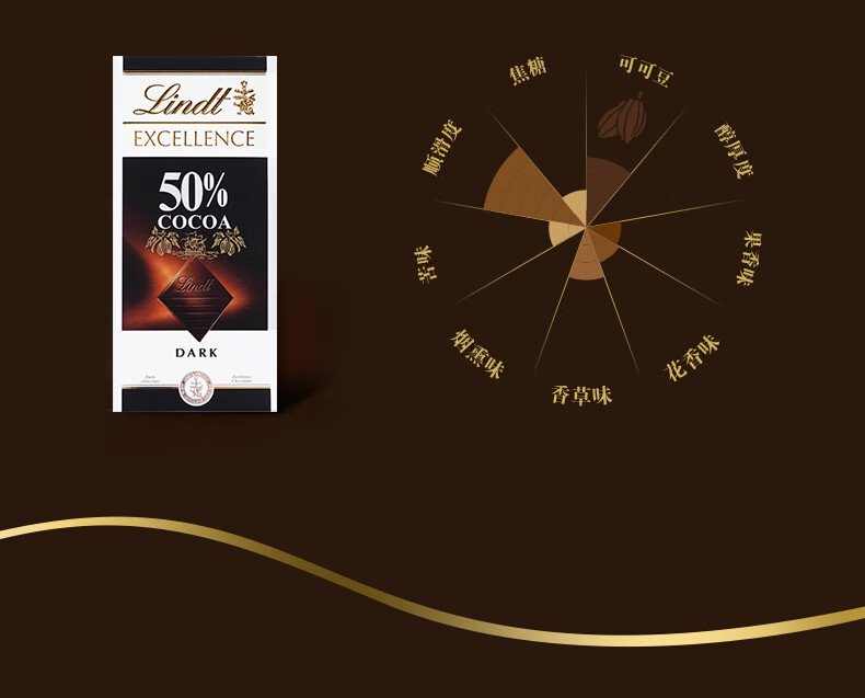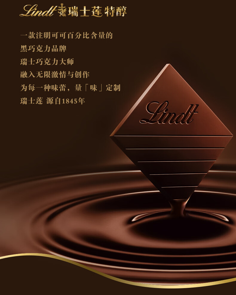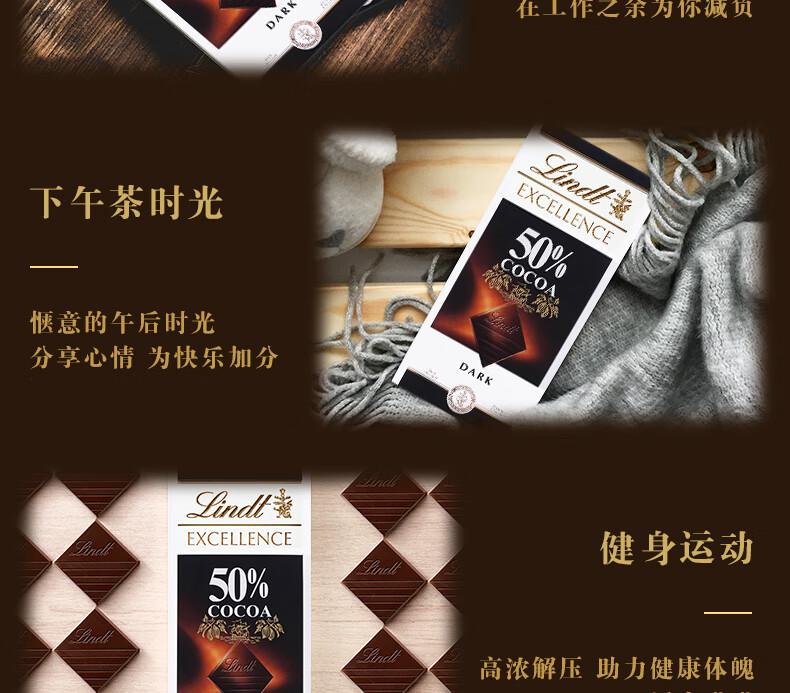 瑞士莲(Lindt)50%可可黑巧克力特醇排装100g进口零食生日伴手礼【临期清仓】
