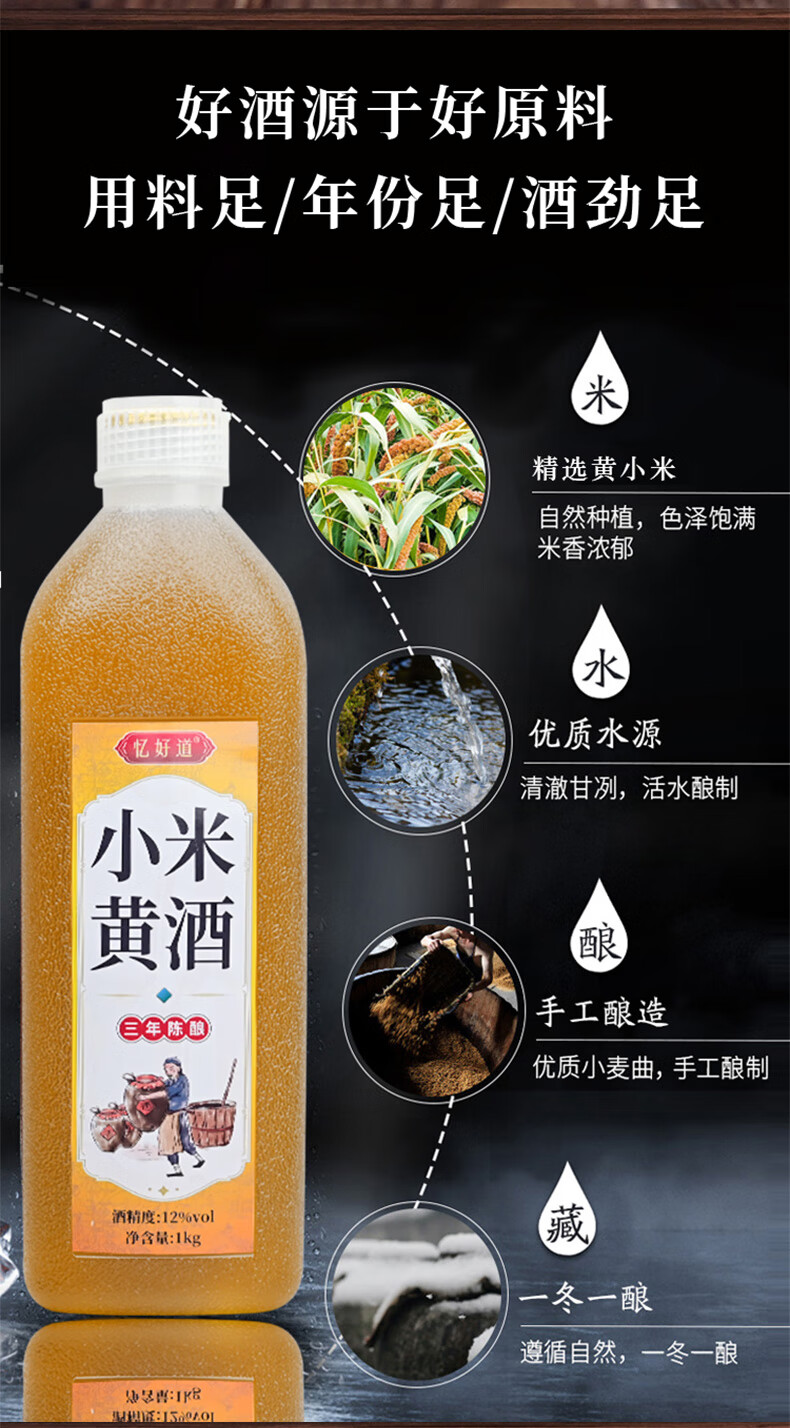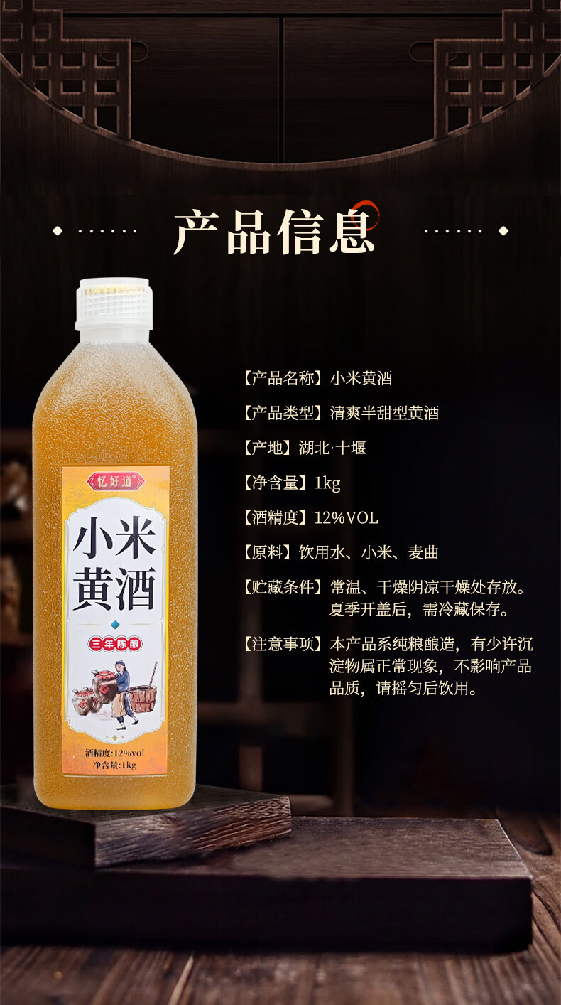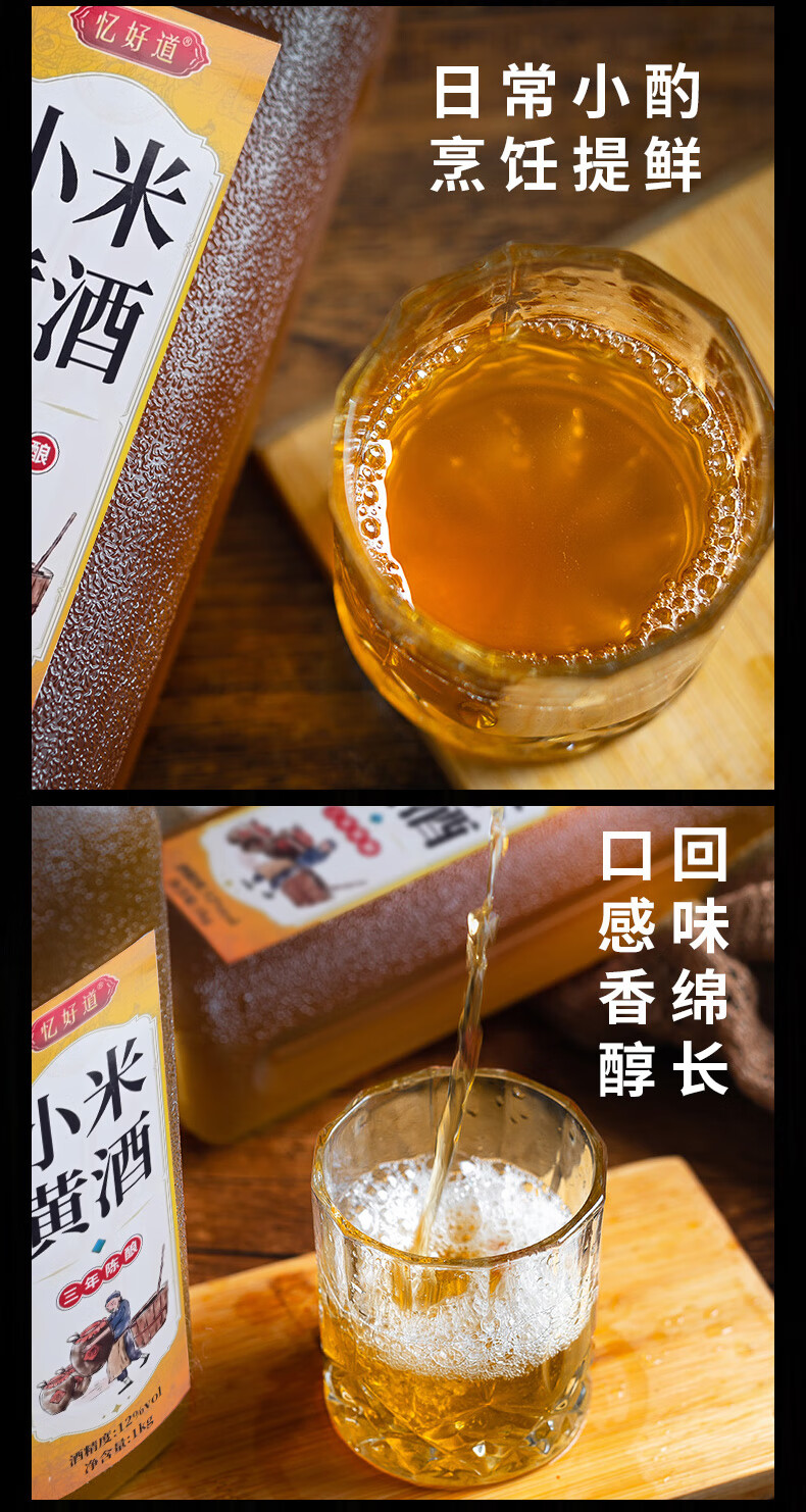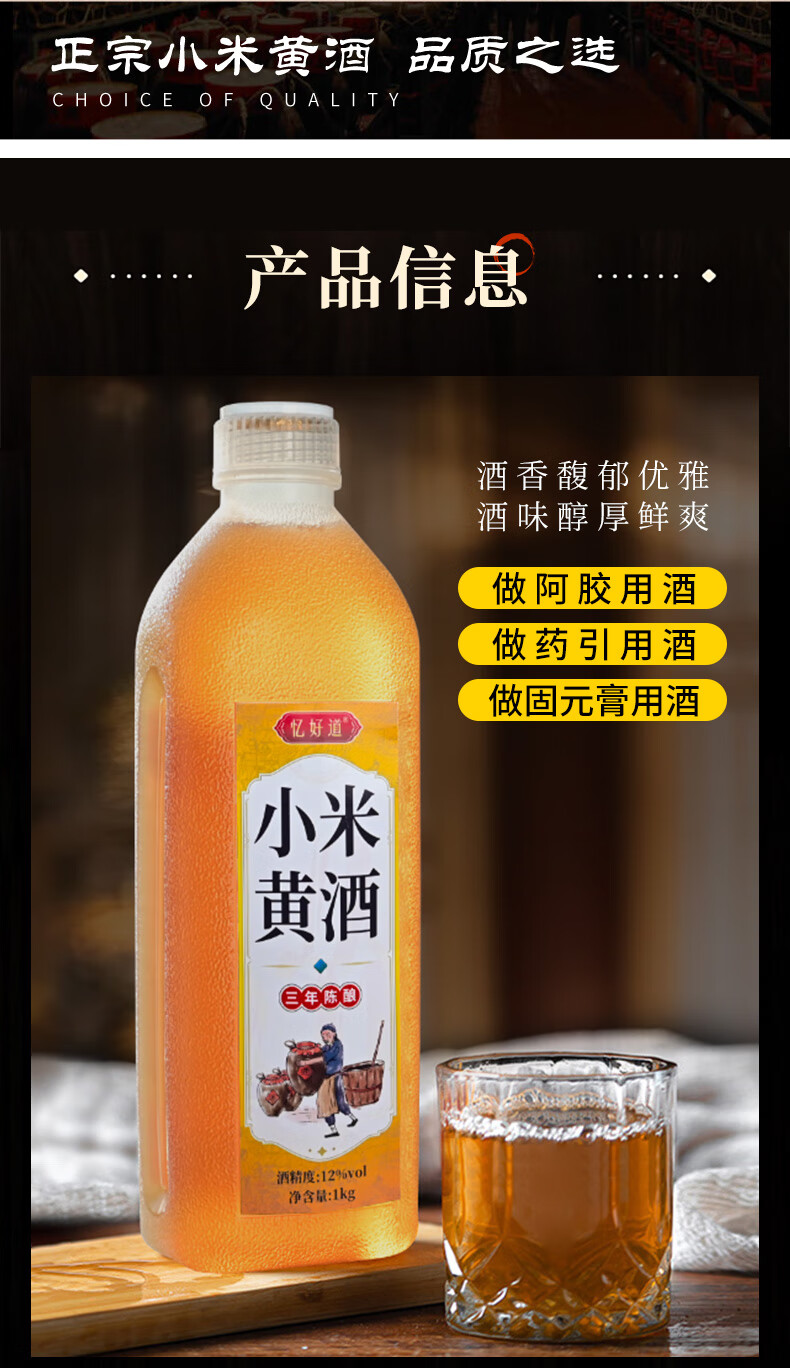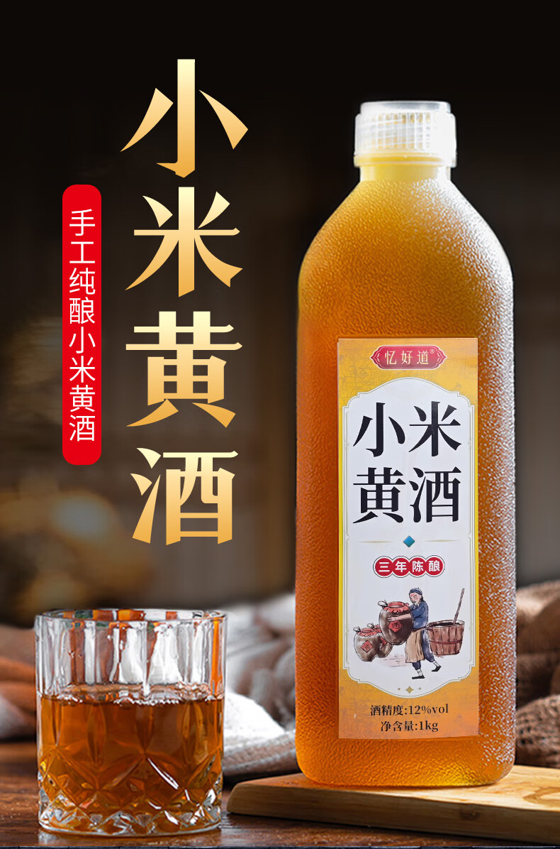 忆好道 小米黄酒 泡阿胶糕专用黄酒 半甜型 三年陈酿 12度1L装