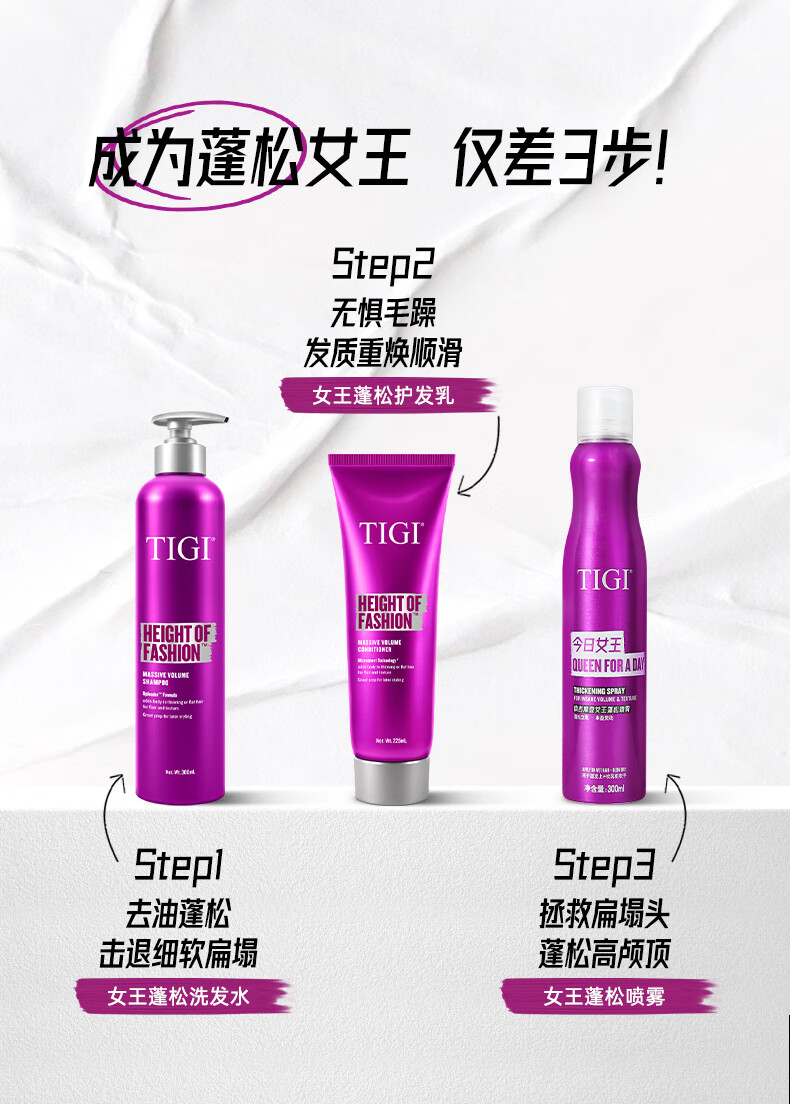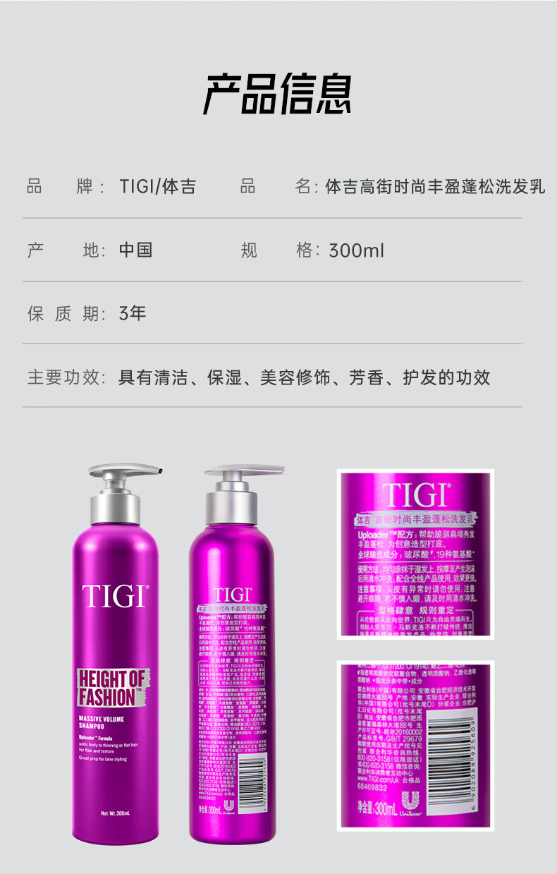 TIGI丰盈蓬松控油洗发水100ml 持久留香去油高颅顶氨基酸配方莓果香味