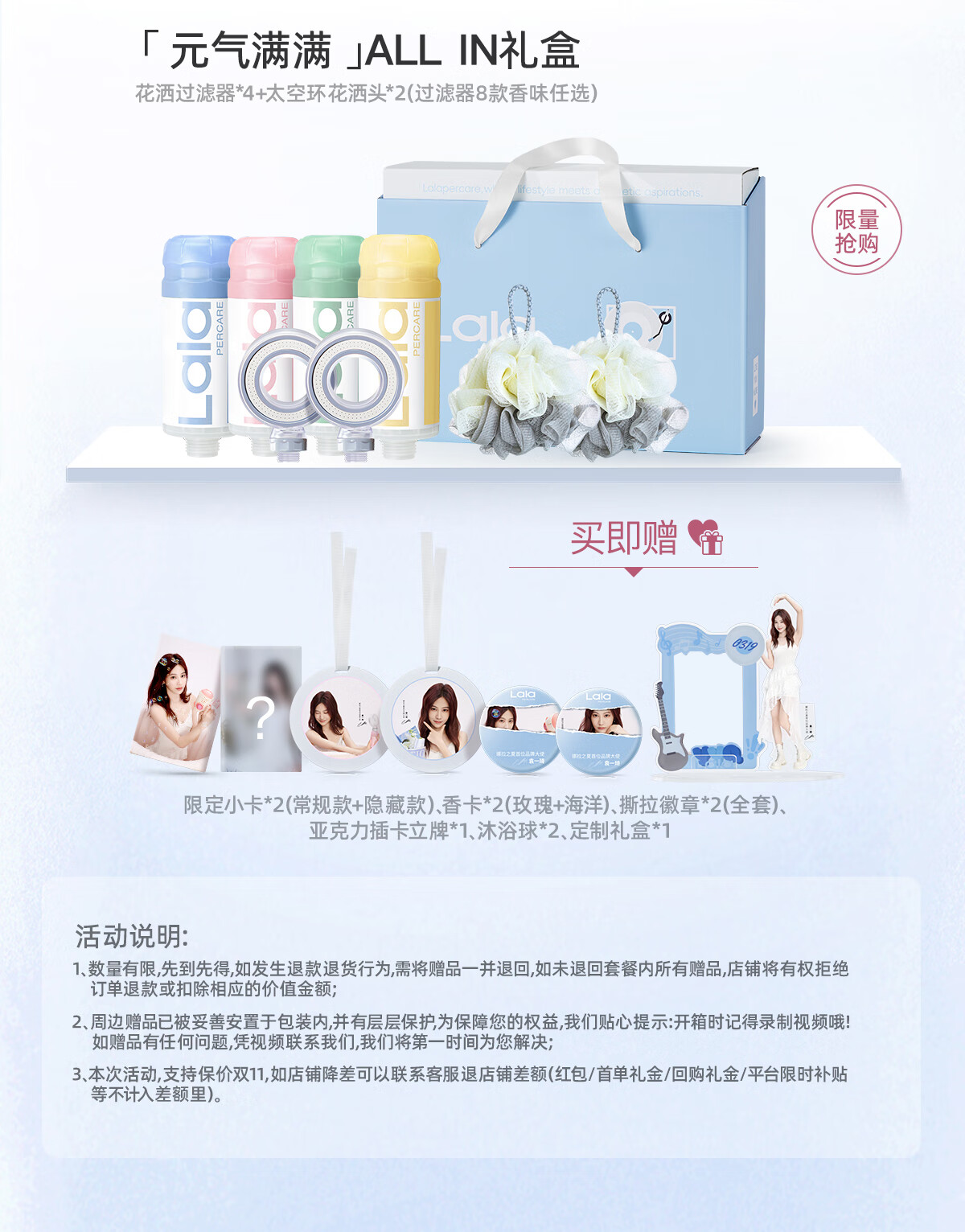 娜拉之夏(LALAPERCARE)袁一琦专属「元气满满」ALL IN礼盒净水养肤香氛过滤除氯花洒套组 「元气满满」玫瑰+海洋+牛奶+森林+太空环花洒*2