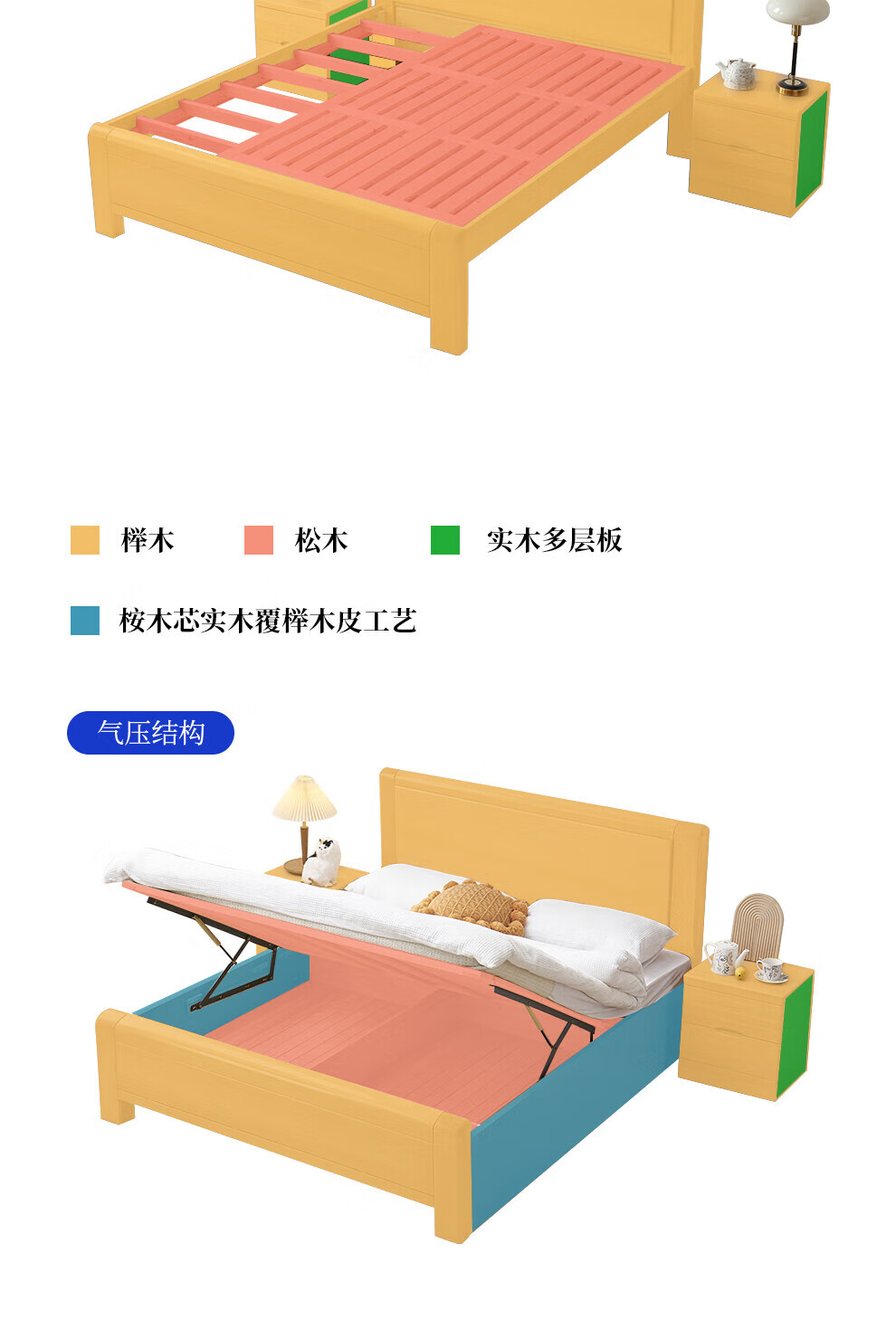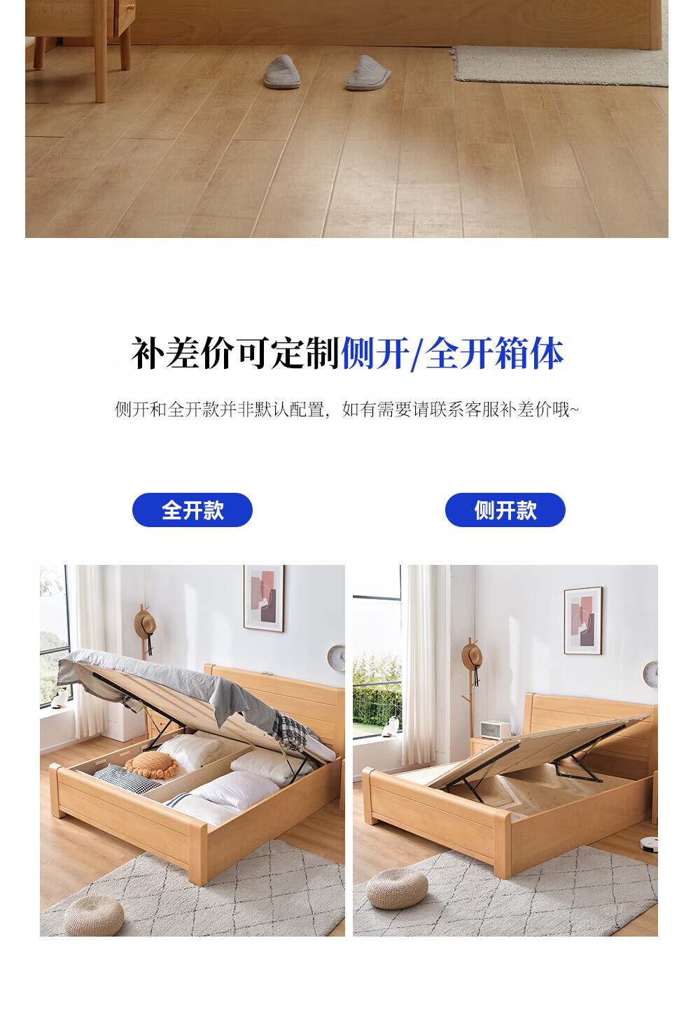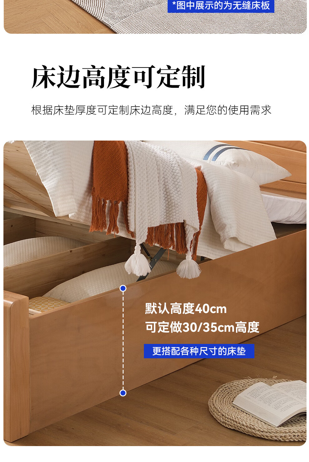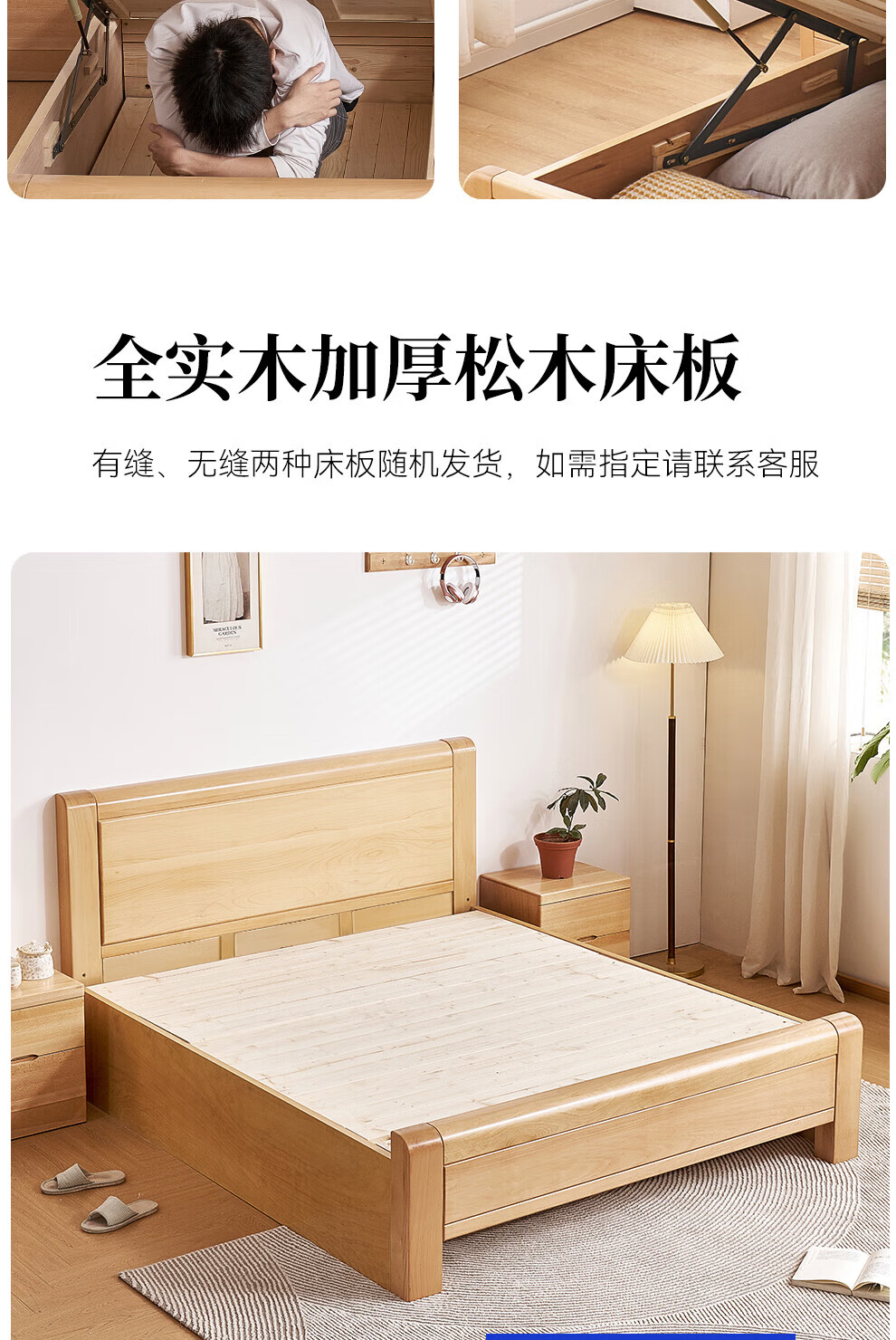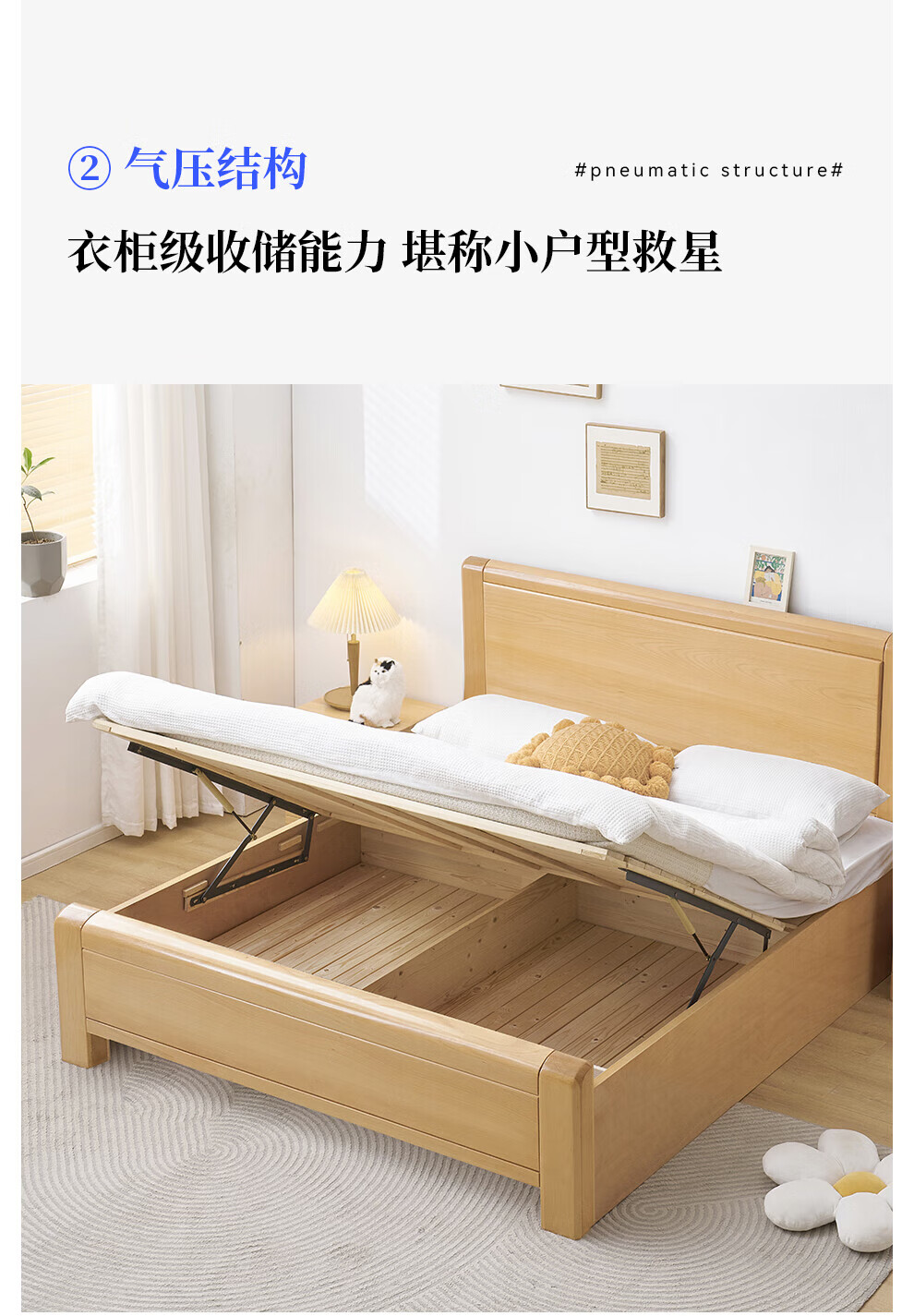 木创加厚款北欧简约风全实木床主卧室双人床榉木床婚床气压结构可储物 单床:包送货上楼和安装 1.5*2.0米 框架款+榉木床板