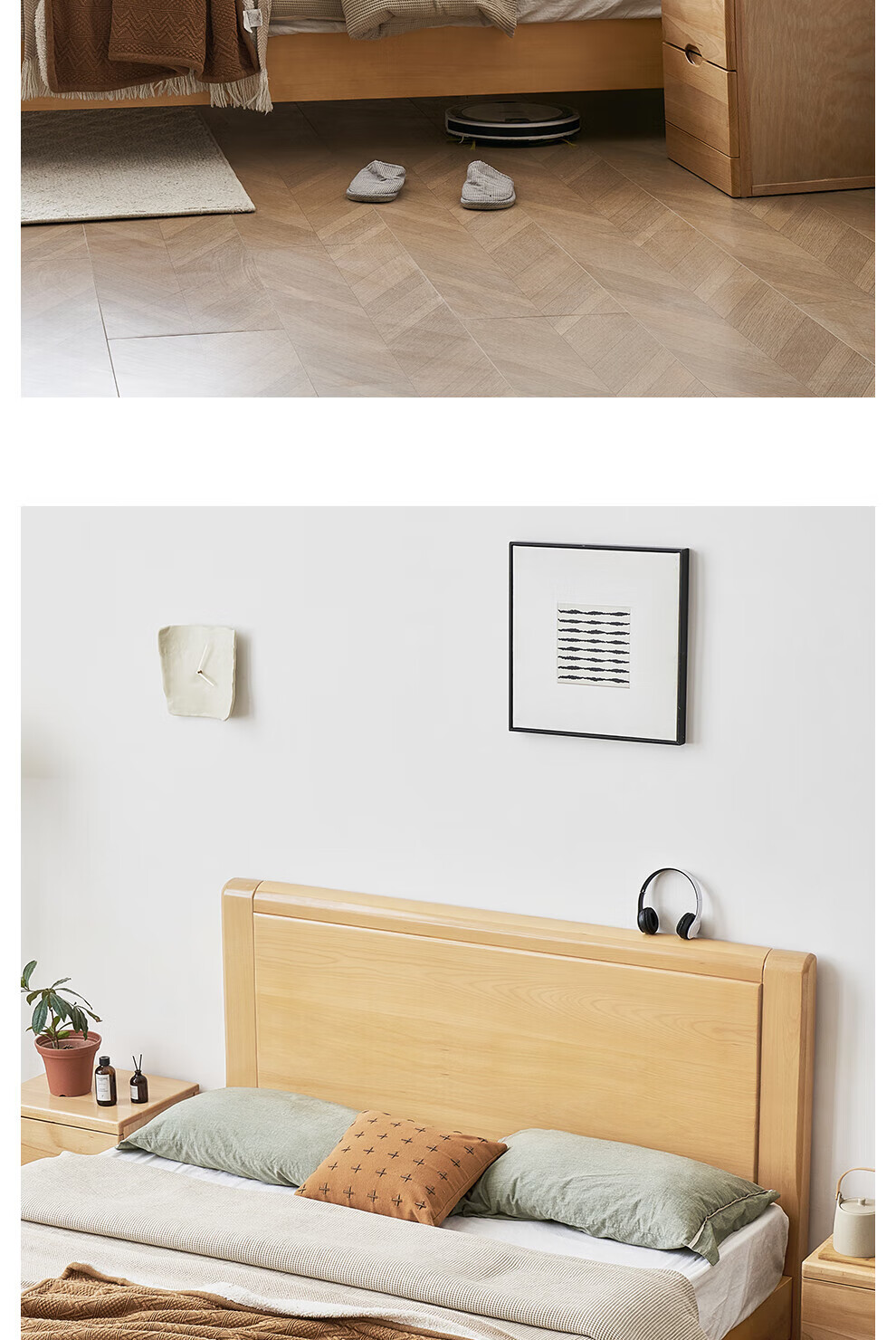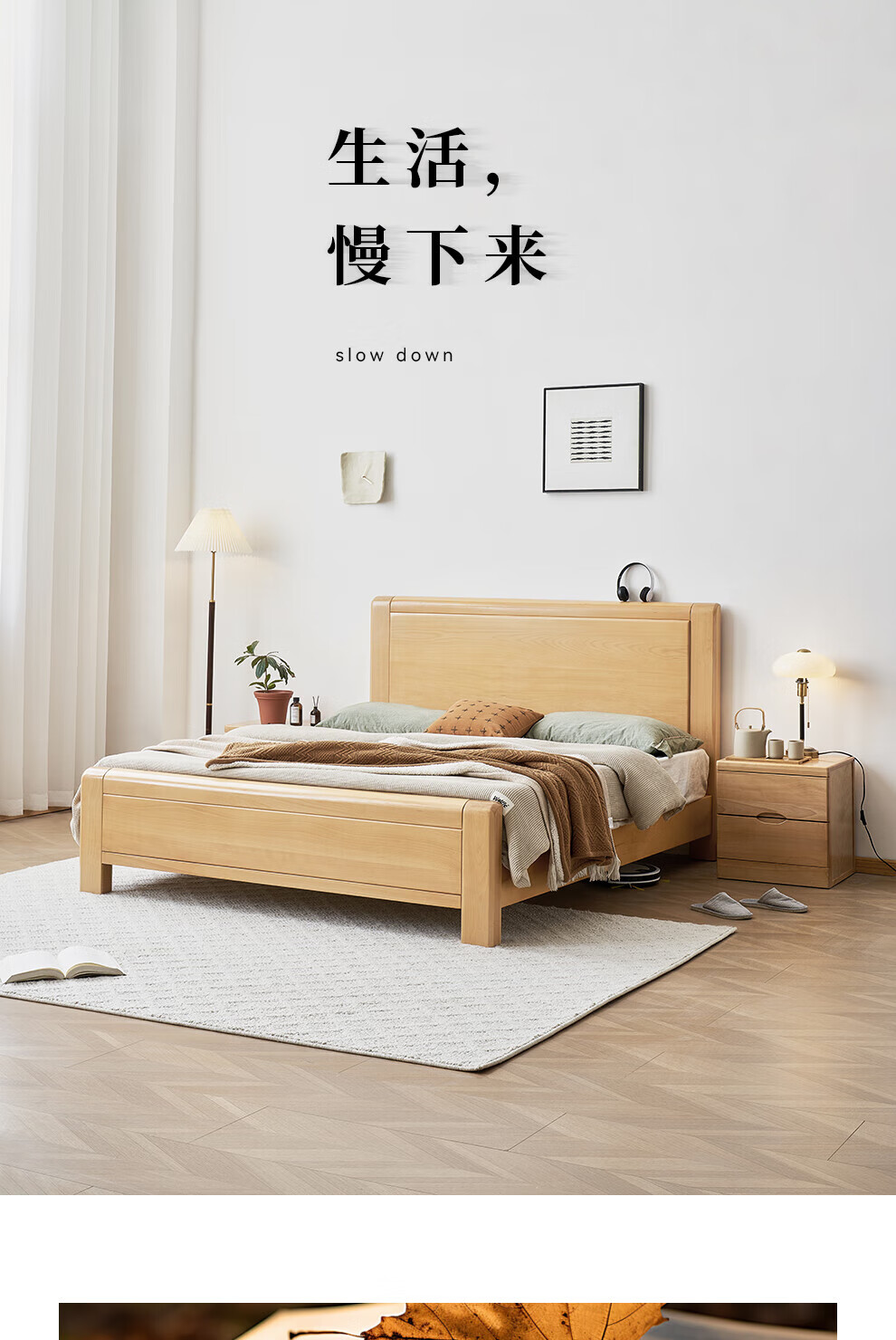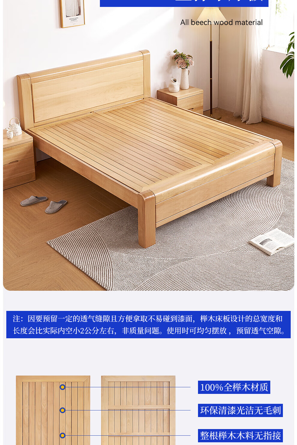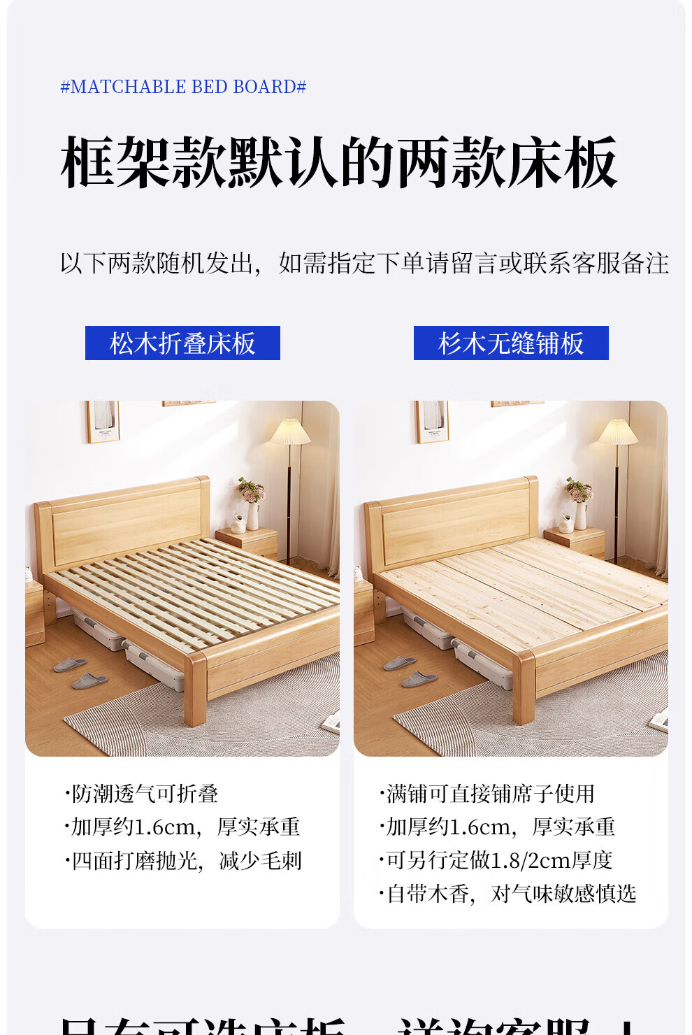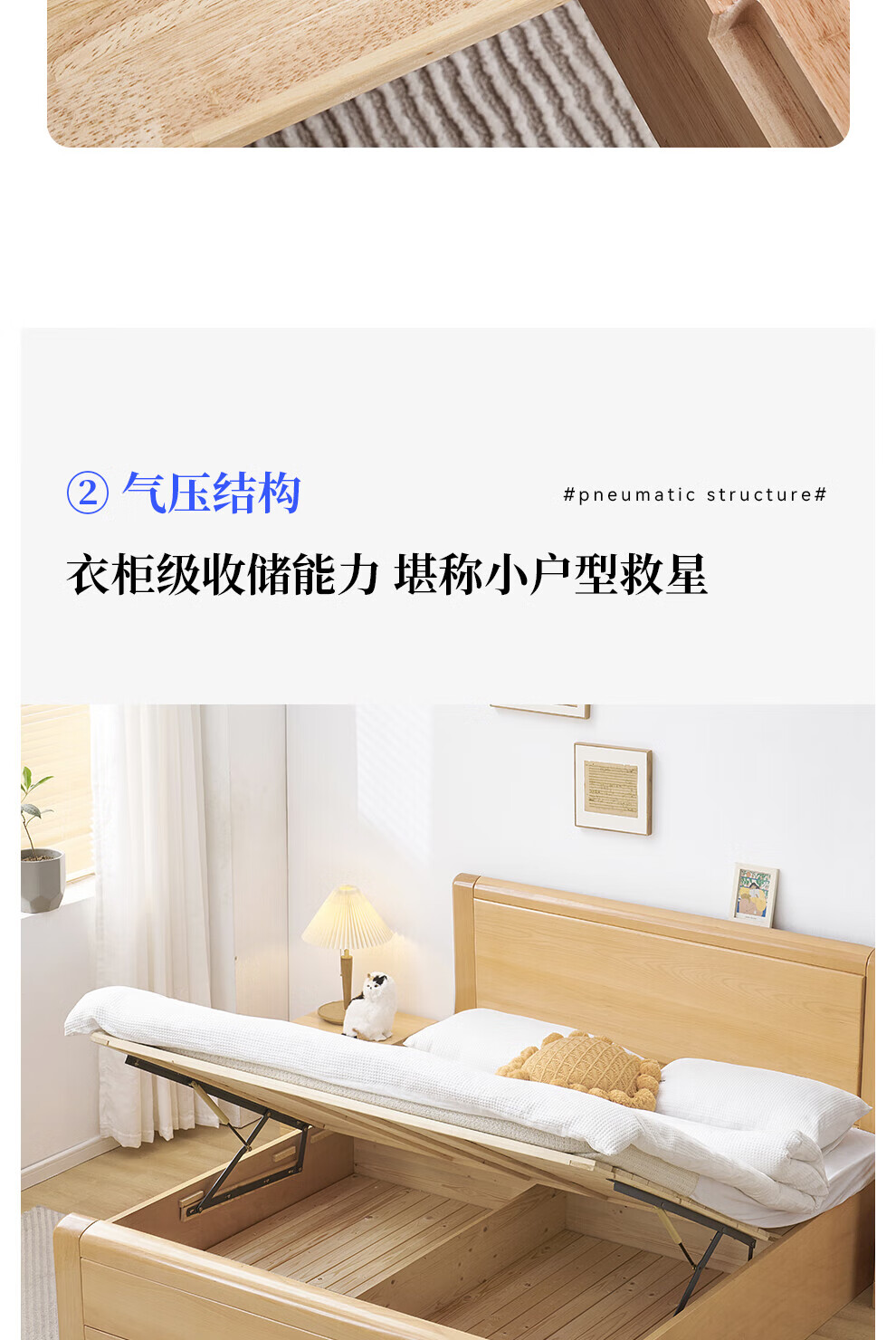 木创加厚款北欧简约风全实木床主卧室双人床榉木床婚床气压结构可储物 单床:包送货上楼和安装 1.5*2.0米 框架款+榉木床板