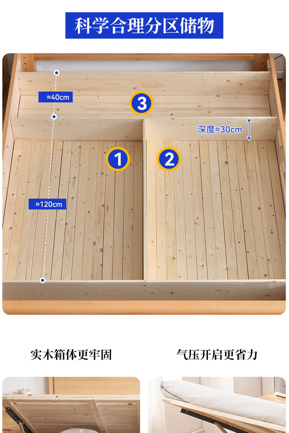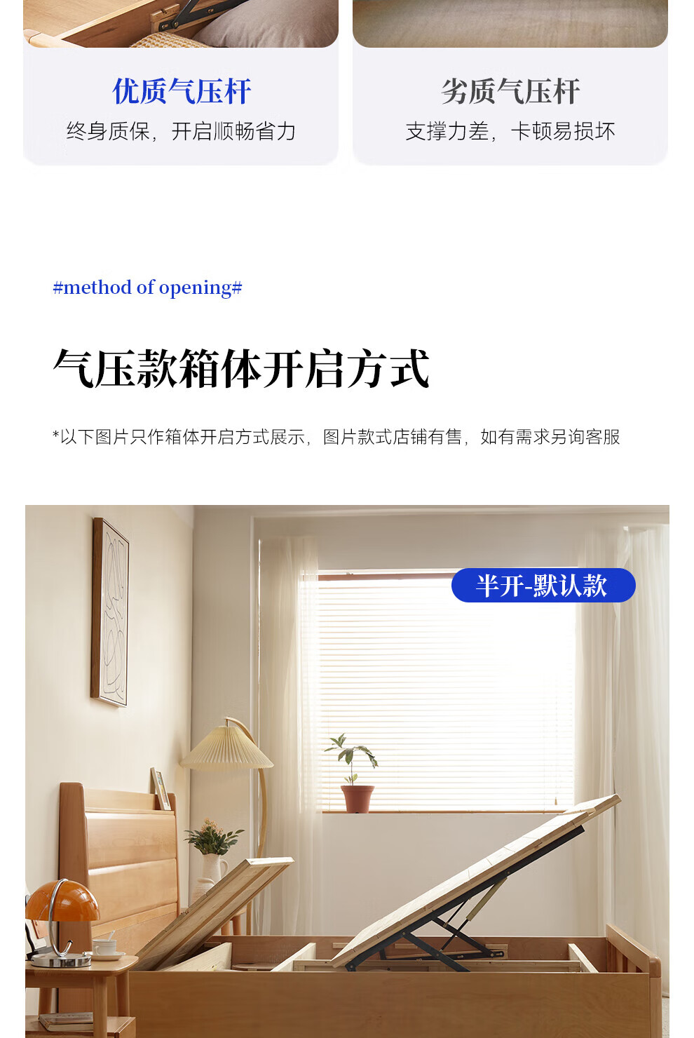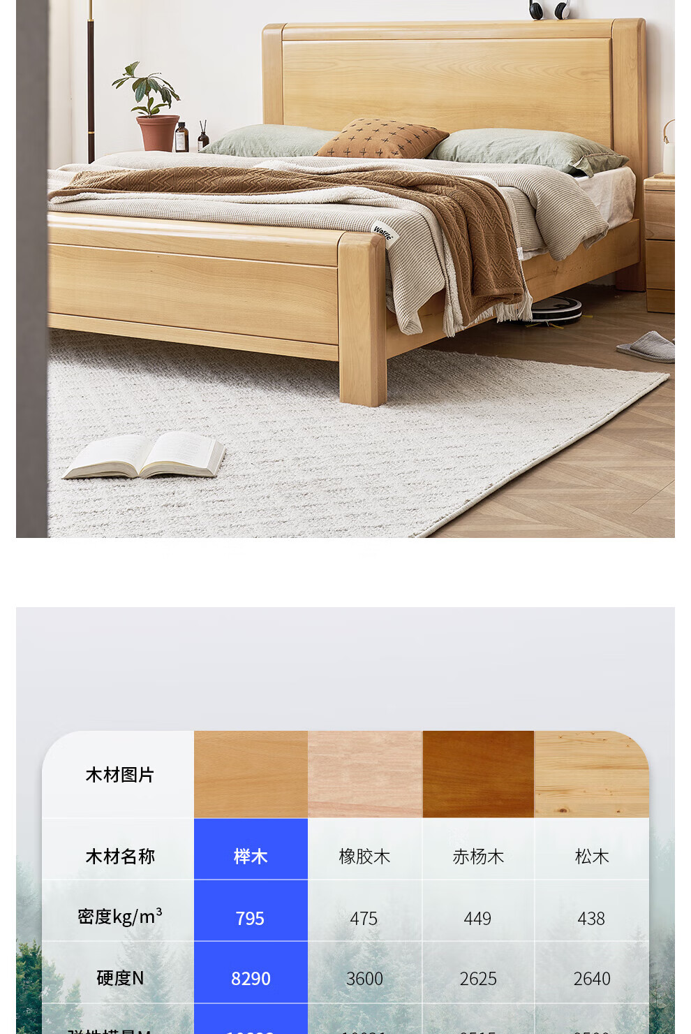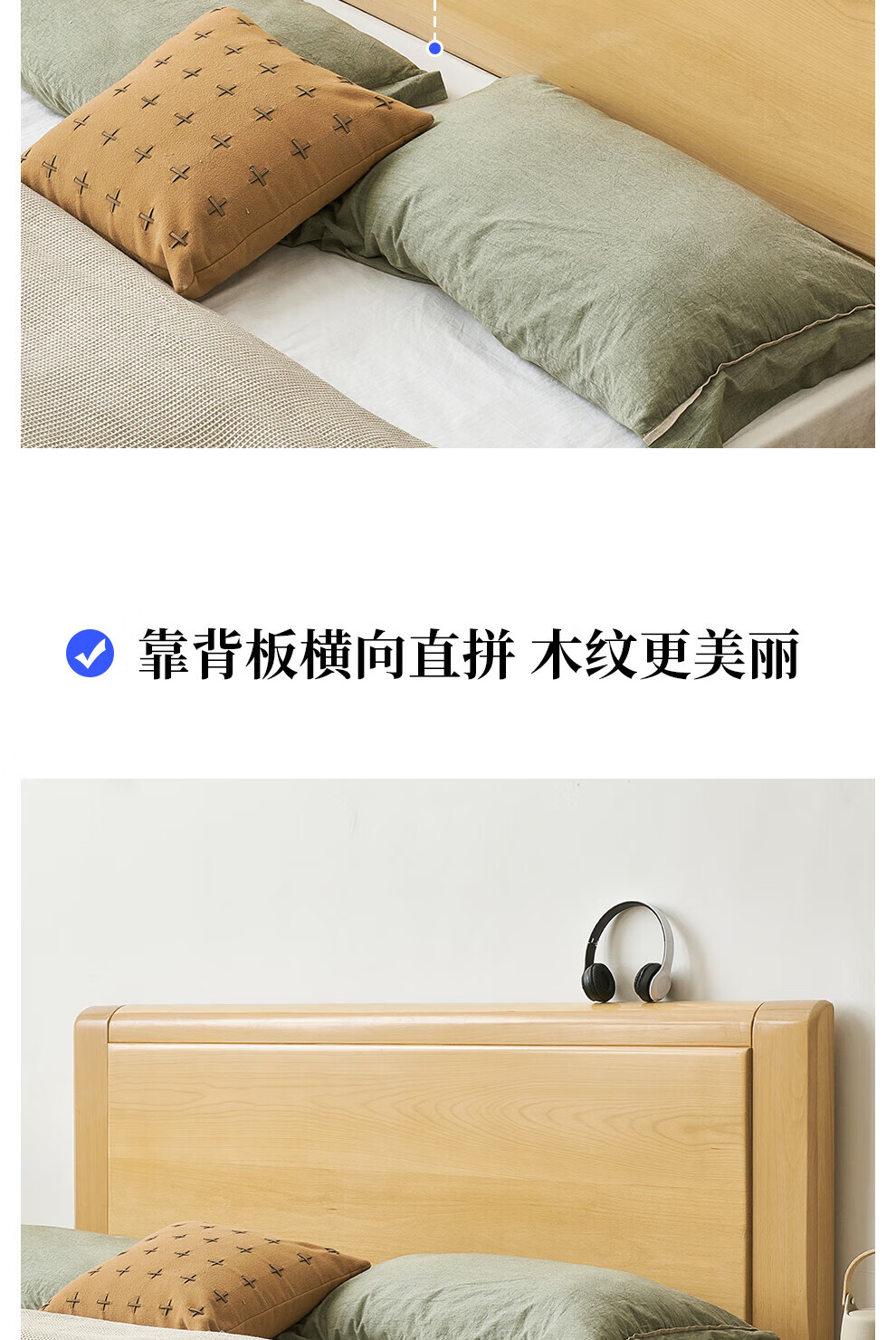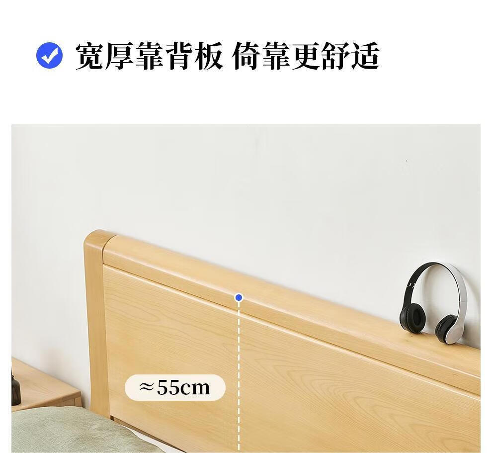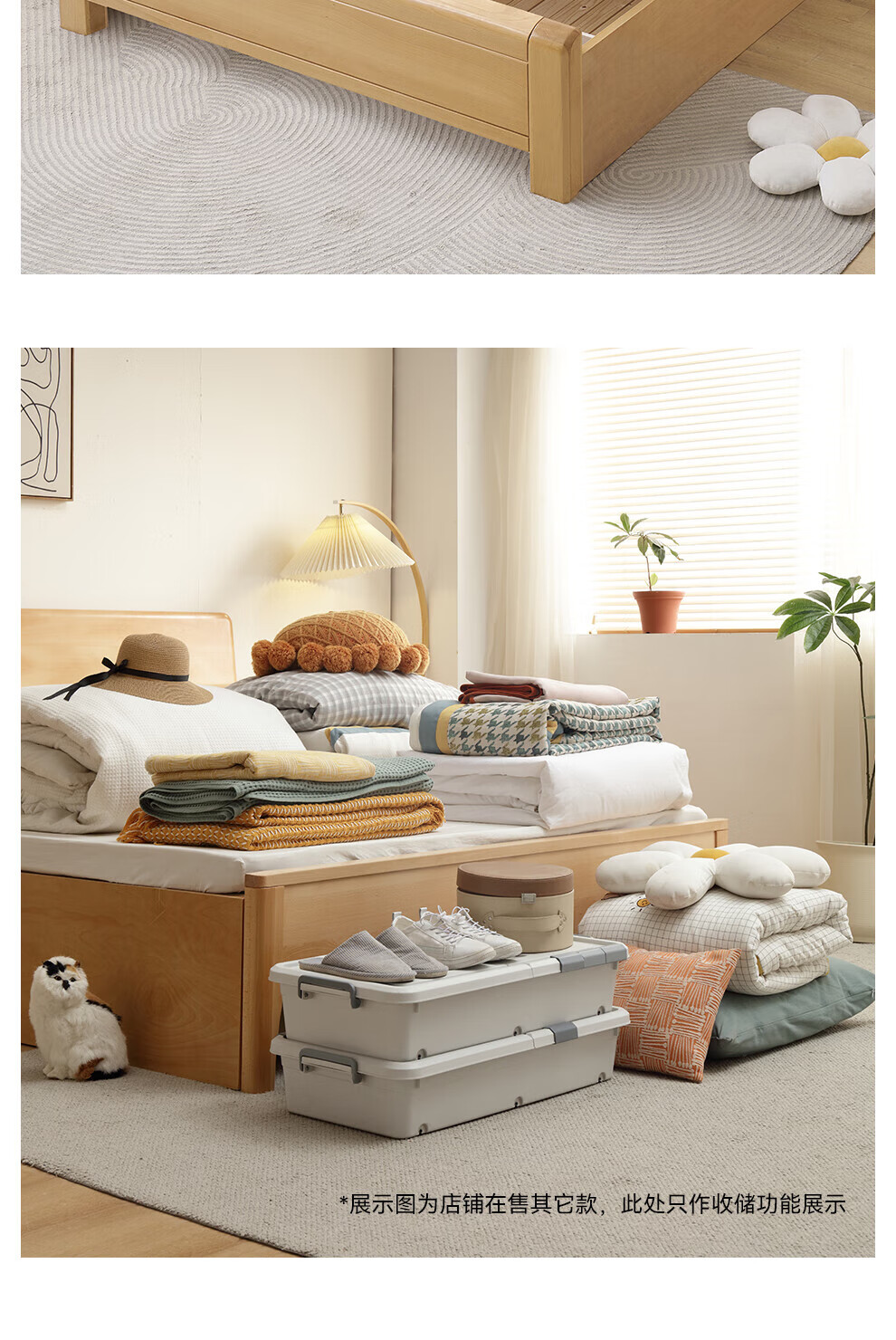 木创加厚款北欧简约风全实木床主卧室双人床榉木床婚床气压结构可储物 单床:包送货上楼和安装 1.5*2.0米 框架款+榉木床板