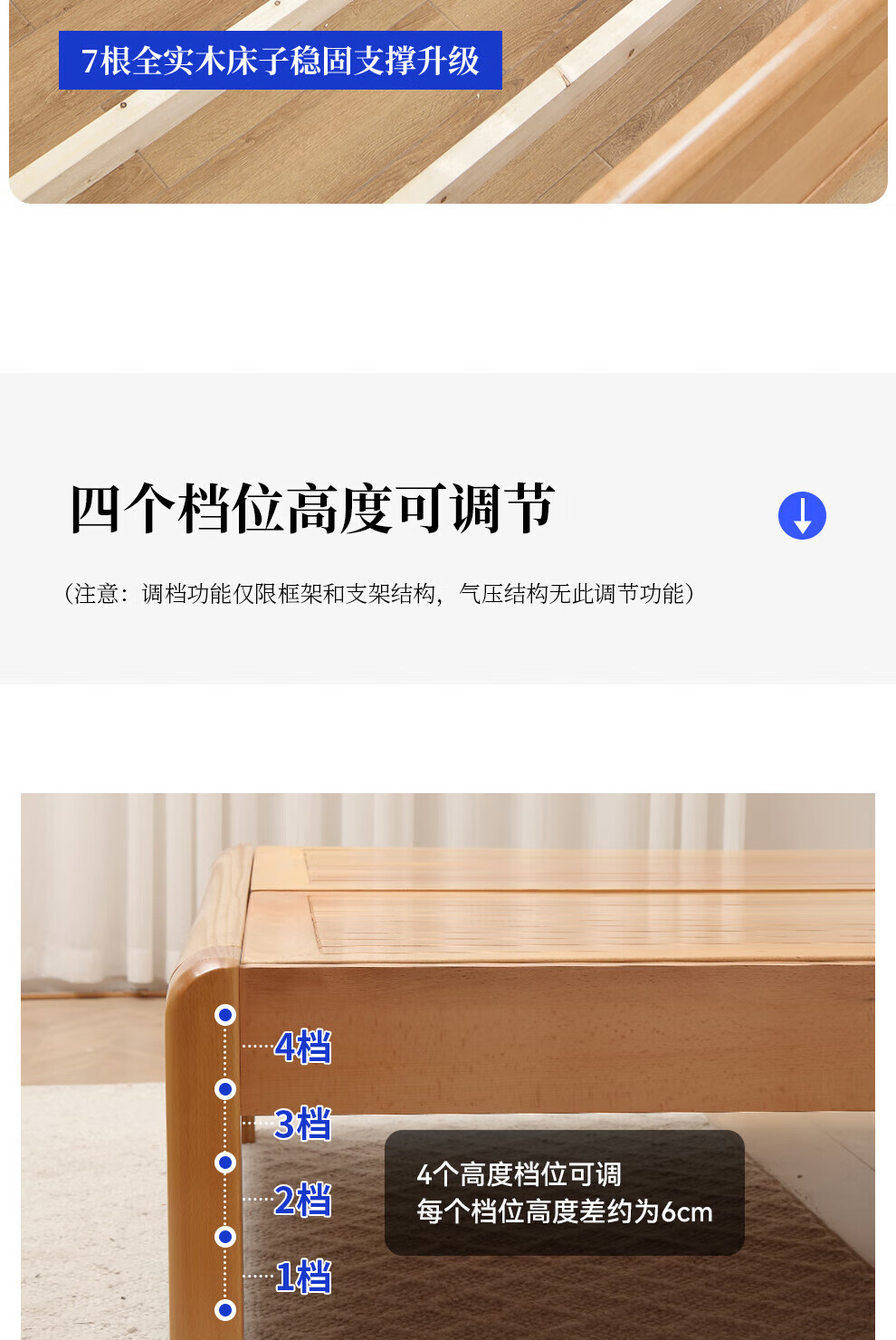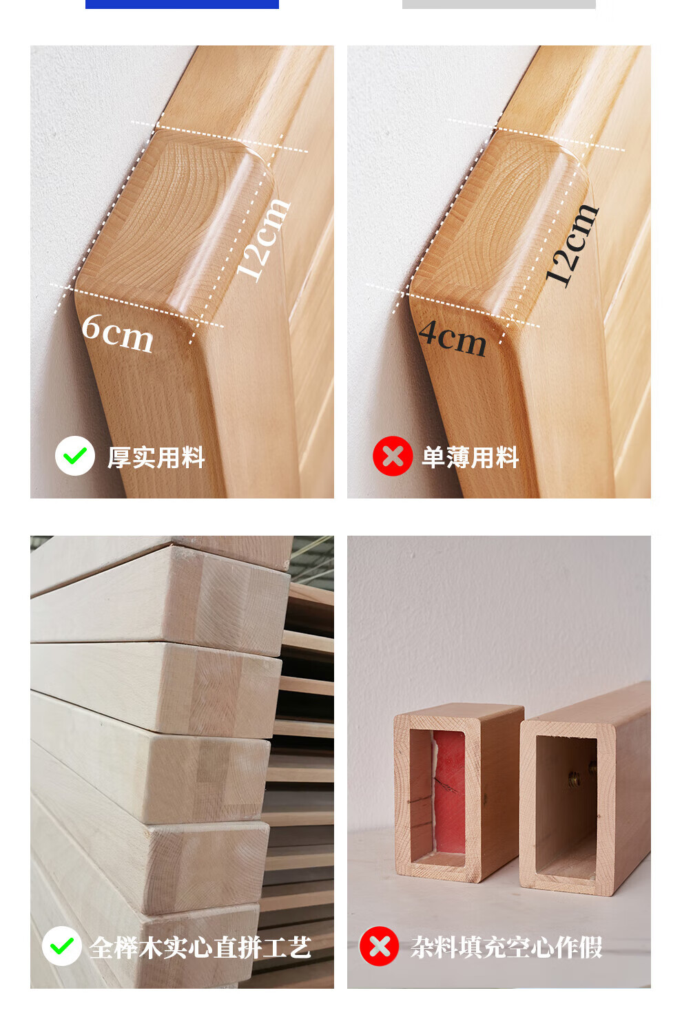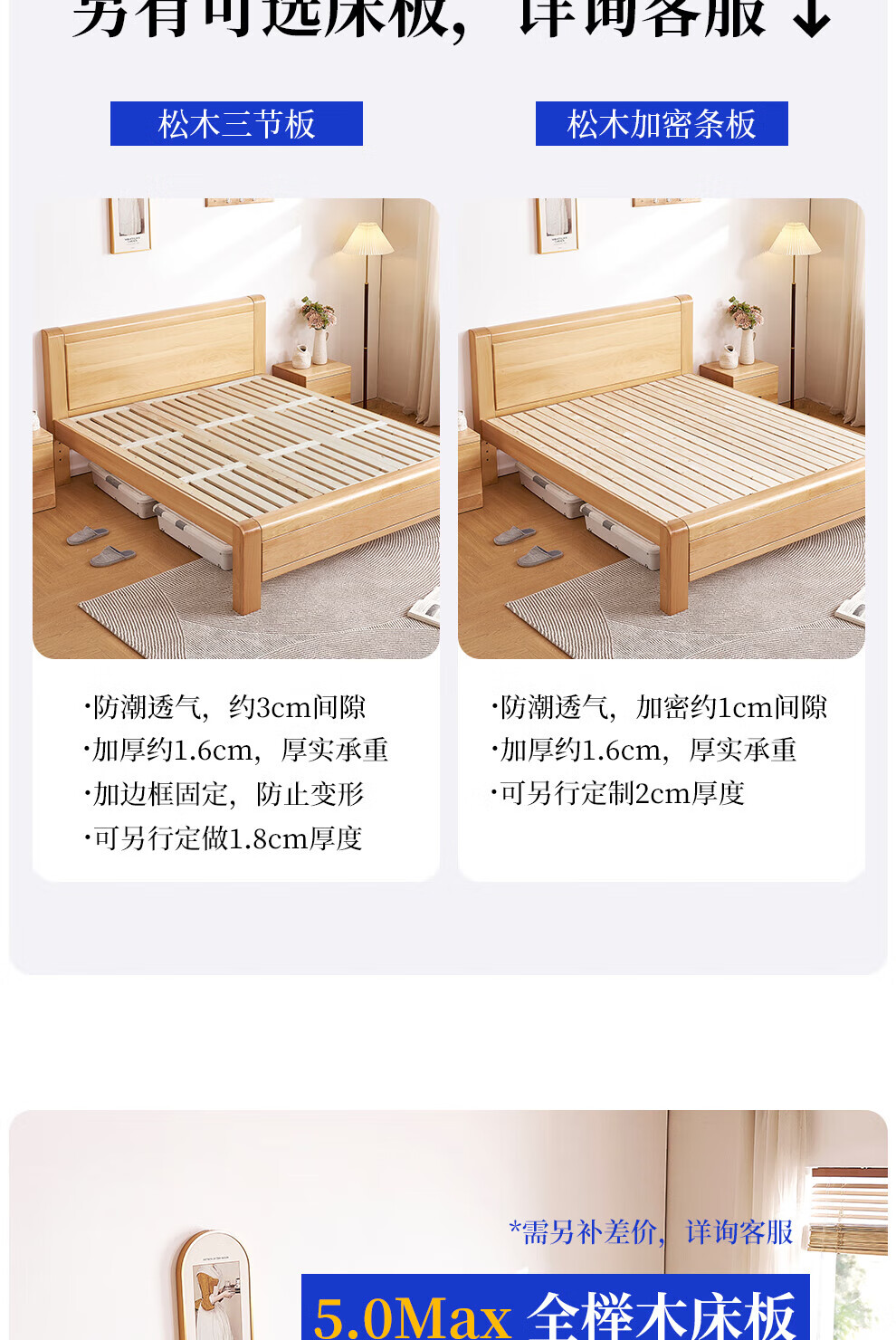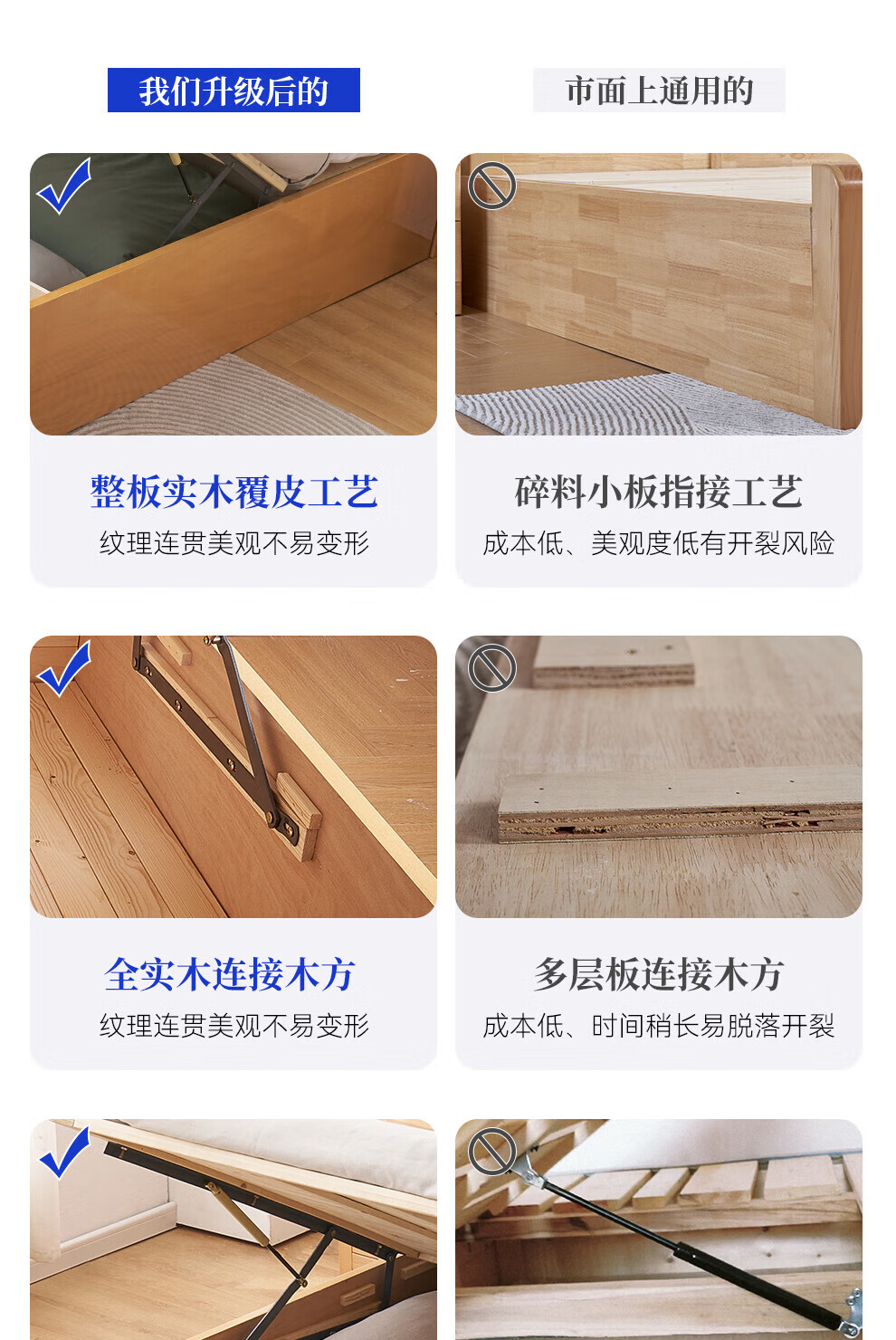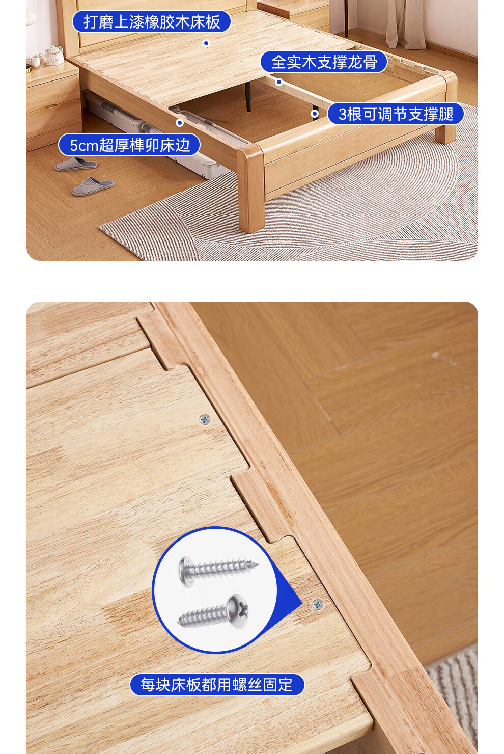 木创加厚款北欧简约风全实木床主卧室双人床榉木床婚床气压结构可储物 单床:包送货上楼和安装 1.5*2.0米 框架款+榉木床板