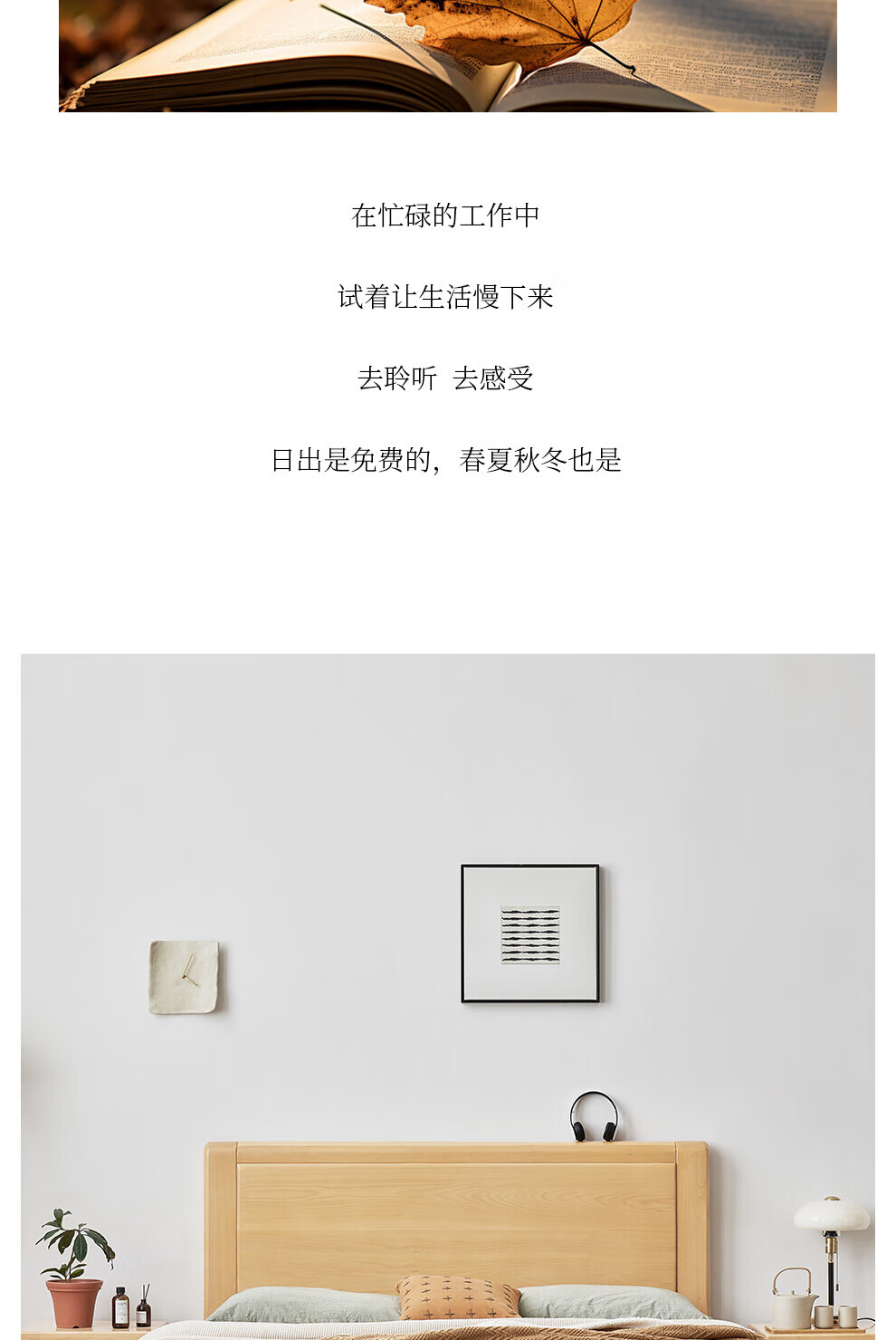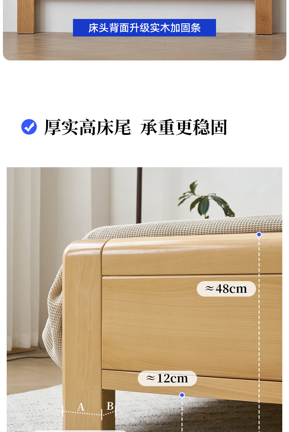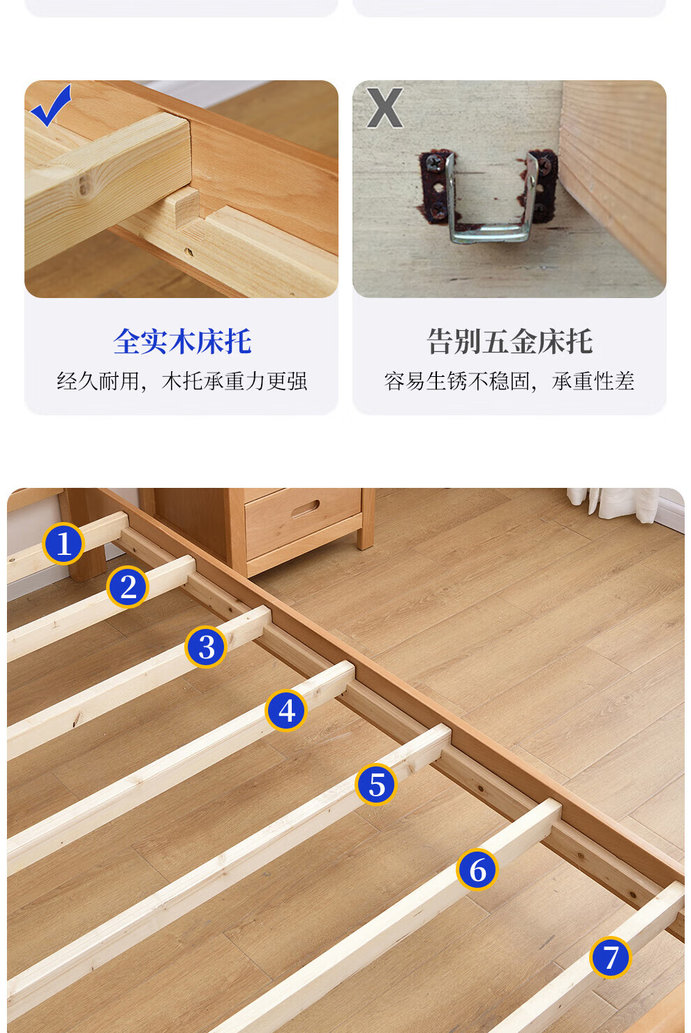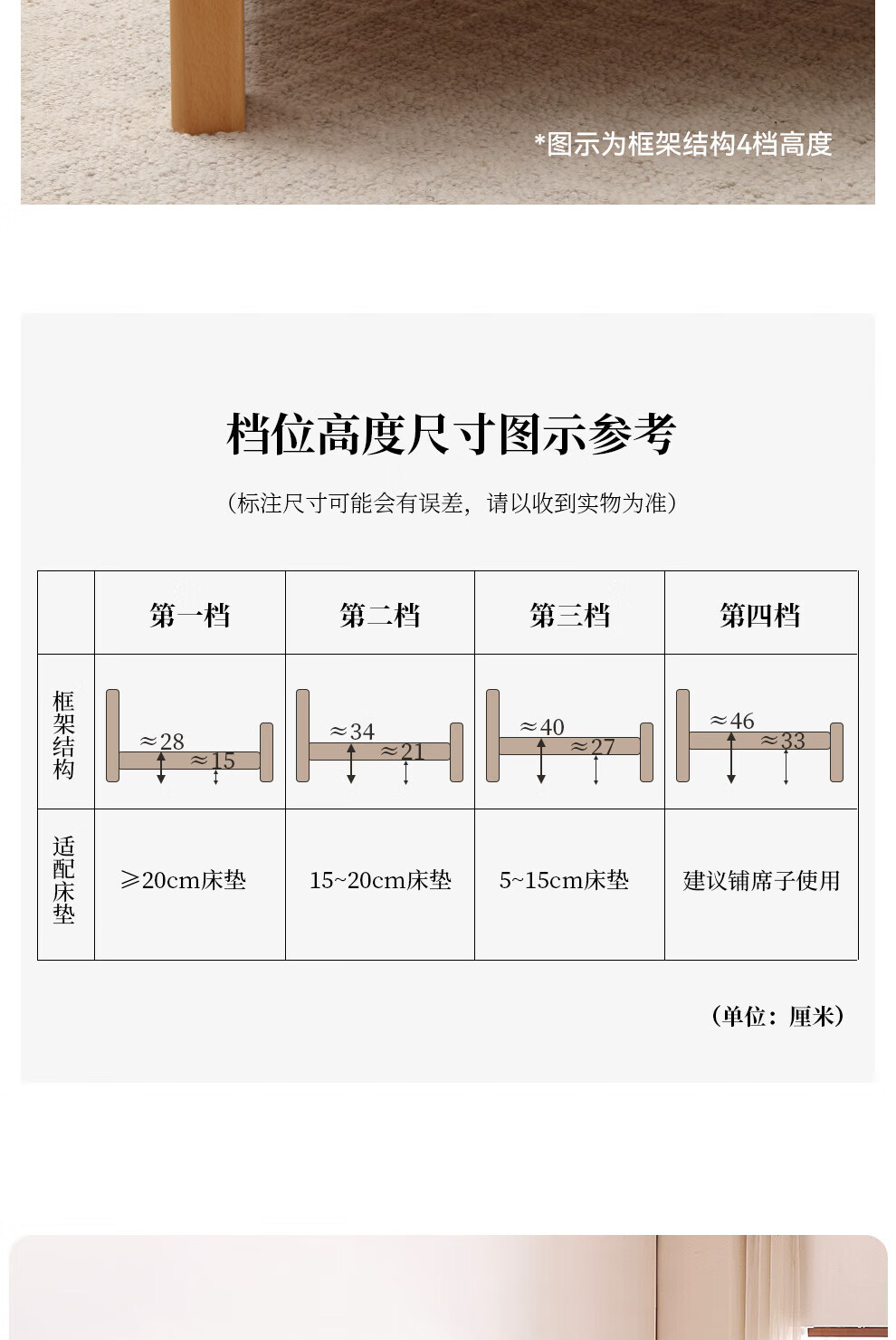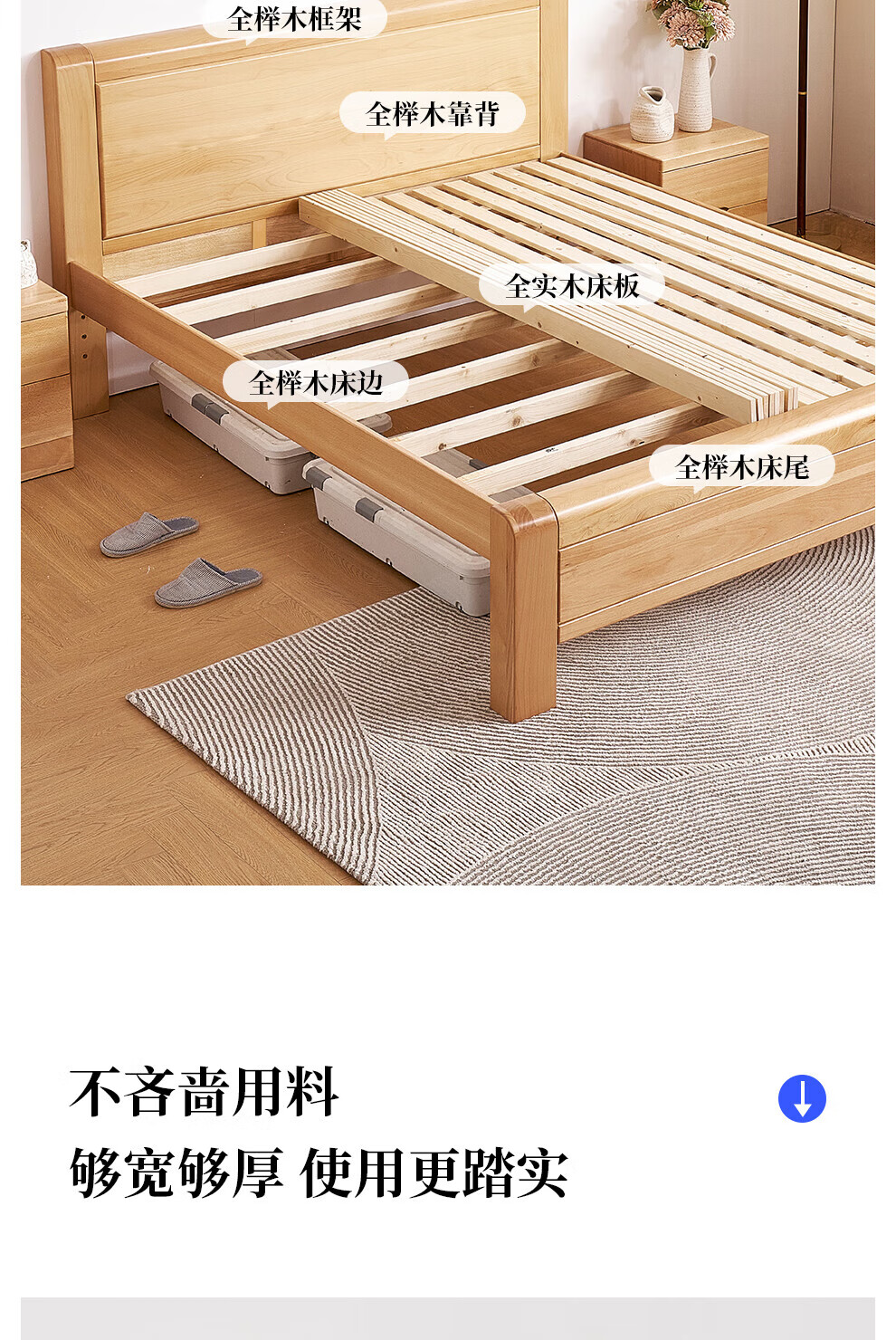 木创加厚款北欧简约风全实木床主卧室双人床榉木床婚床气压结构可储物 单床:包送货上楼和安装 1.5*2.0米 框架款+榉木床板