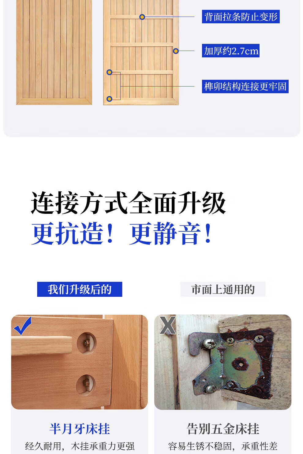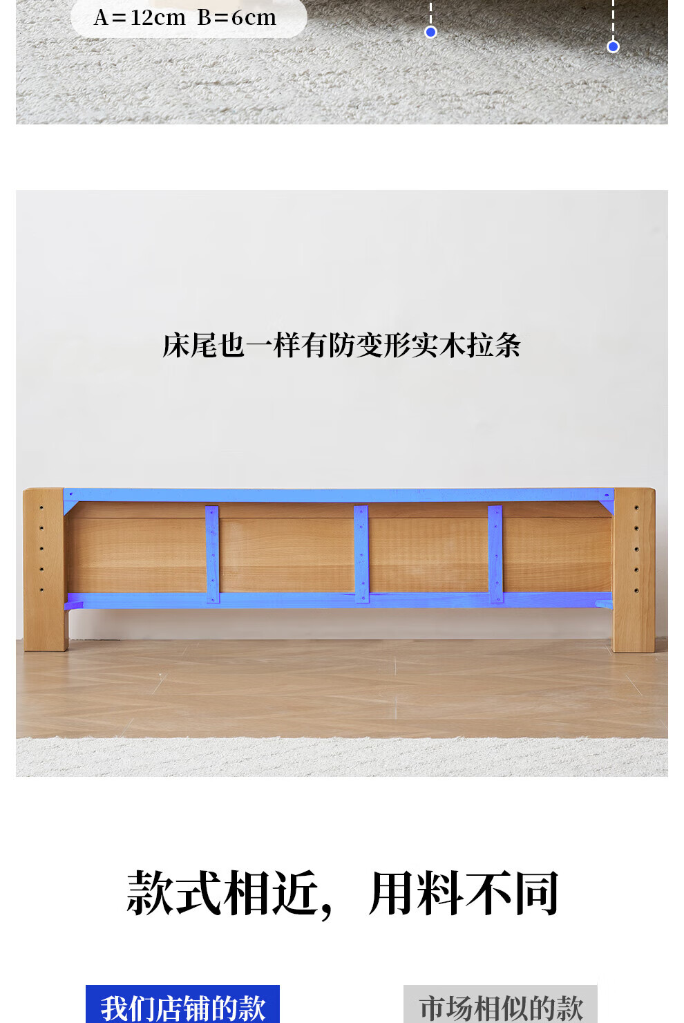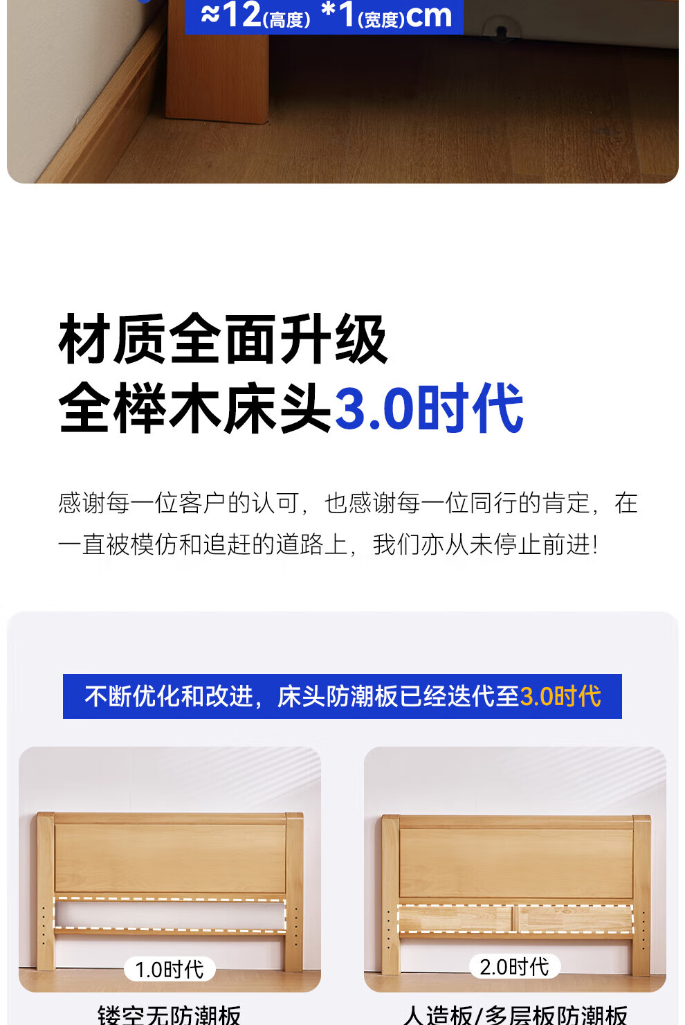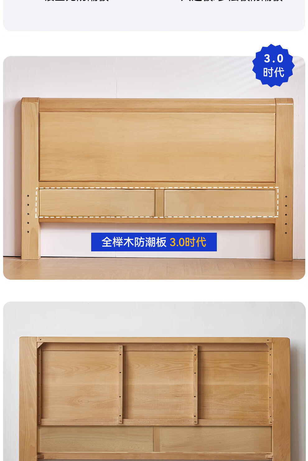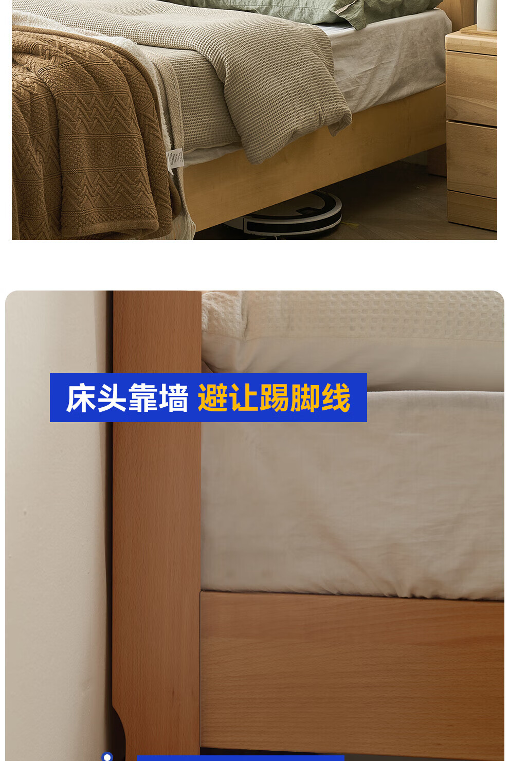 木创加厚款北欧简约风全实木床主卧室双人床榉木床婚床气压结构可储物 单床:包送货上楼和安装 1.5*2.0米 框架款+榉木床板