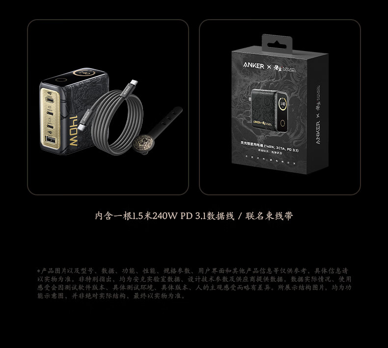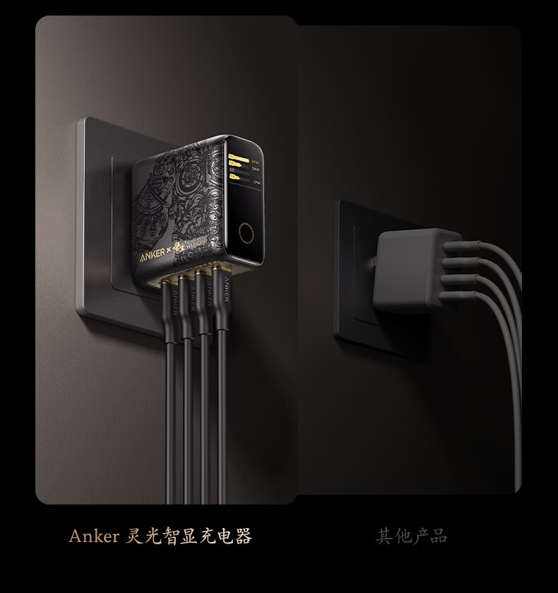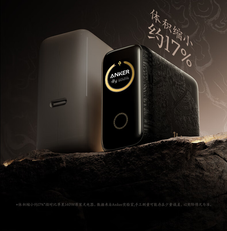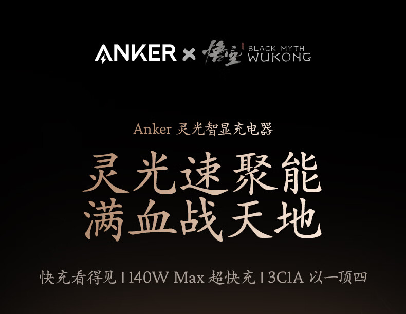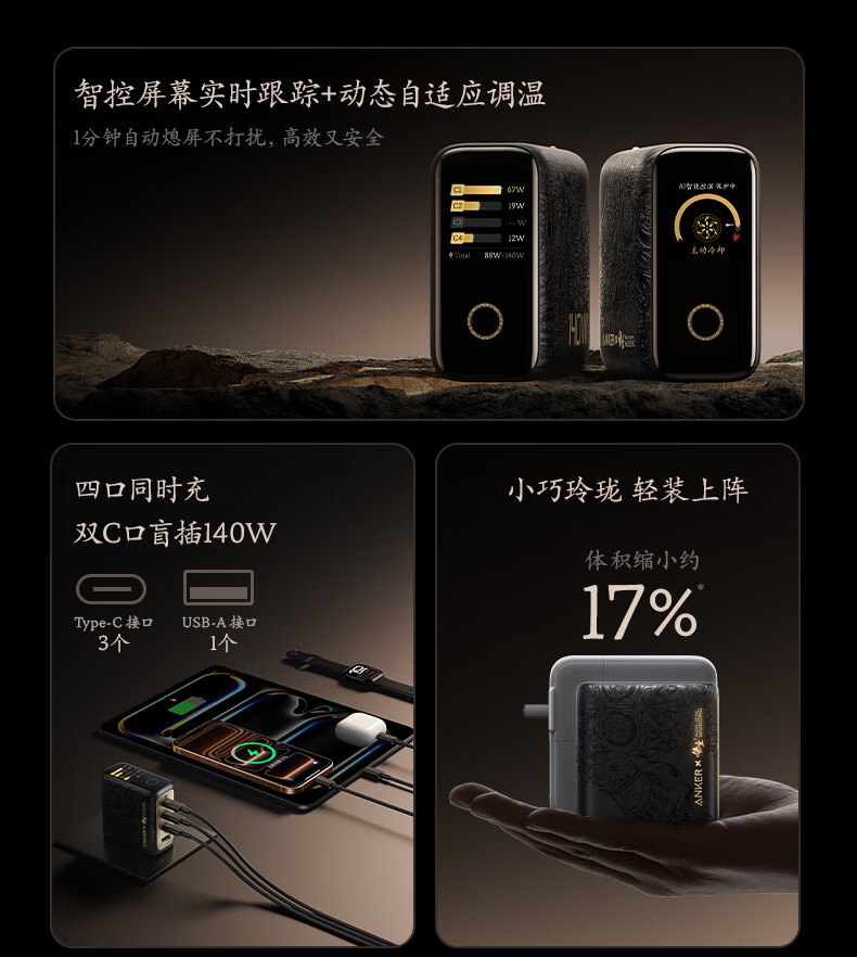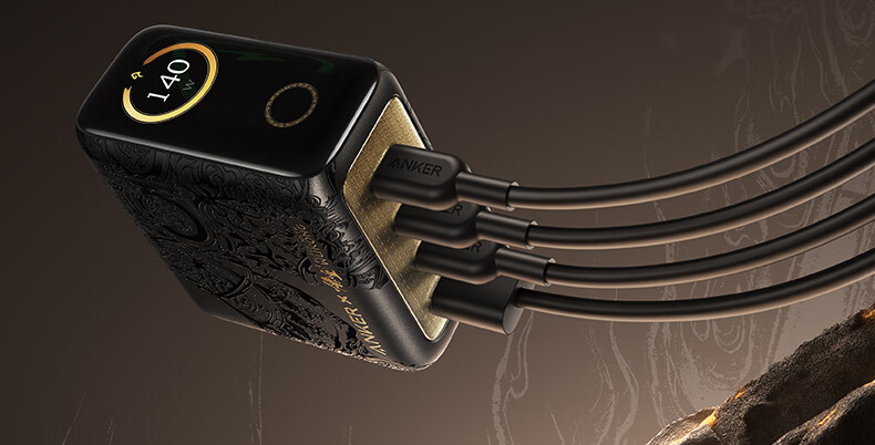 ANKER安克×黑神话【新3C认证首款AI屏显】140WPD智能充电头充电器氮化镓配线typC快充插头四口适用电脑 【140W黑神话联名款】四口智能屏显|赠1根CC线