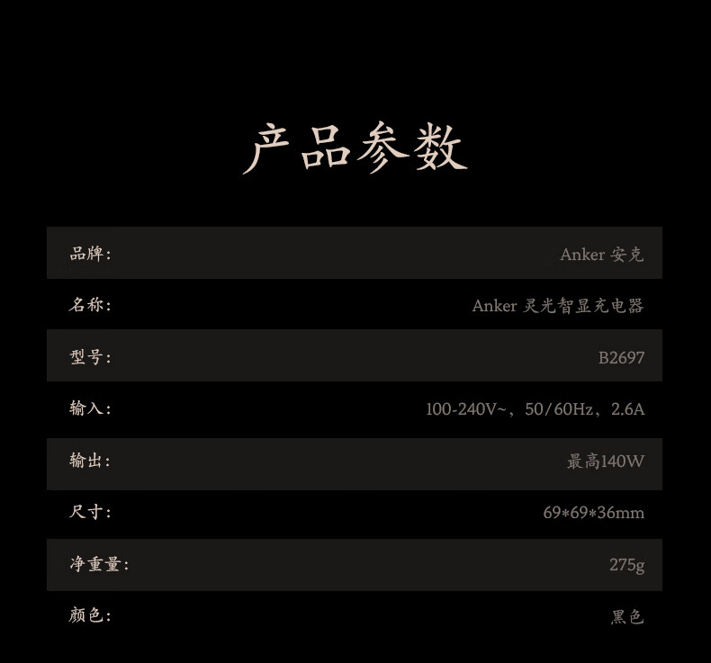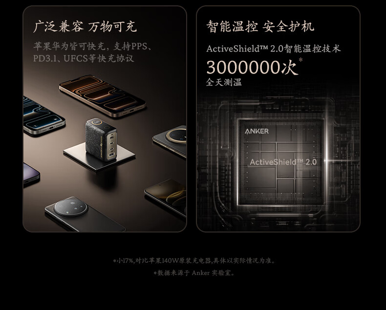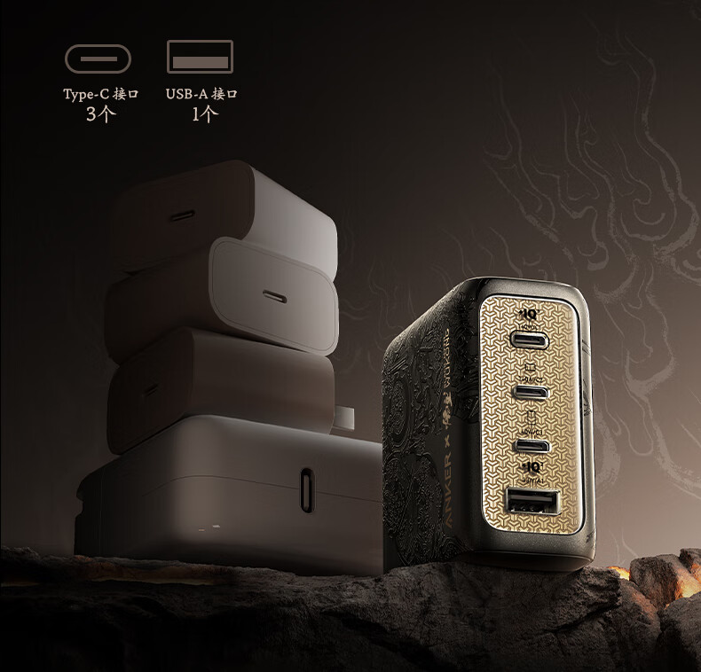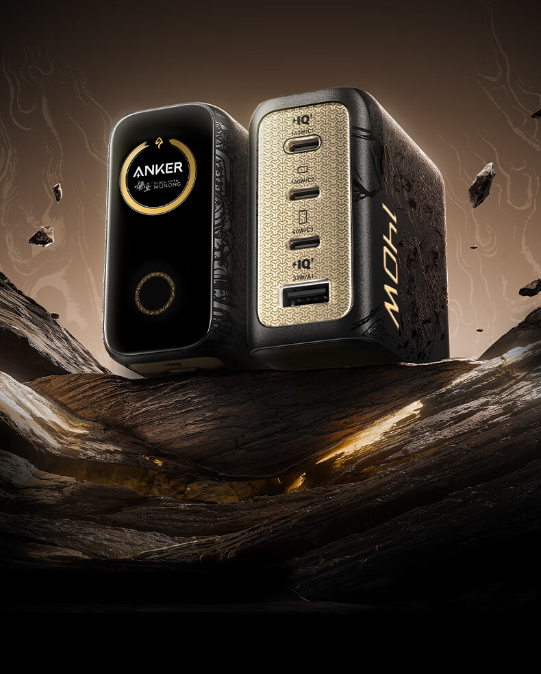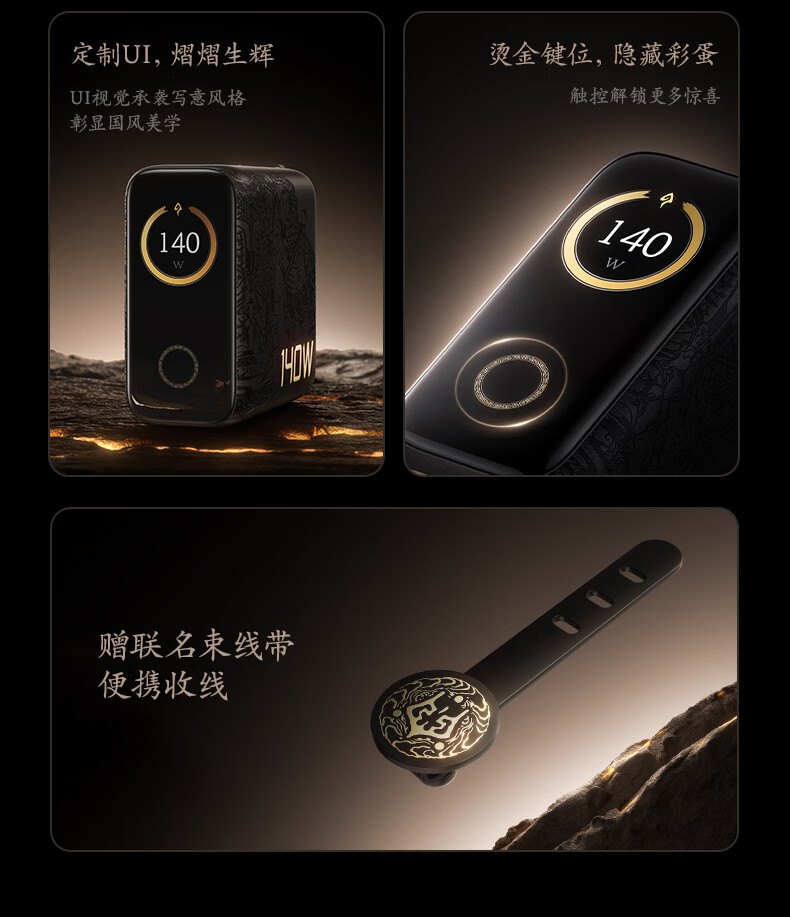 ANKER安克×黑神话【新3C认证首款AI屏显】140WPD智能充电头充电器氮化镓配线typC快充插头四口适用电脑 【140W黑神话联名款】四口智能屏显|赠1根CC线